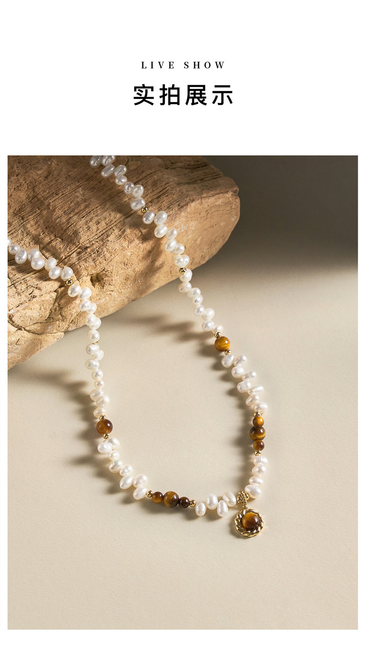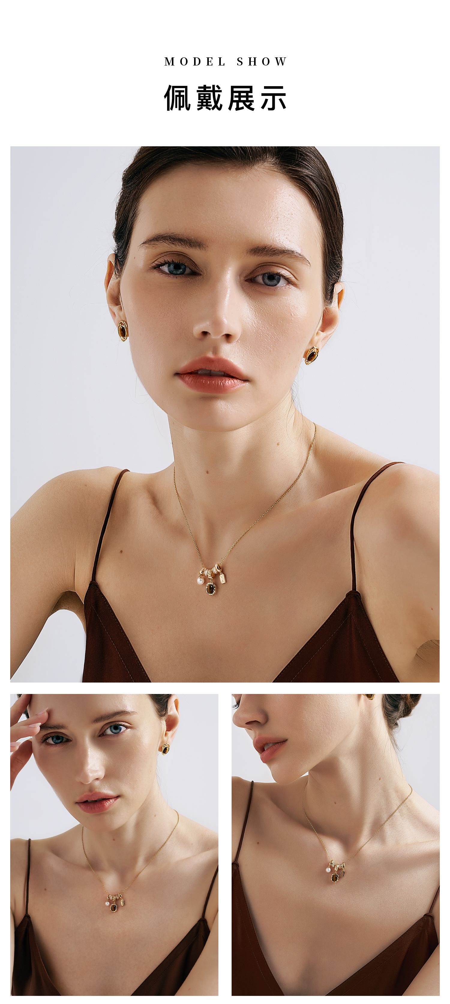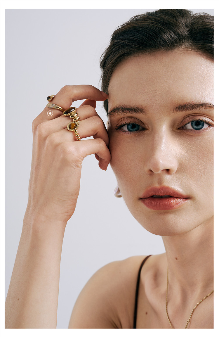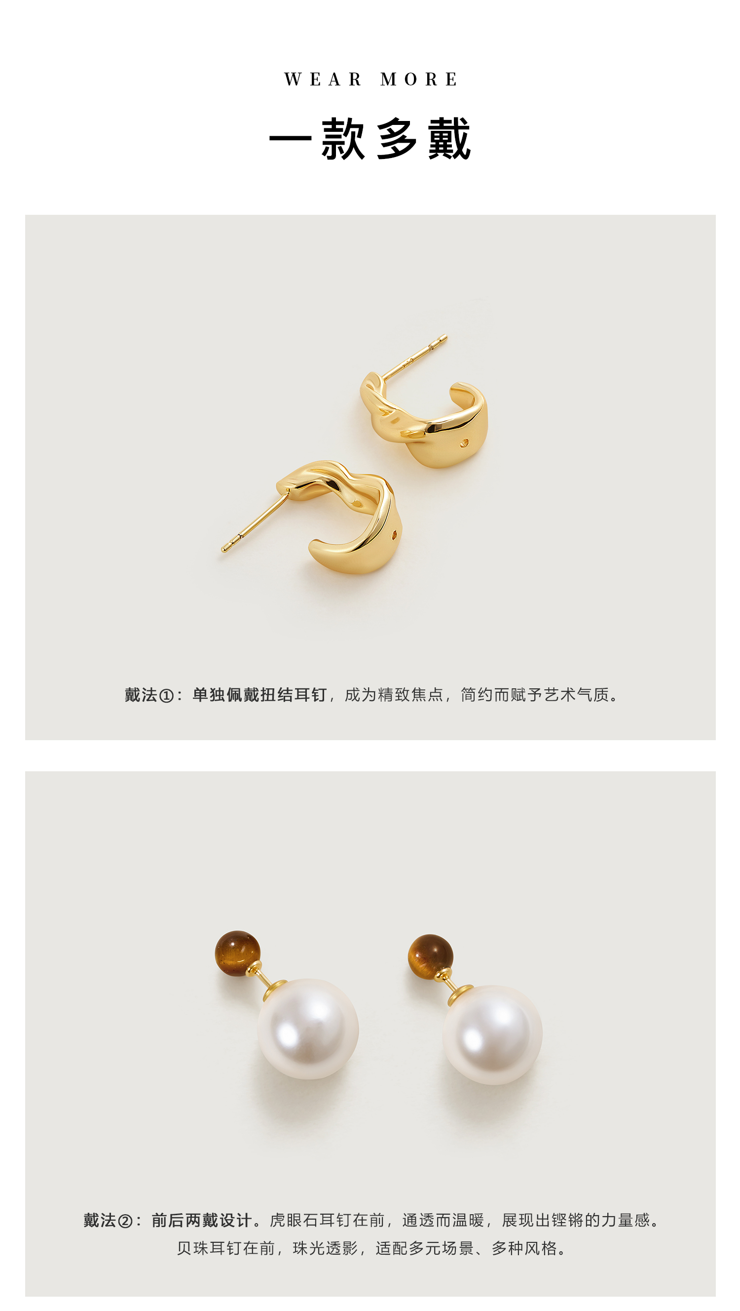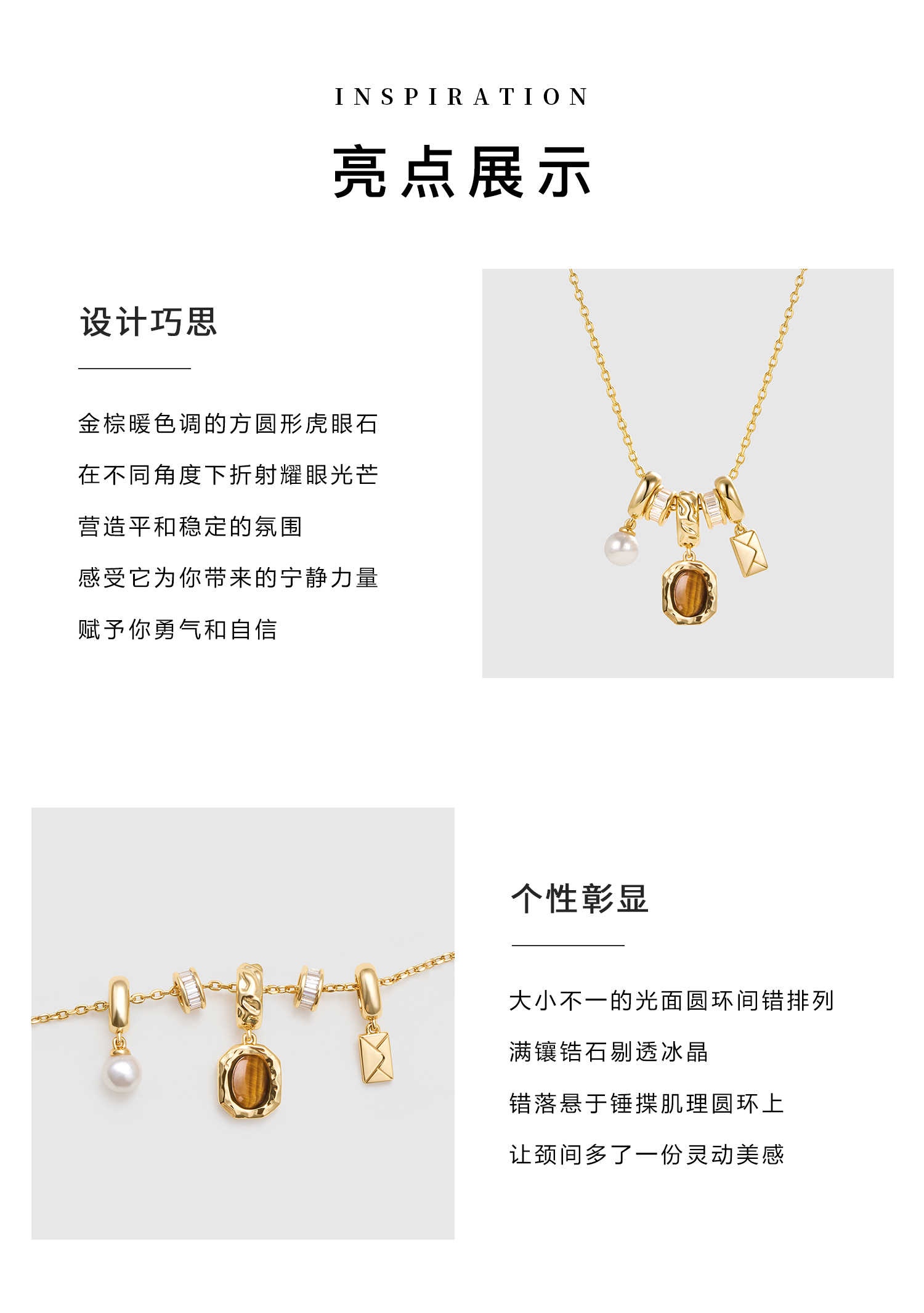 “明星同款 圣诞节礼物”安铂洛利 焦糖咖啡系列 蛇形虎眼石开口戒指/虎眼石贝珠耳钉/珍珠吊坠项链