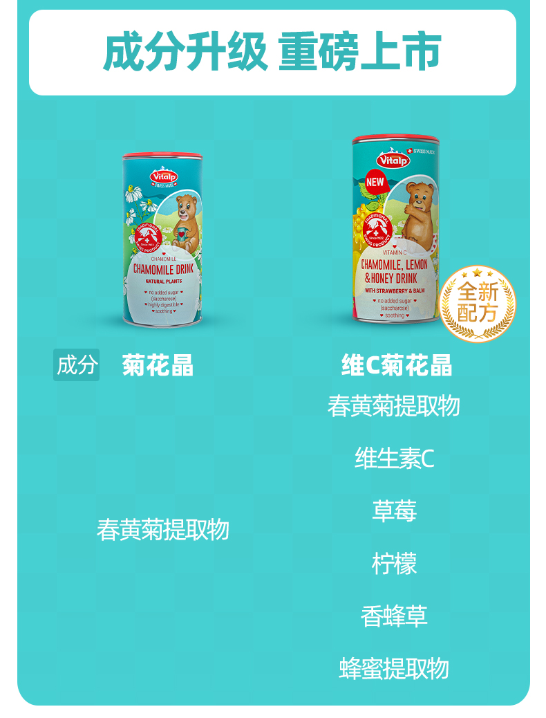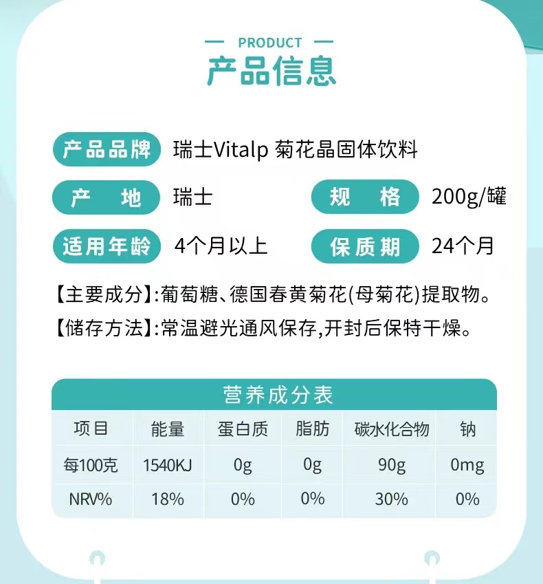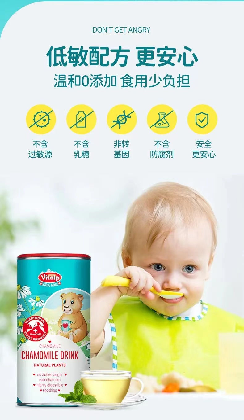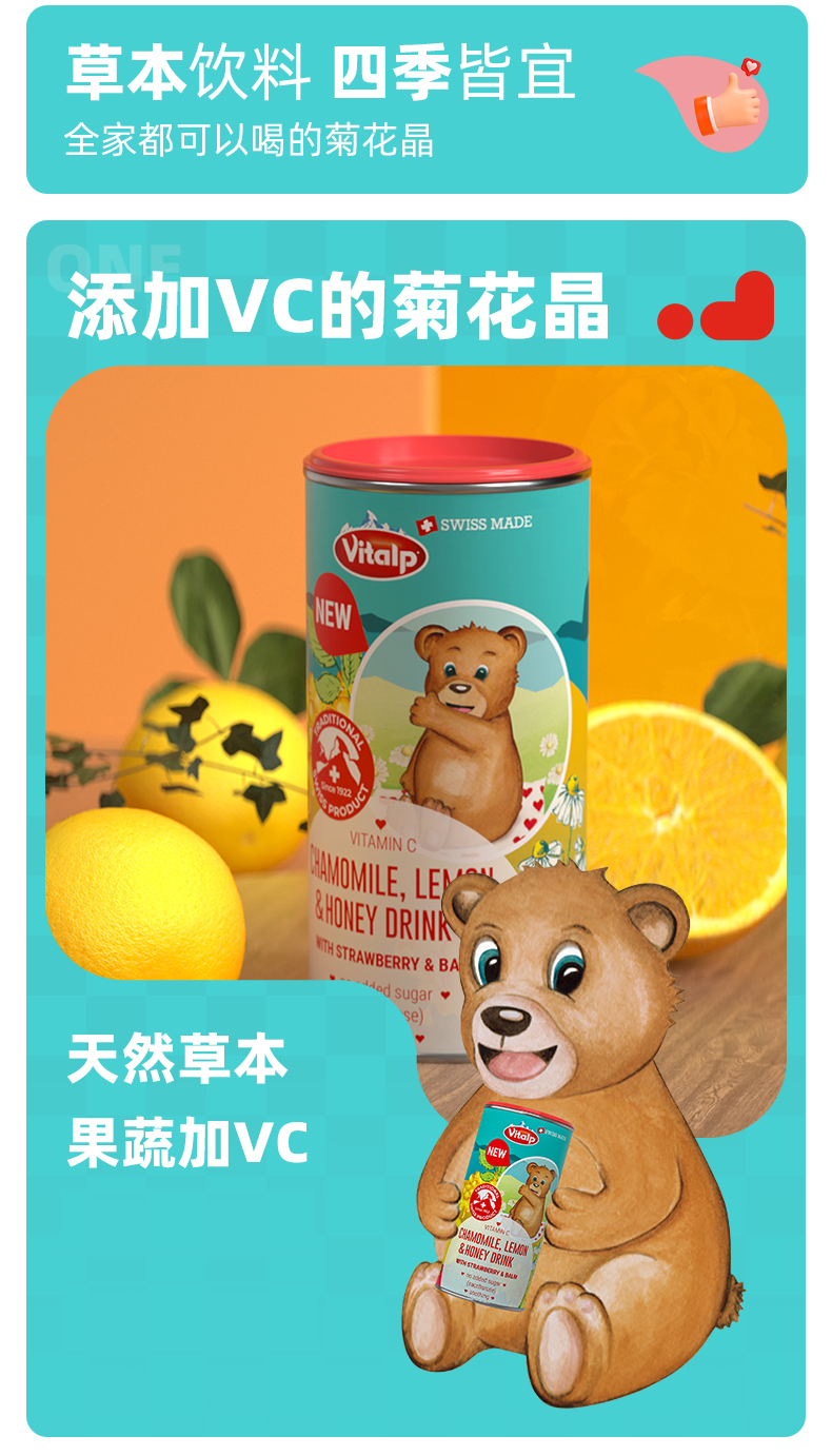 【一般贸易进口】瑞士VITALP维多普菊花晶儿童茶清凉茶固体小熊菊花晶奶粉伴侣200g