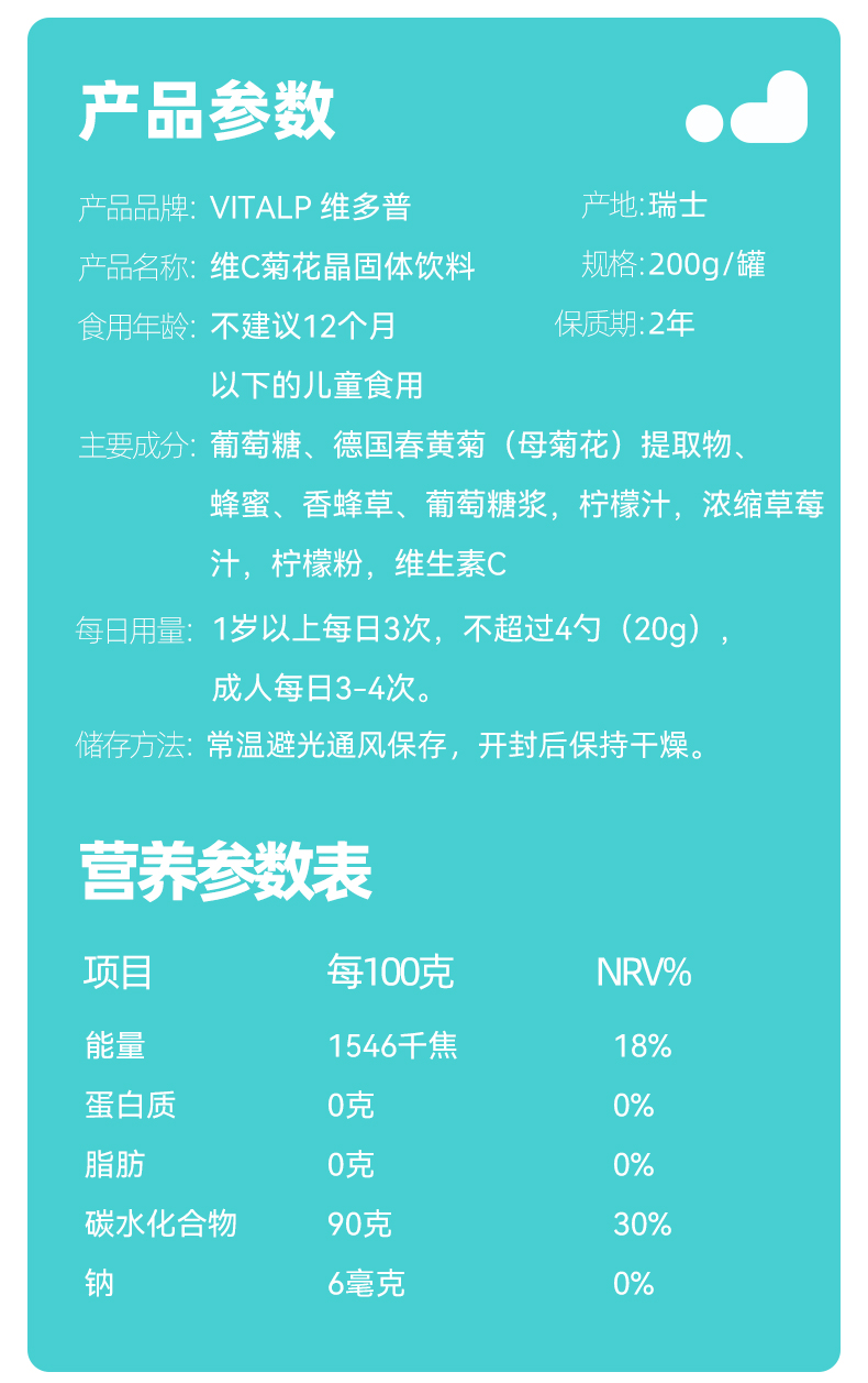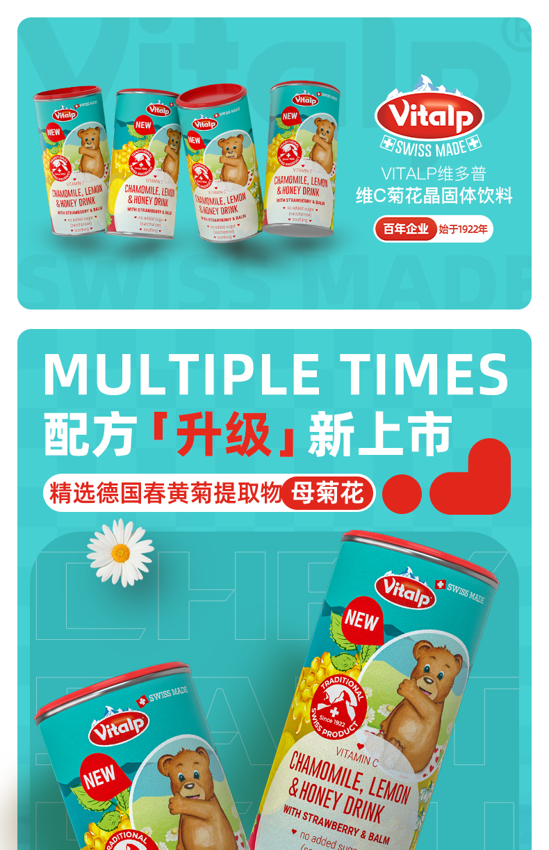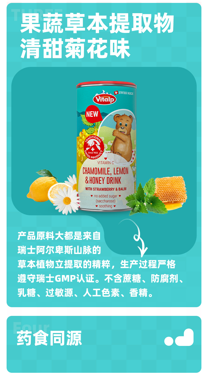 【一般贸易进口】瑞士VITALP维多普菊花晶儿童茶清凉茶固体小熊菊花晶奶粉伴侣200g
