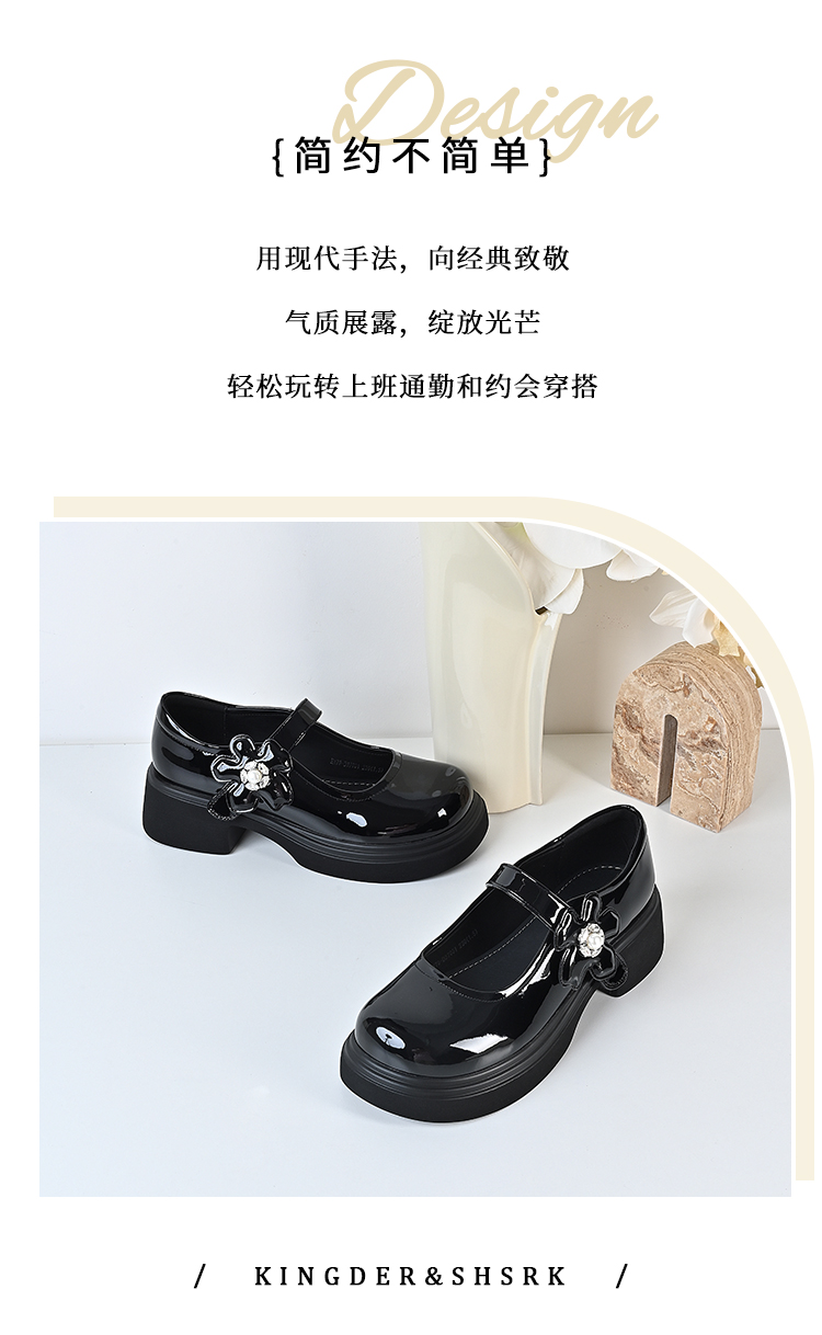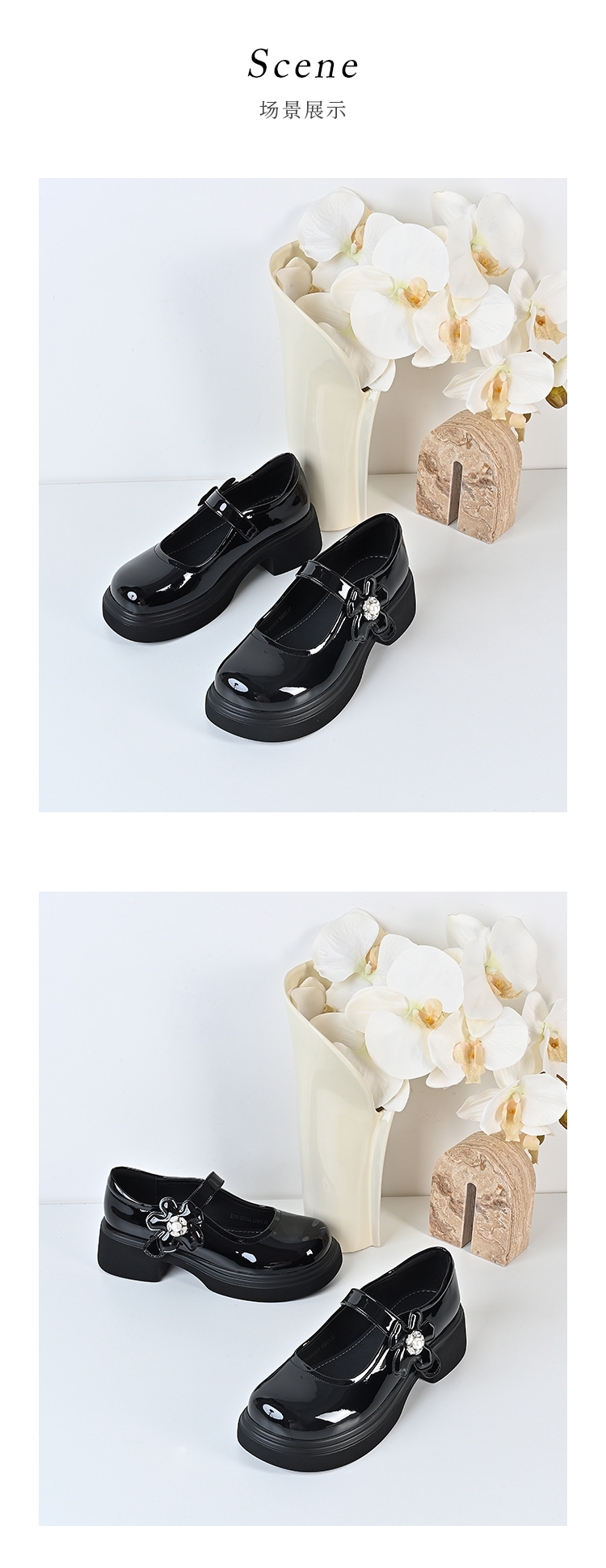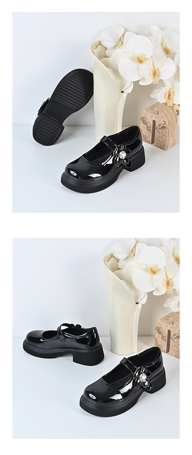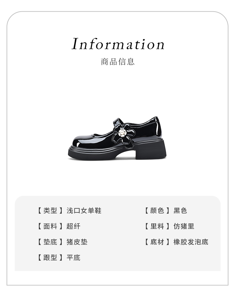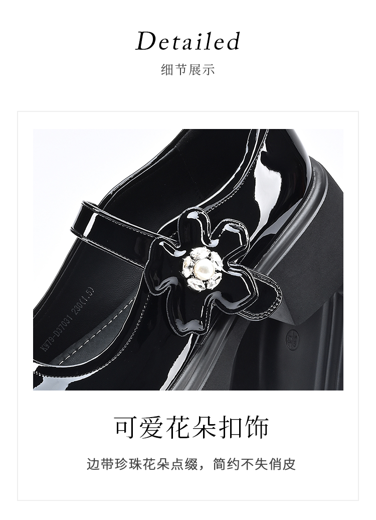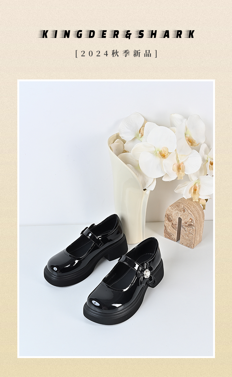经典鲨2024年秋新款百搭黑色圆头时尚玛丽珍浅口粗跟单鞋女KW79-D37031