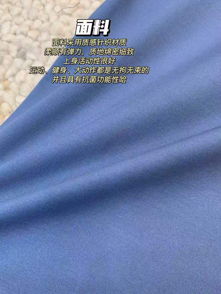 面料采用质感针织材质,内里是绒绒的感觉,柔顺有弹力,质地绵密细致,上身活动性很好,运动、健身、大动作都是无拘无束的,并且具有抗菌功能性哈。 颜色黑色 蓝色 尺码mlxlxxlxxxl