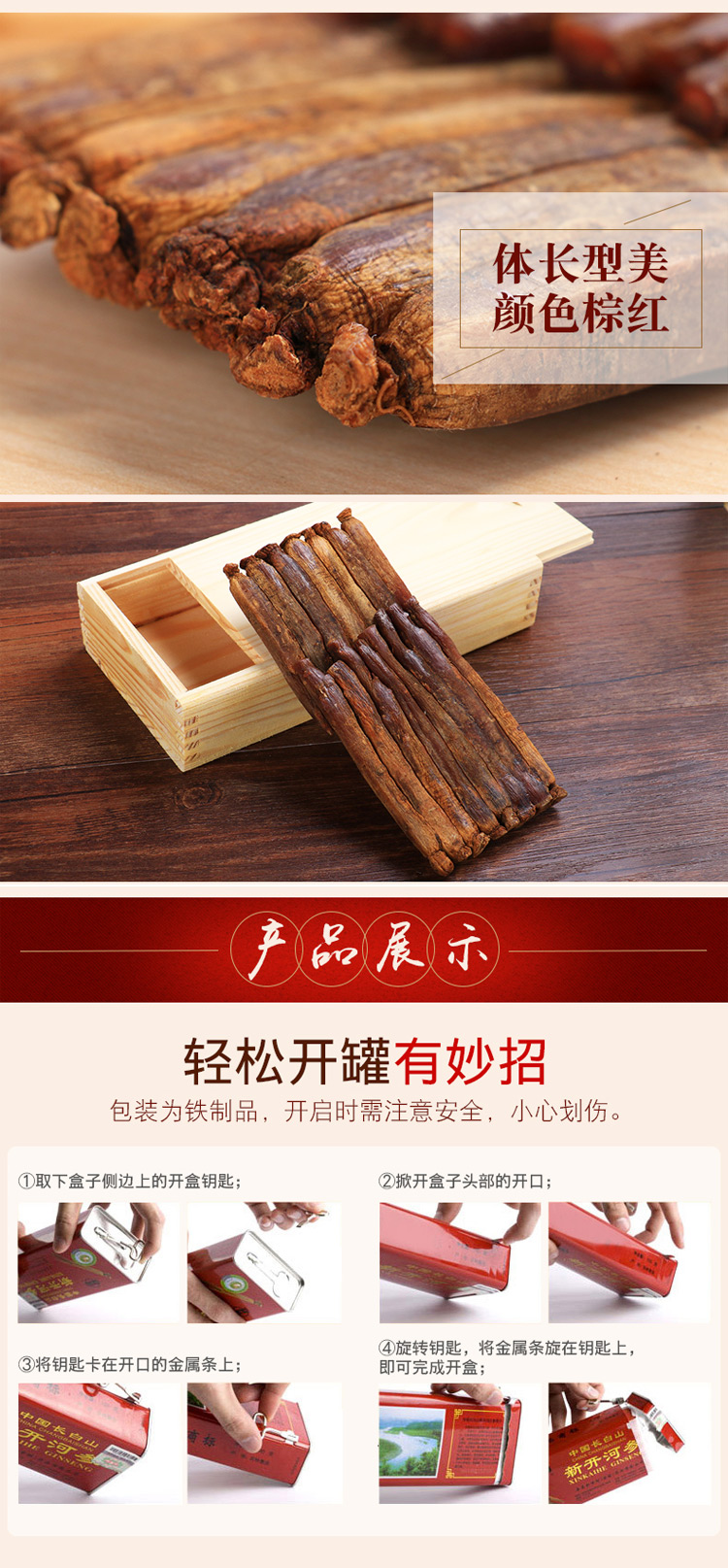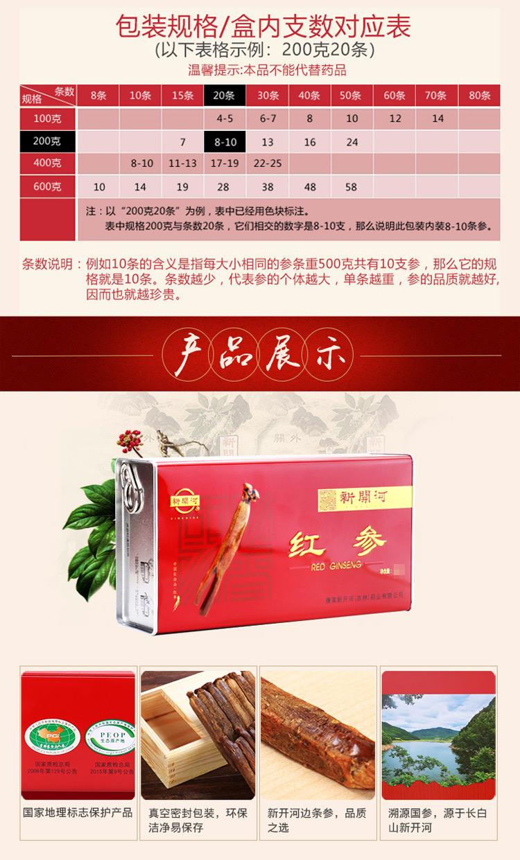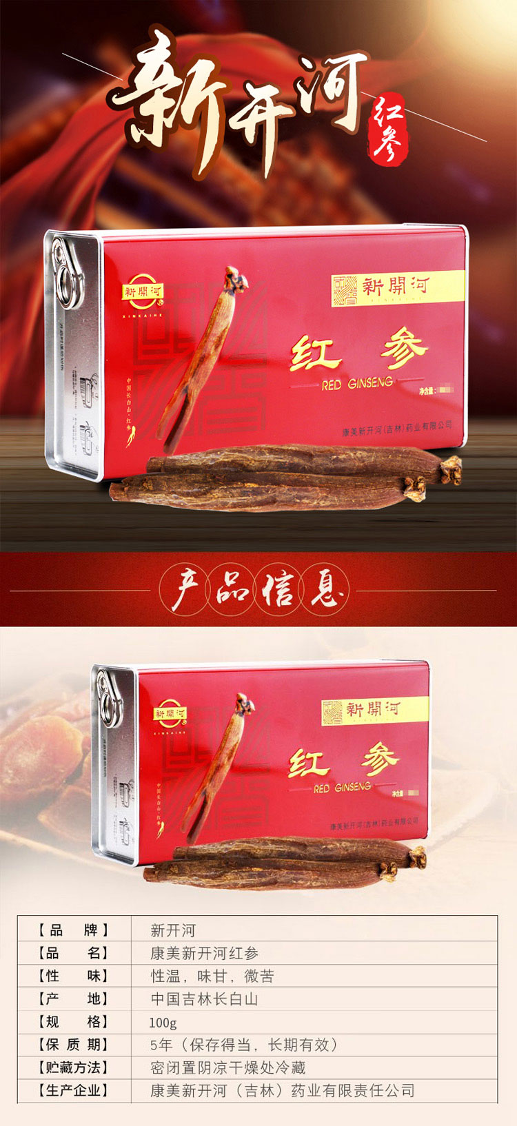 康美新开河红参100克/盒 人参红参整枝铁盒装 茶饮煲汤滋补品泡酒药材多规格可选