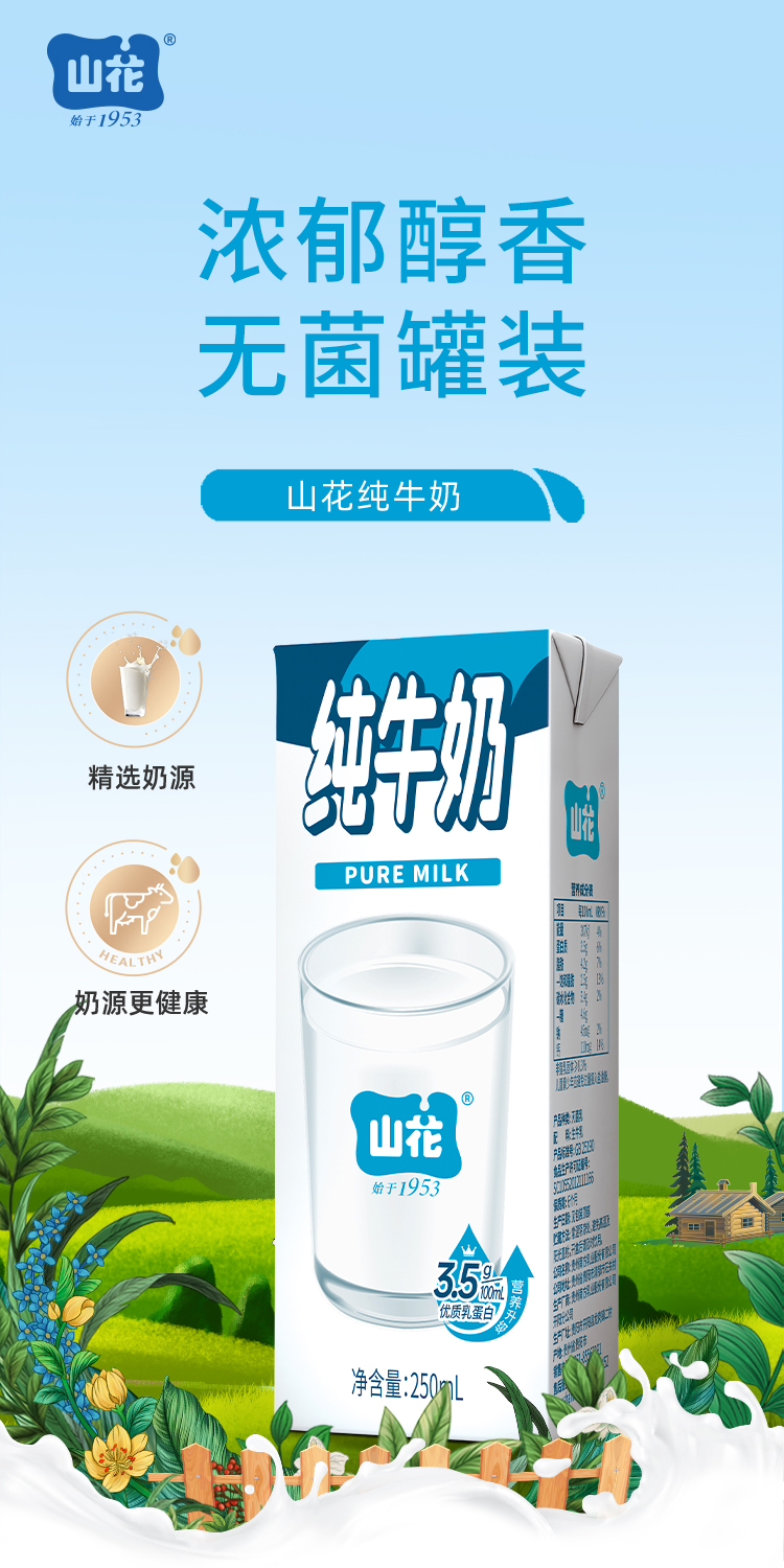 山花纯牛奶250ml*24瓶贵州老字号鲜牛奶营养丰富配料干净