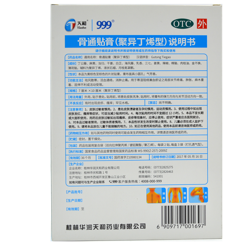 天和 骨通贴膏(聚异丁烯型) 7cm*10cm*6贴/盒 祛风散寒 活血通络