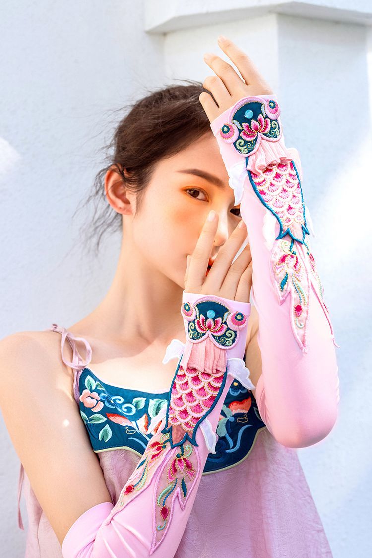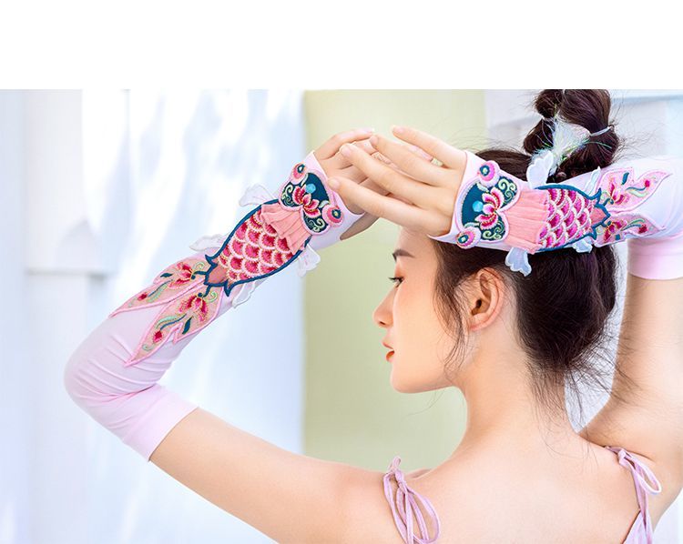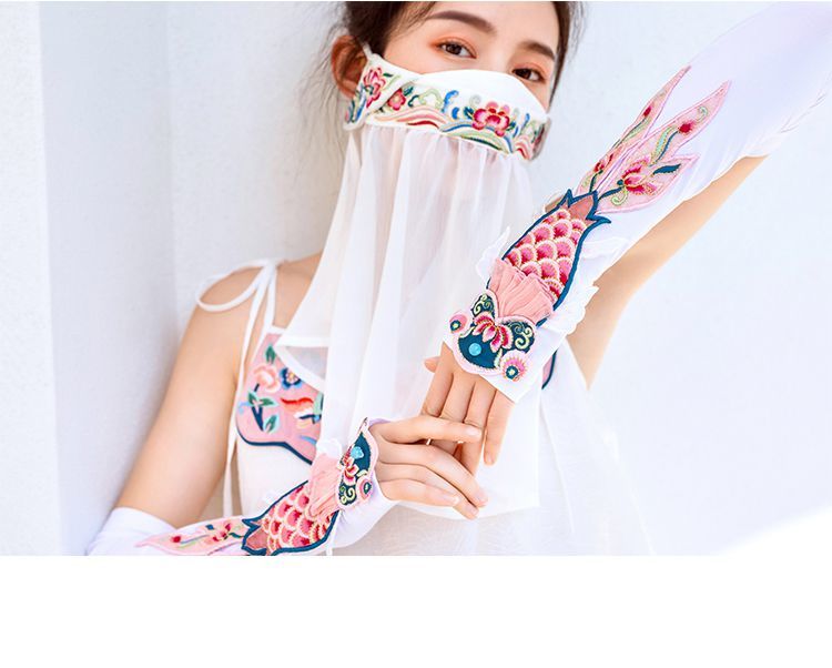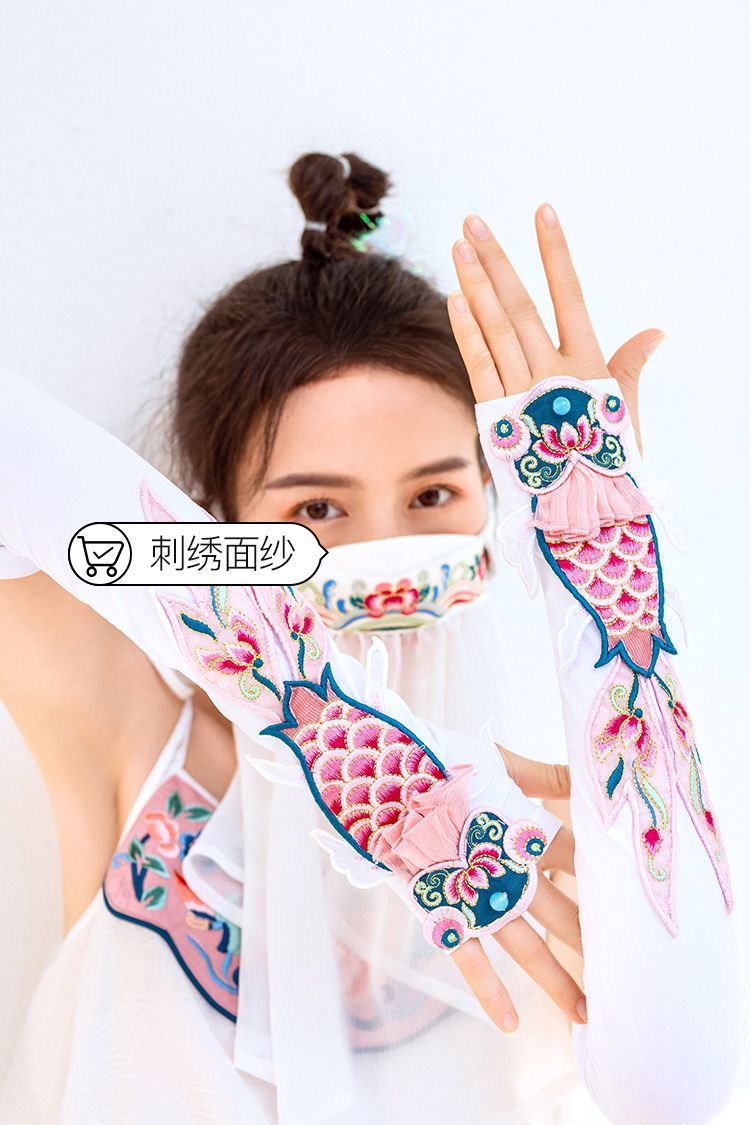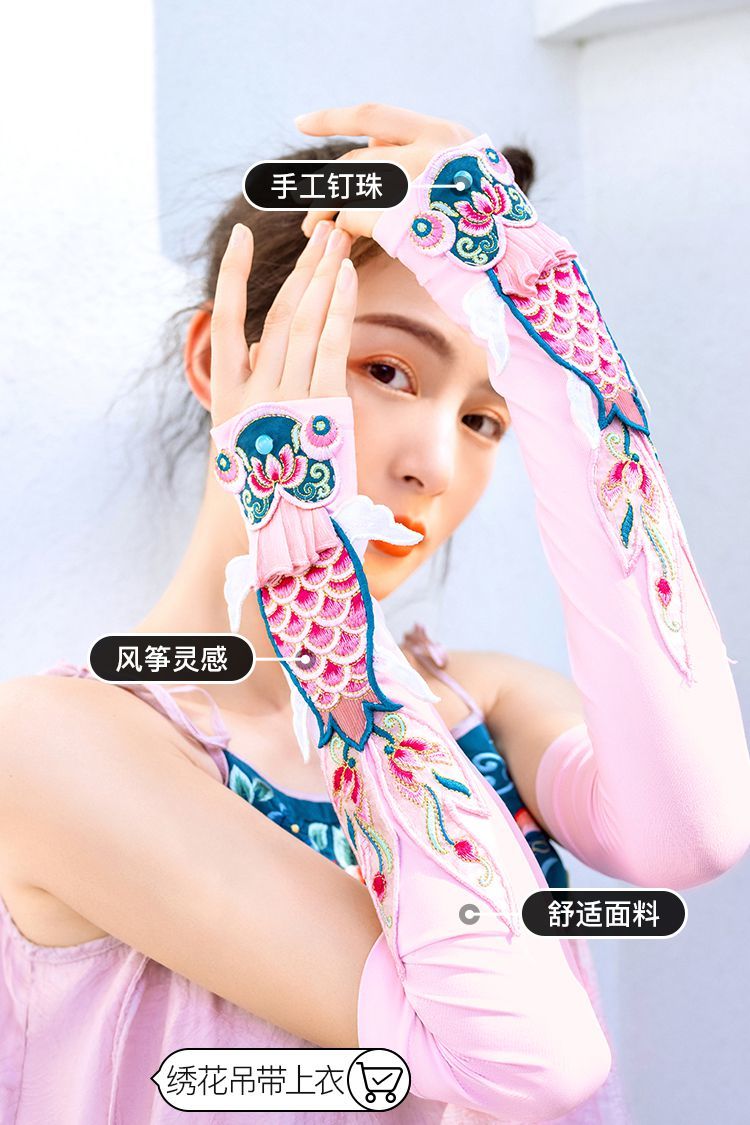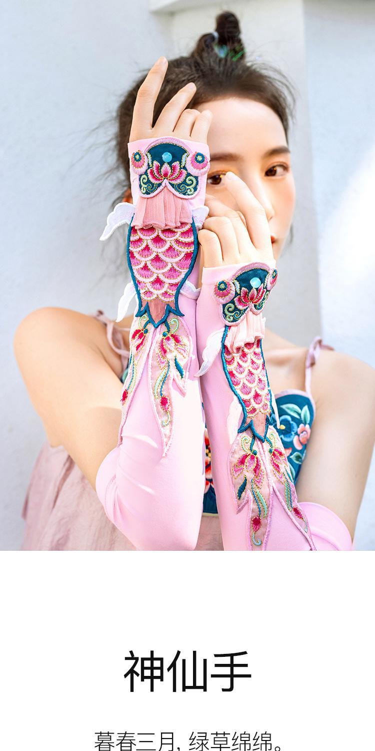 神仙手 复古中国风时尚刺绣护臂夏2022新款薄开车手套袖子女