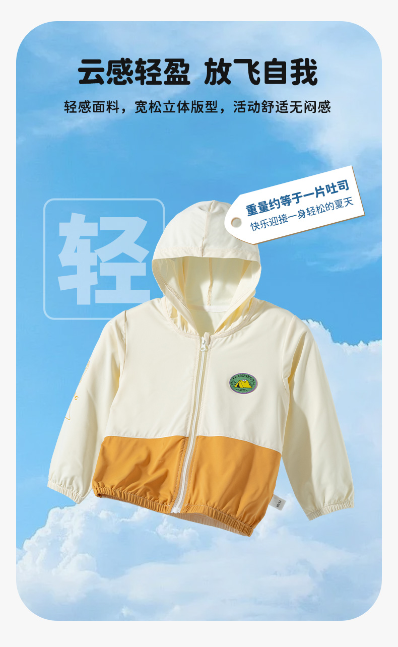 贝贝怡2025年夏季男童百搭外套防晒皮肤衣上衣