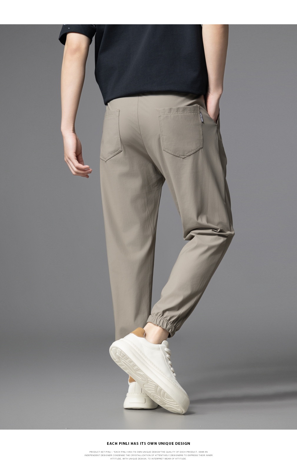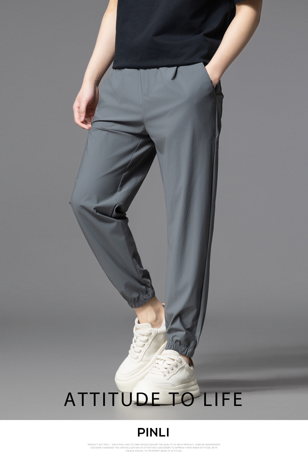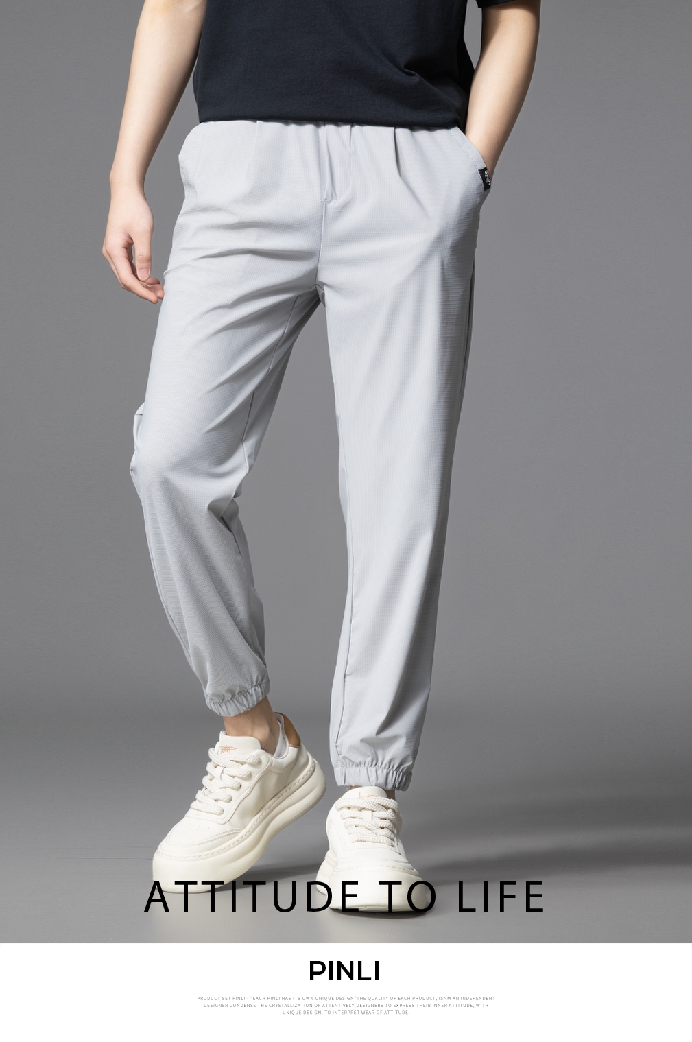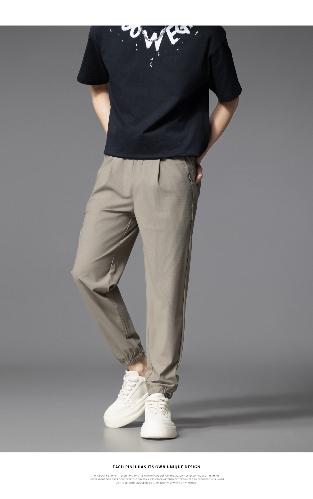 PINLI品立2025夏季新款修身纯色束脚裤男士潮流简约百搭休闲长裤GD252117264
