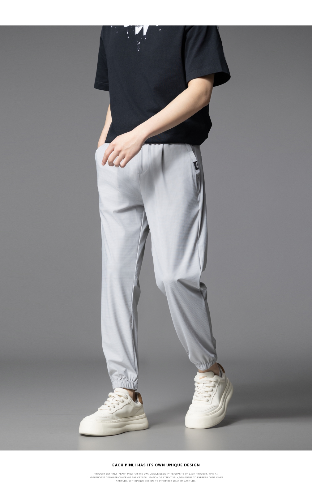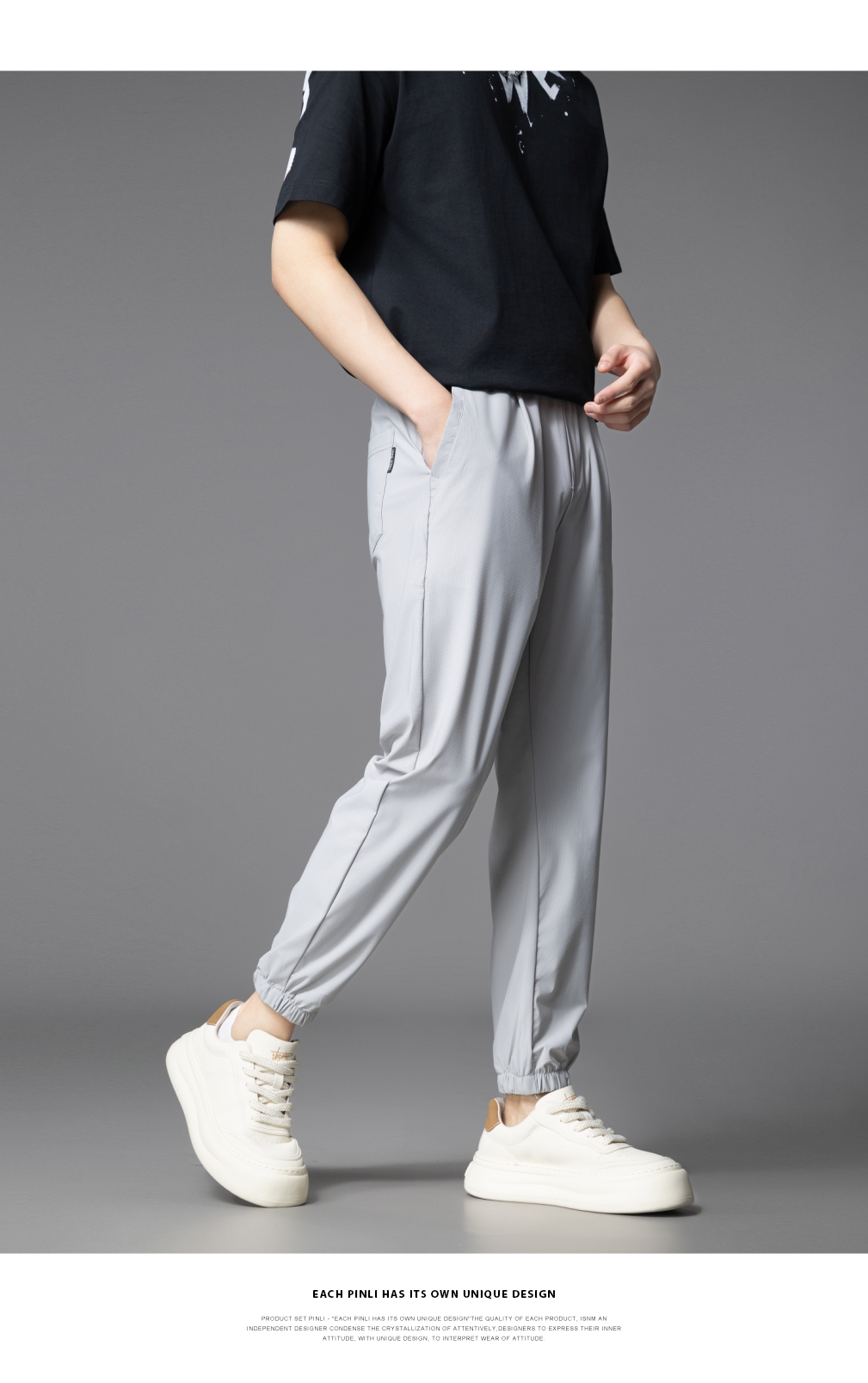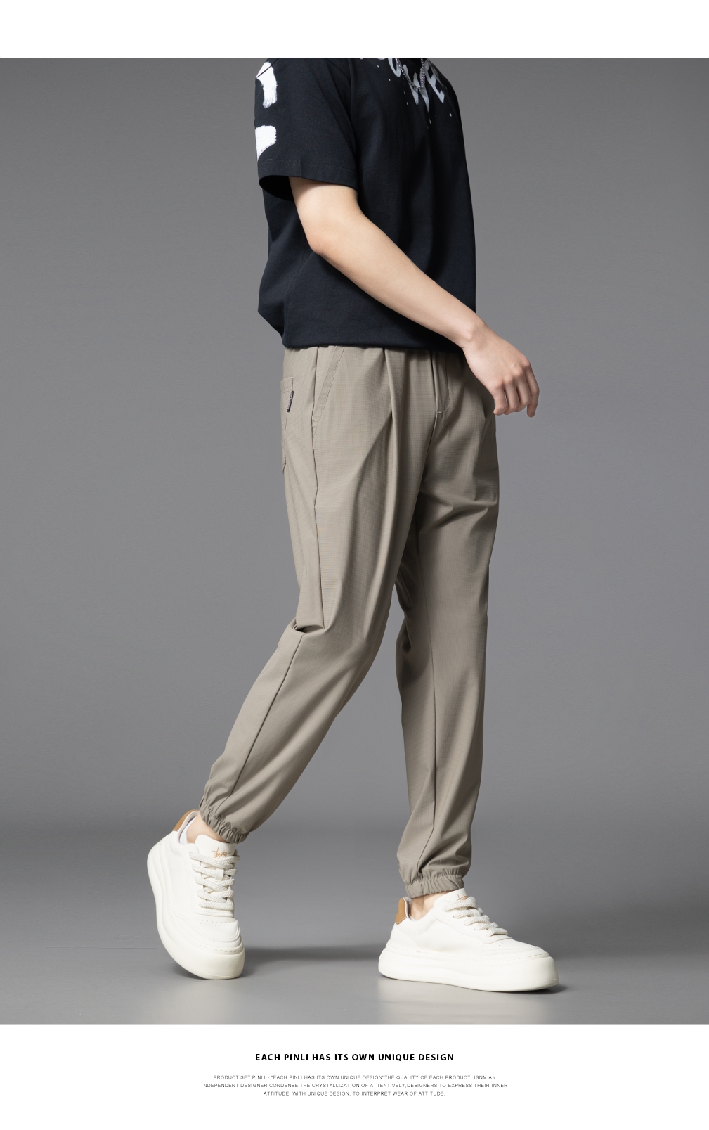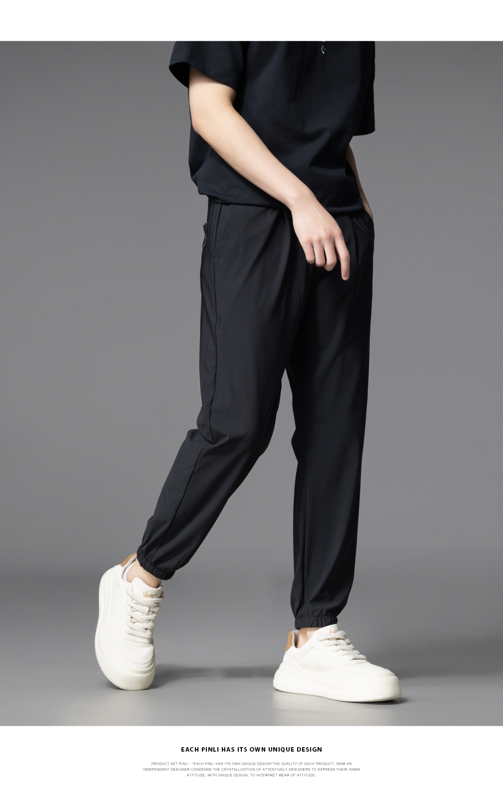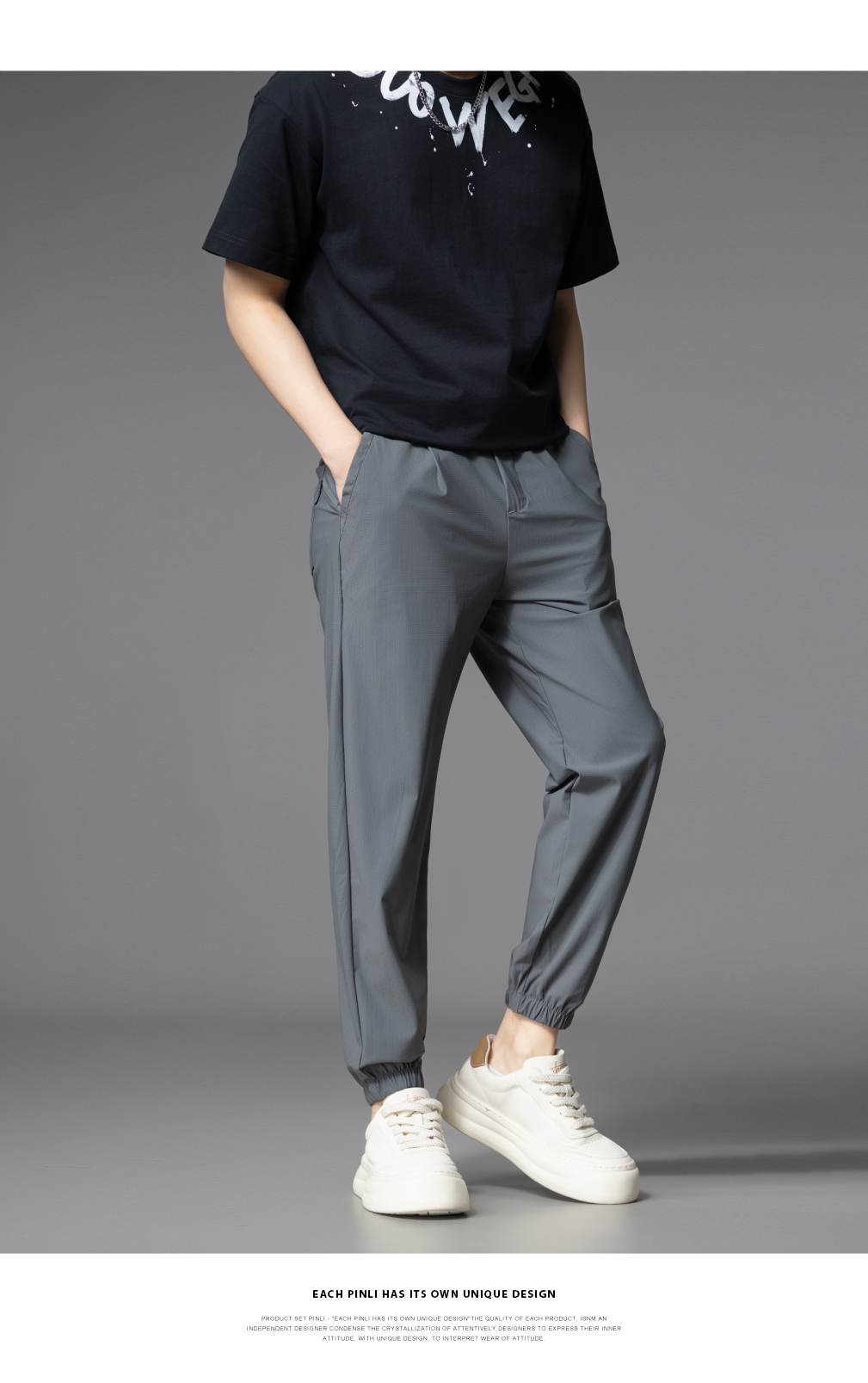 PINLI品立2025夏季新款修身纯色束脚裤男士潮流简约百搭休闲长裤GD252117264