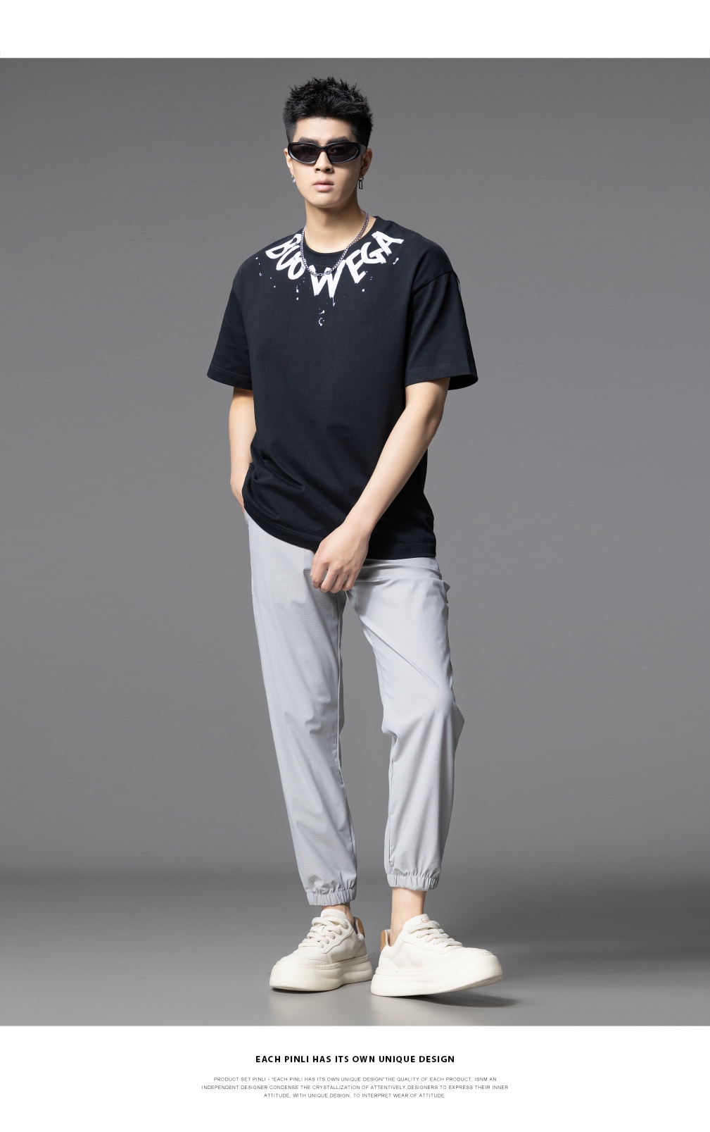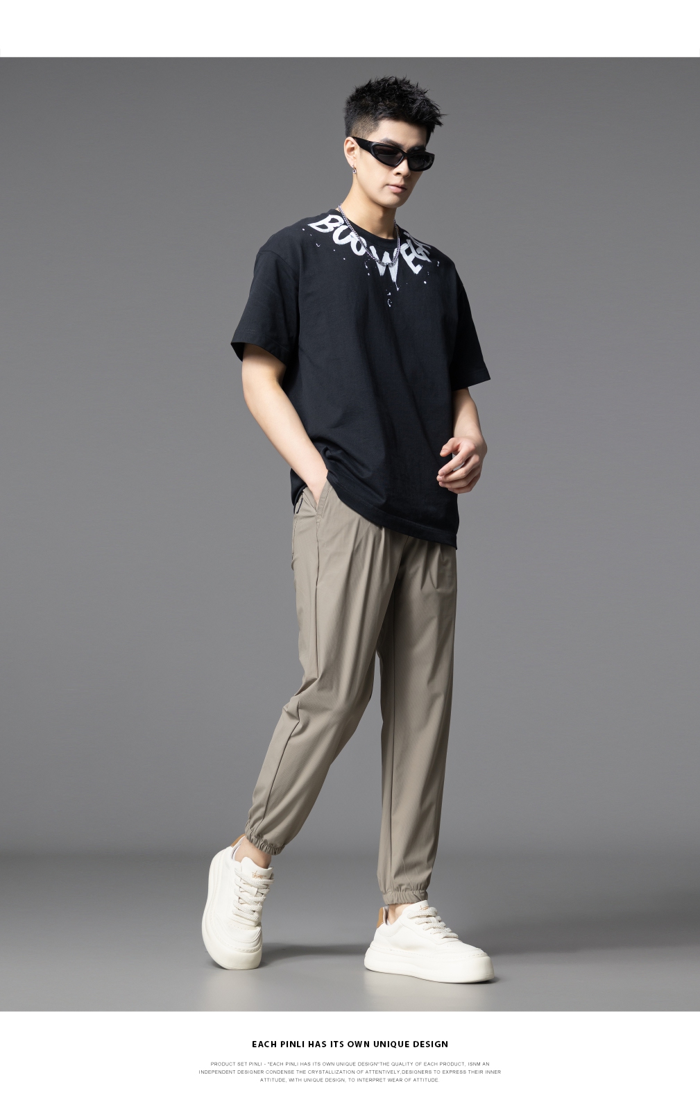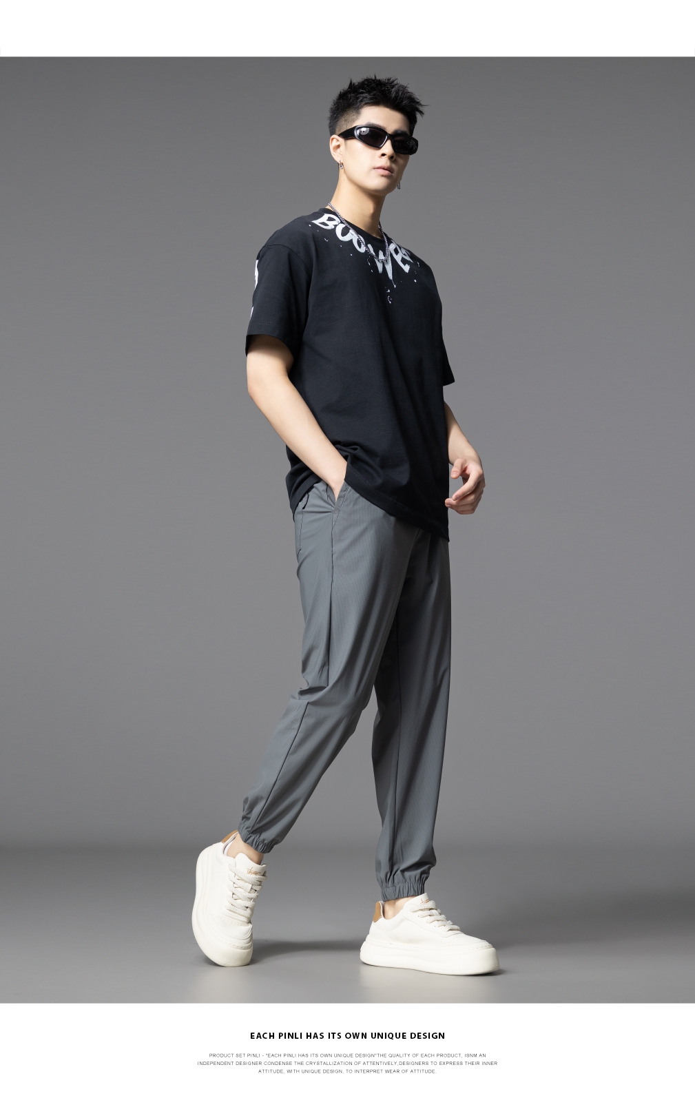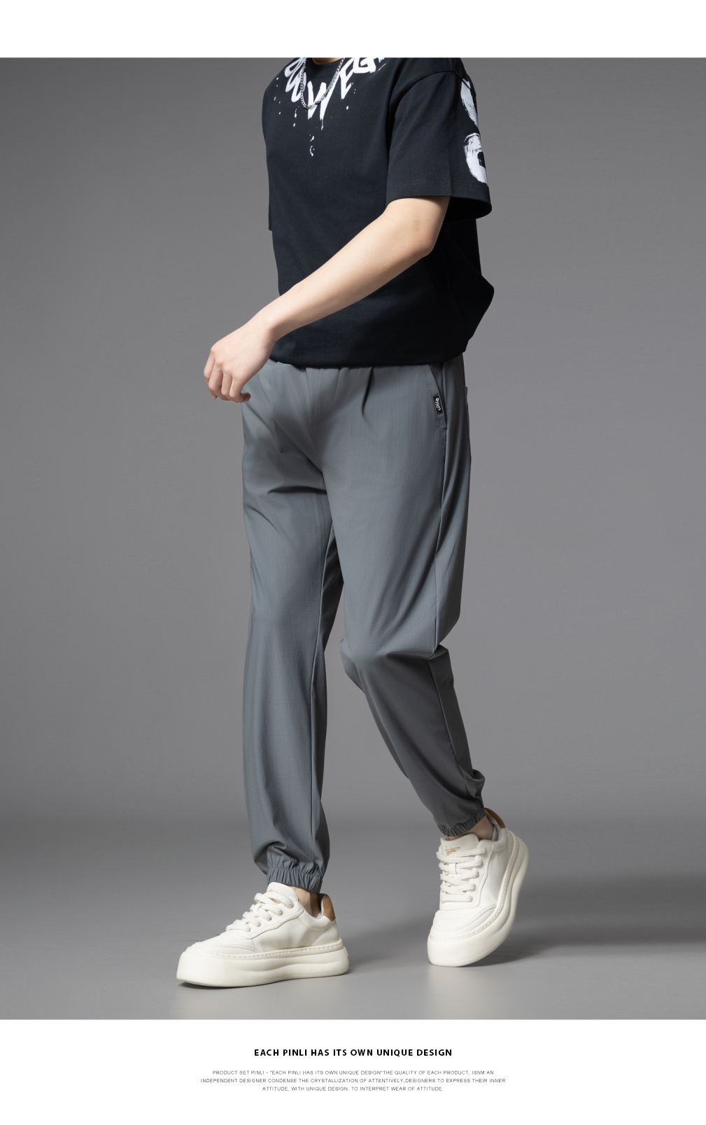 PINLI品立2025夏季新款修身纯色束脚裤男士潮流简约百搭休闲长裤GD252117264