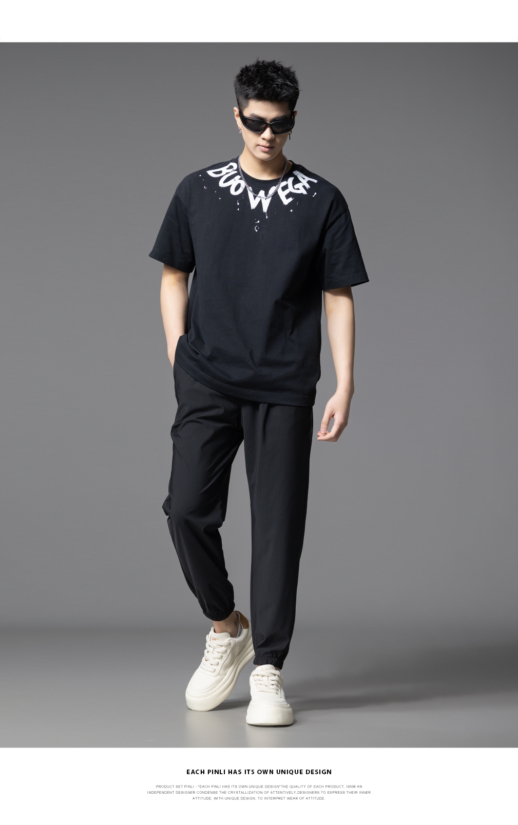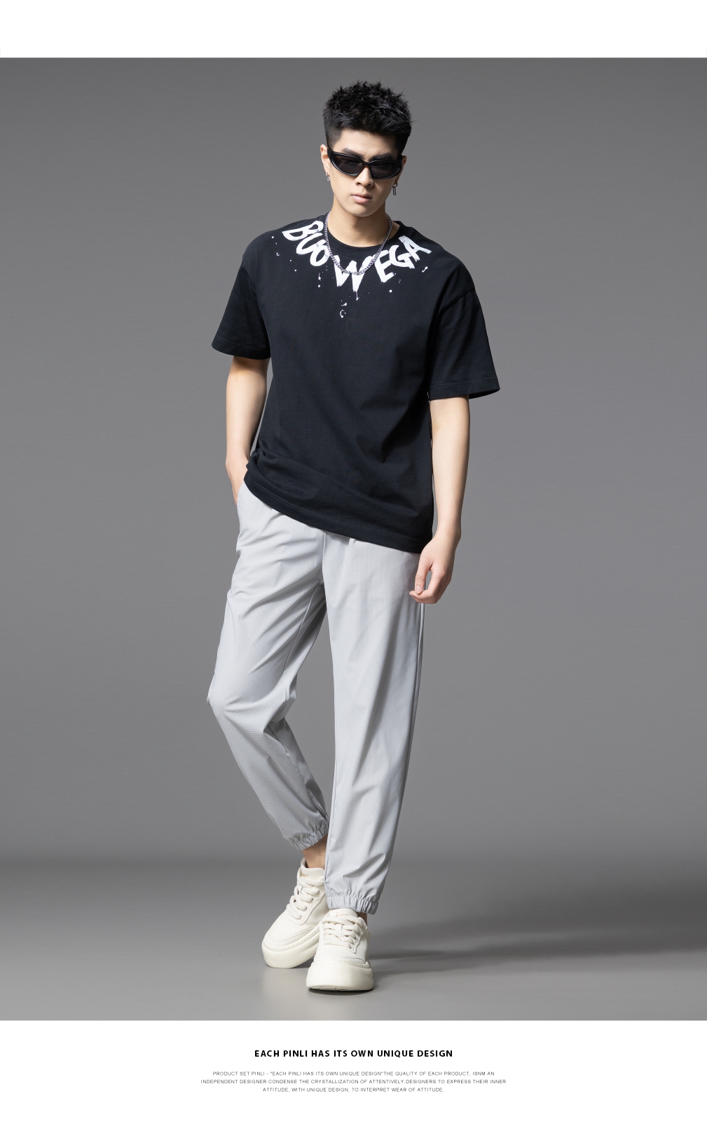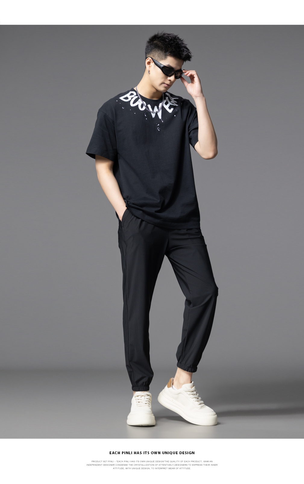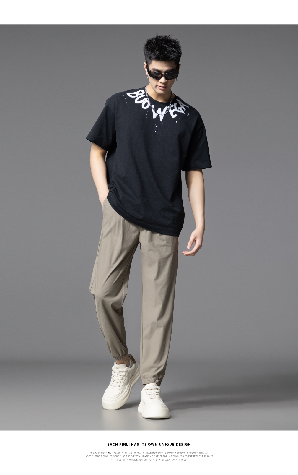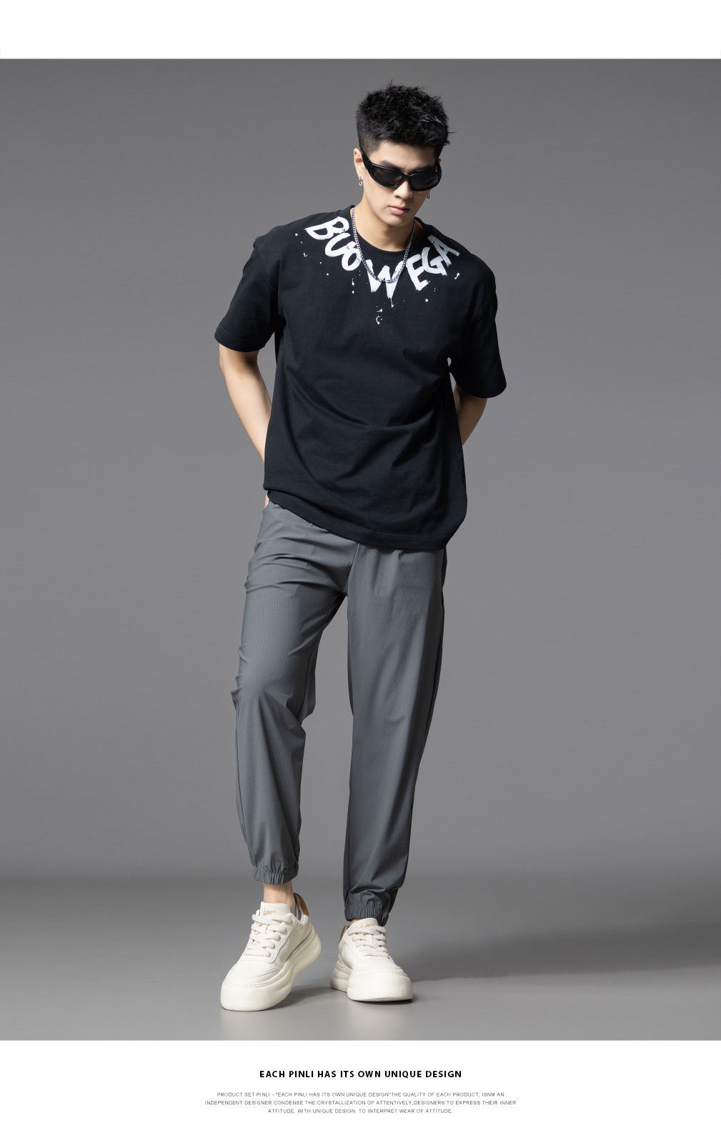 PINLI品立2025夏季新款修身纯色束脚裤男士潮流简约百搭休闲长裤GD252117264