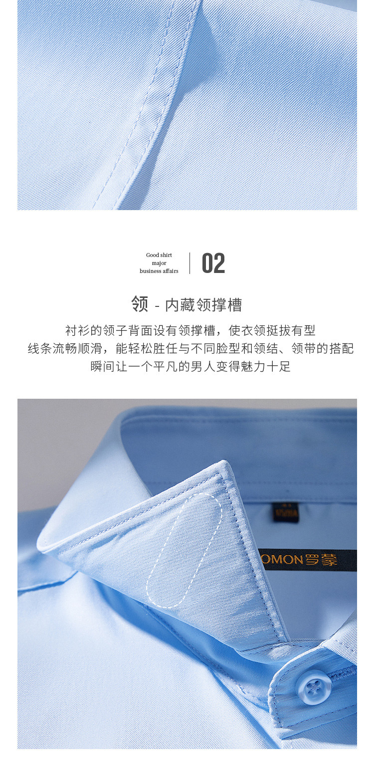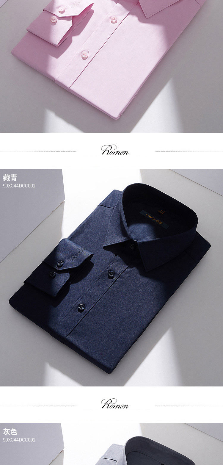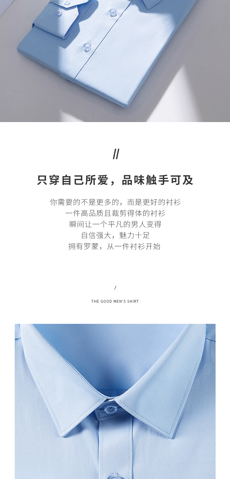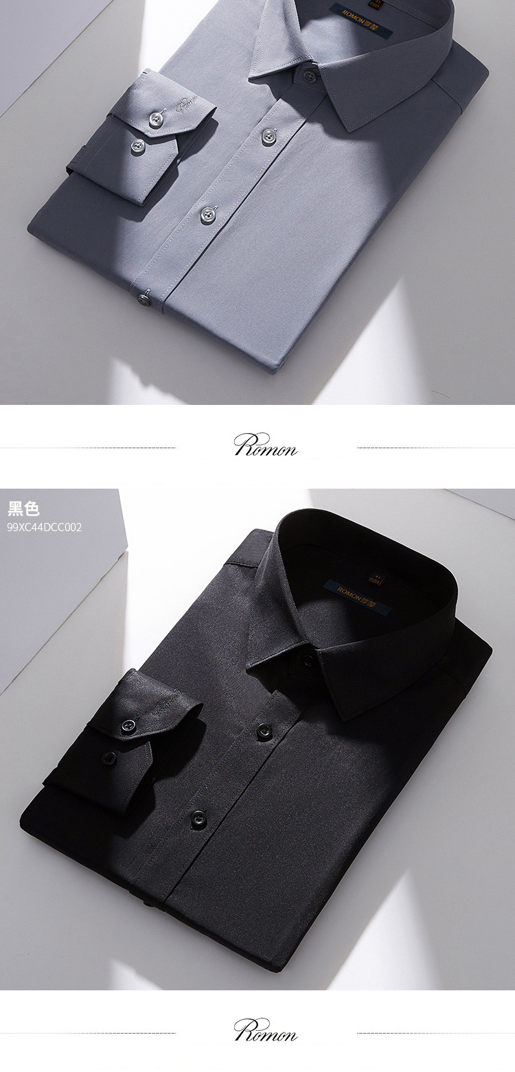 【40棉混纺】罗蒙男士衬衫简约纯色商务通勤职业工装上班长袖衬衫男