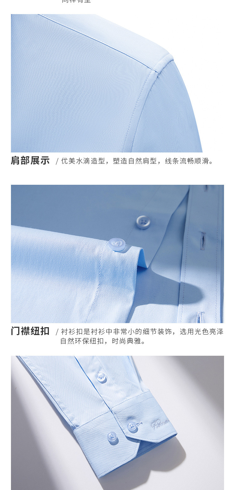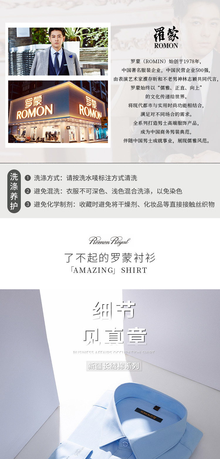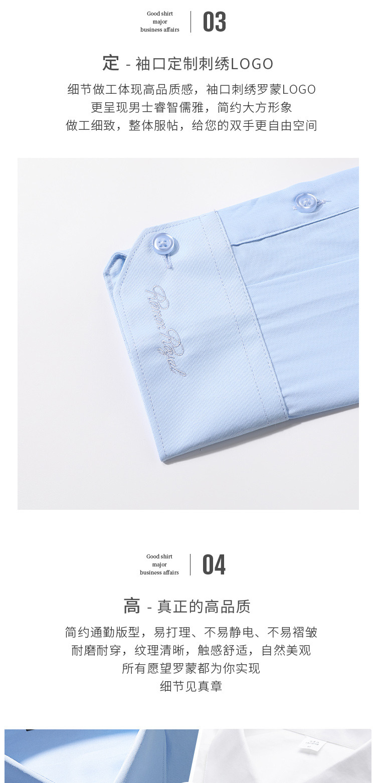 【40棉混纺】罗蒙男士衬衫简约纯色商务通勤职业工装上班长袖衬衫男