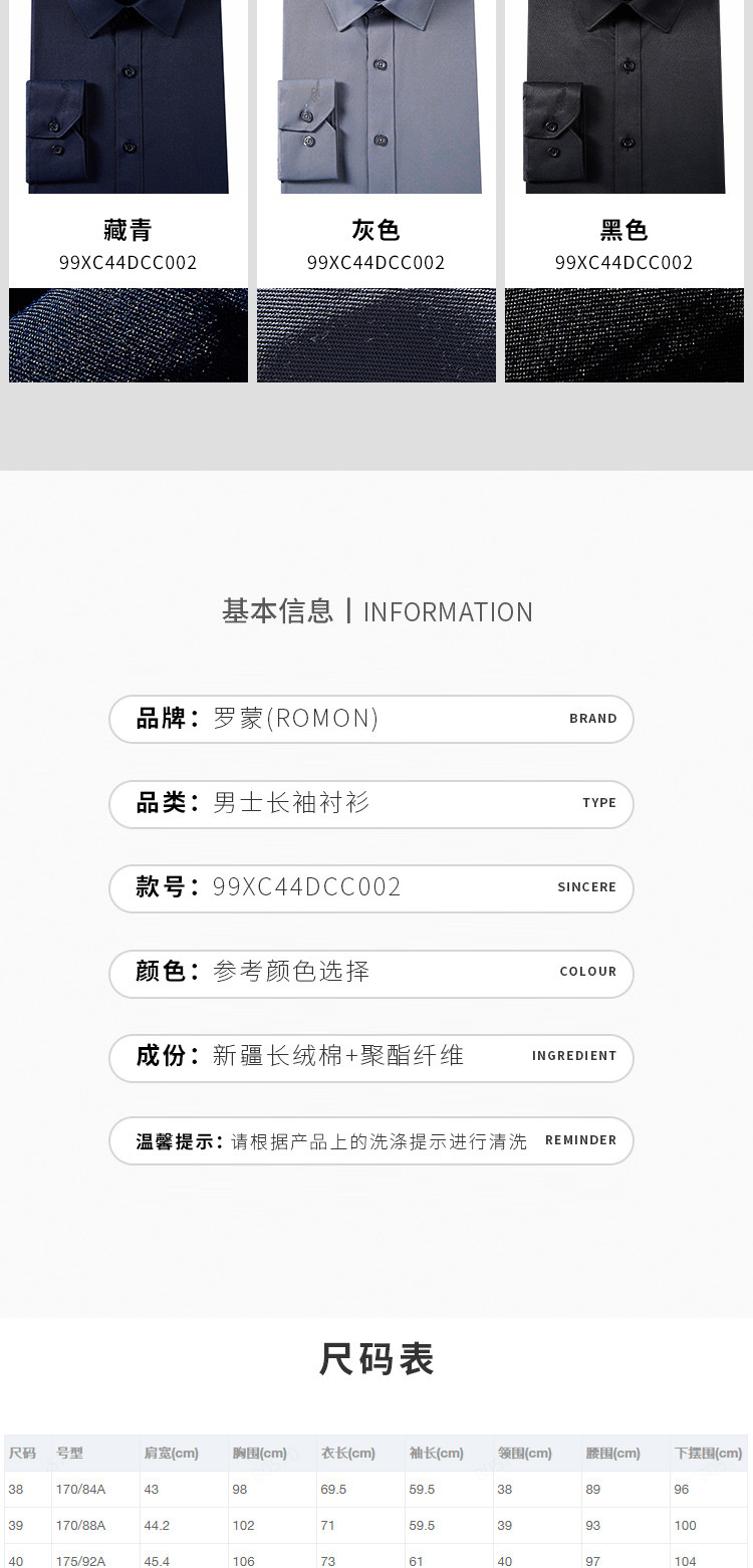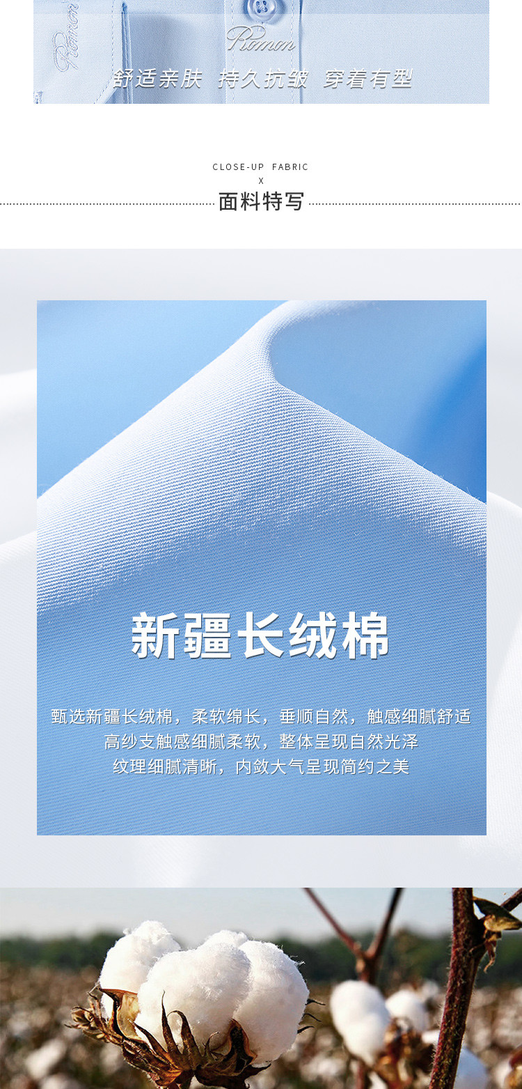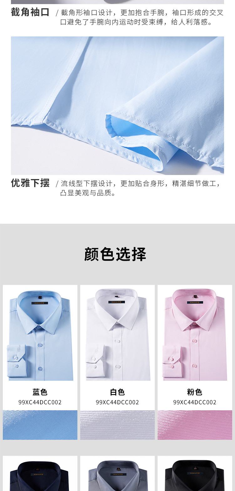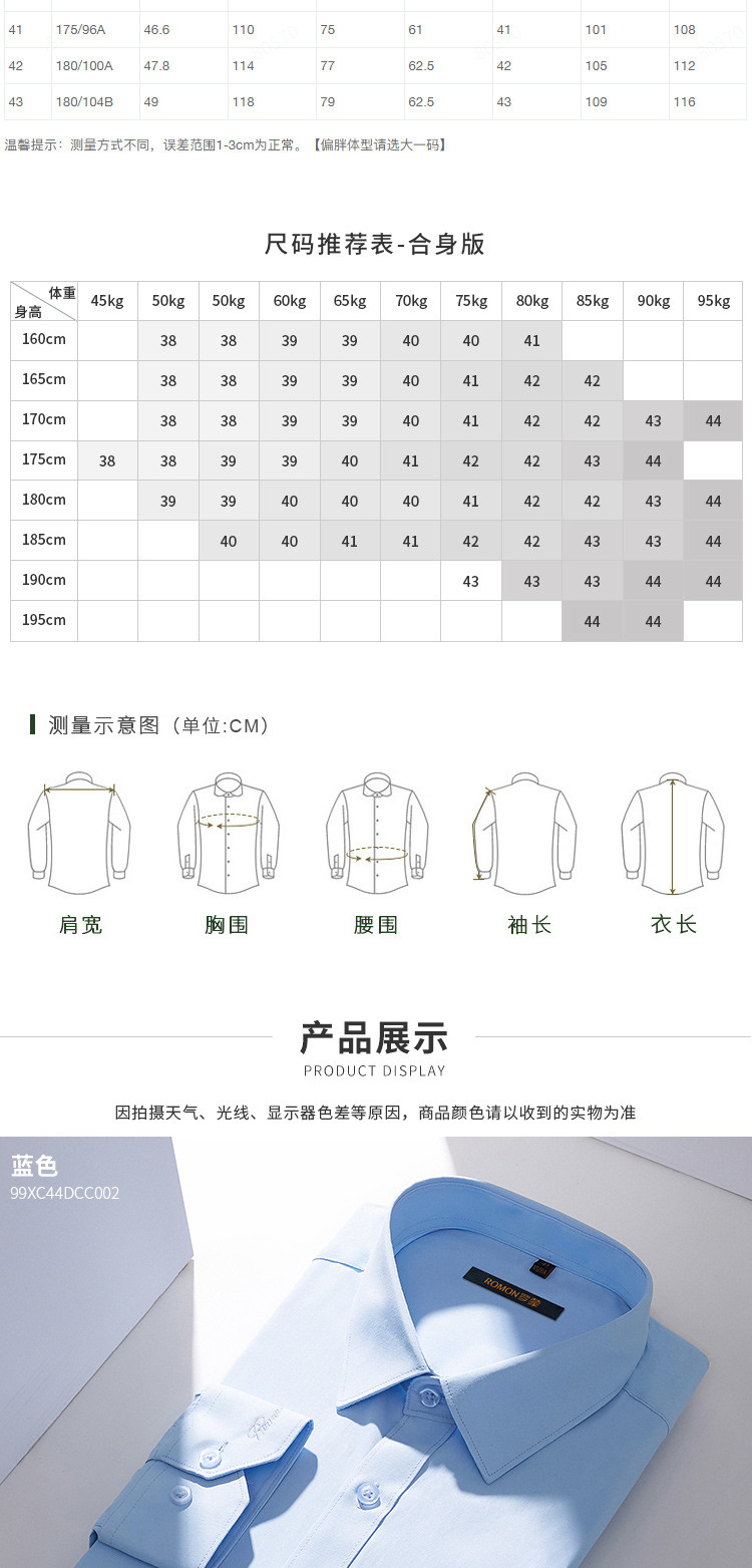 【40棉混纺】罗蒙男士衬衫简约纯色商务通勤职业工装上班长袖衬衫男