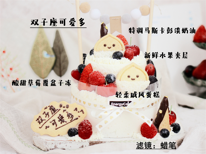 ~减去多余糖份、搭配新鲜水果,草莓覆盆子冻冻增强了蛋糕的风味,用了特调灵感马斯卡彭淡奶油,有点口感但不会厚重~总之,是男生也很喜欢的味道呢~