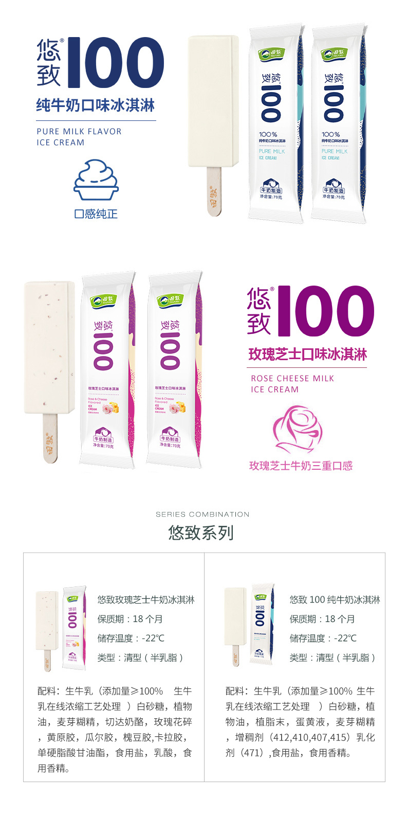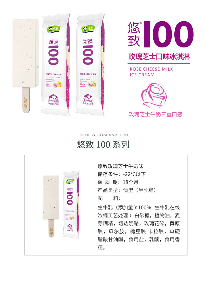 【多口味可选】田牧 悠致100冰淇淋70g*5支