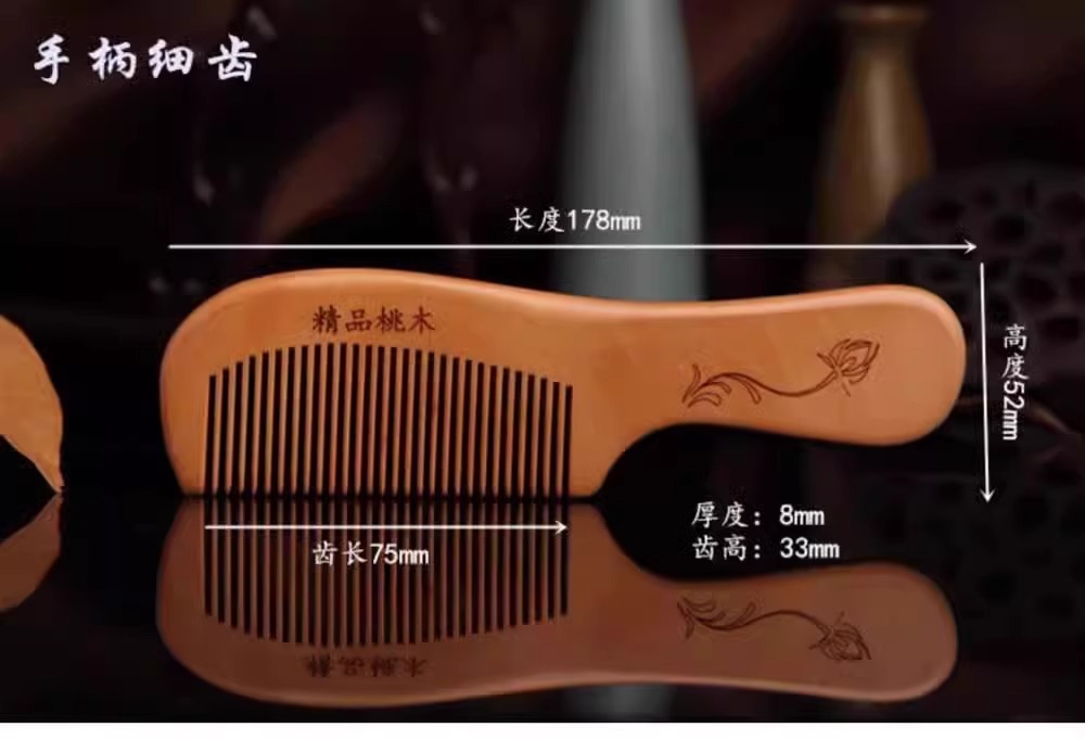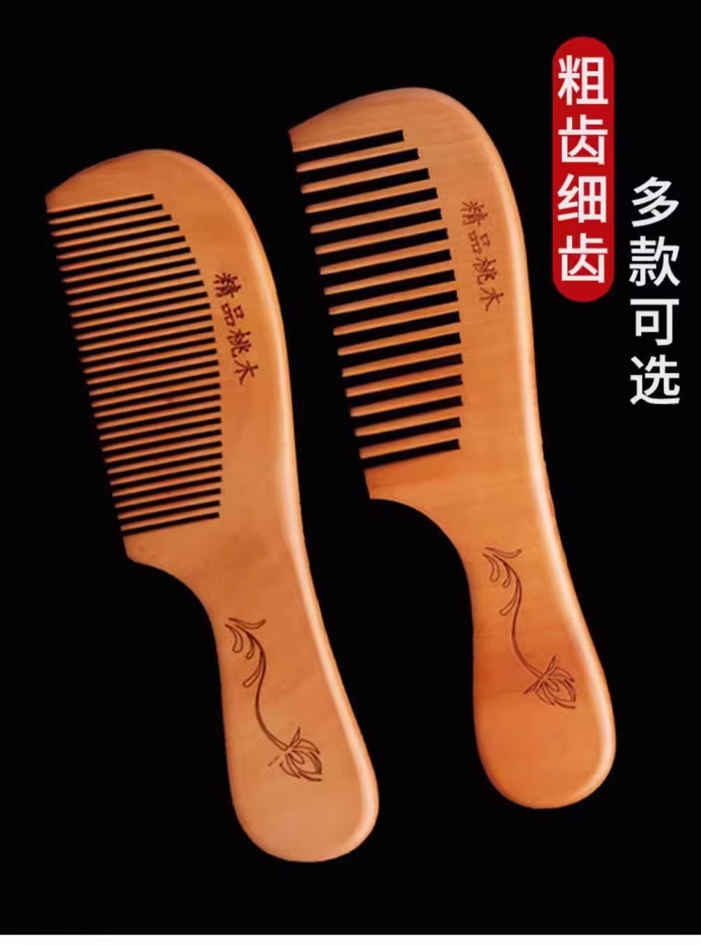 【造型好帮手❗️桃木雕花梳子】排骨梳子透明闪粉塑料镂空梳家用,抚顺炸毛 拯救毛躁发丝,女士长发卷发梳头部按摩梳子L