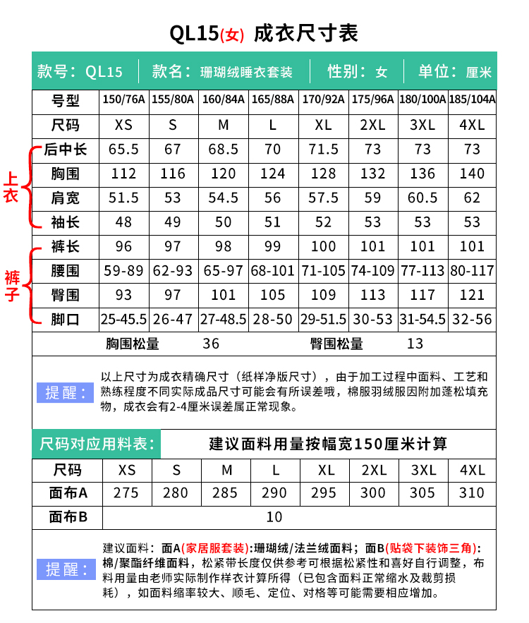 裁缝学苑QL15睡衣纸样女装珊瑚绒情侣家居服小熊男女套装可外穿样板图纸