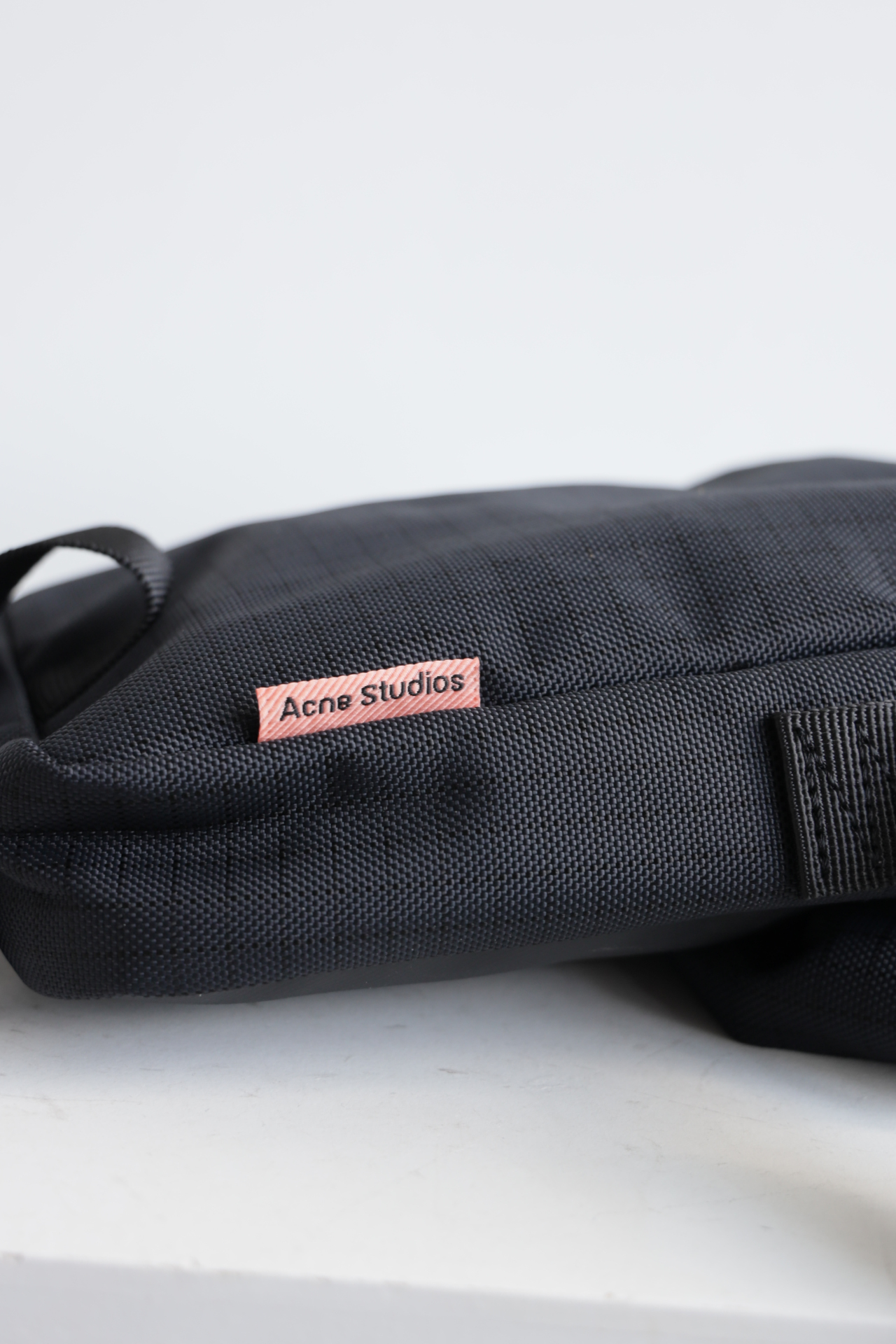 此款迷你包袋选用防撕裂锦纶面料制成,饰有品牌徽标图案。配有可调节斜挎肩带。