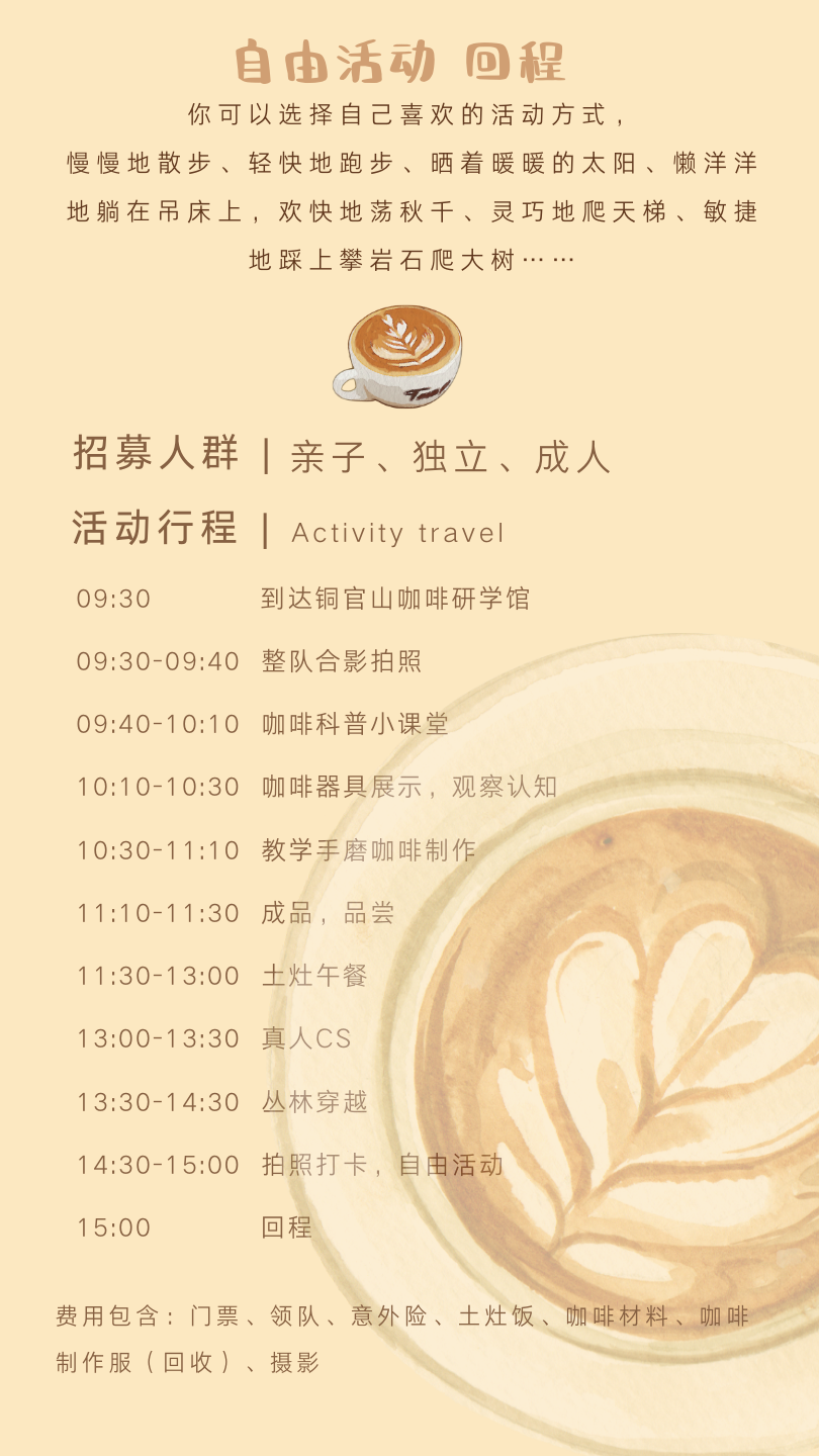 定制 | 小小咖啡师 铜官山 独立/亲子 亲近咖啡,享受咖啡带来的乐趣和美好;放慢节奏、品味咖啡,专注于当下,享受一段与朋友分享的美好时光~