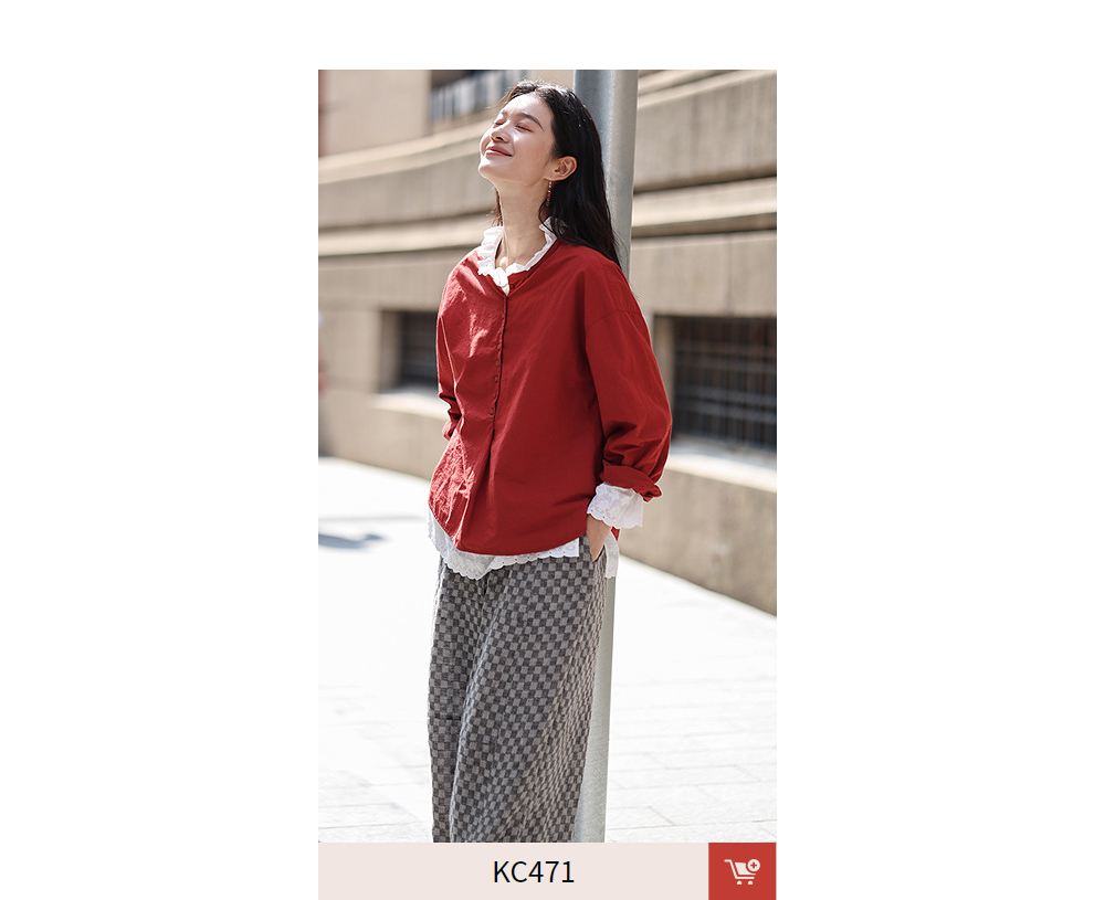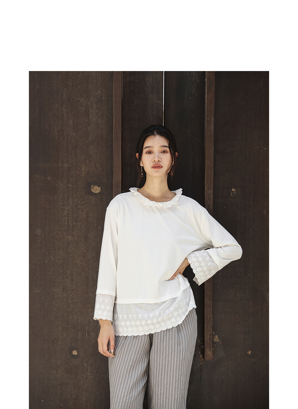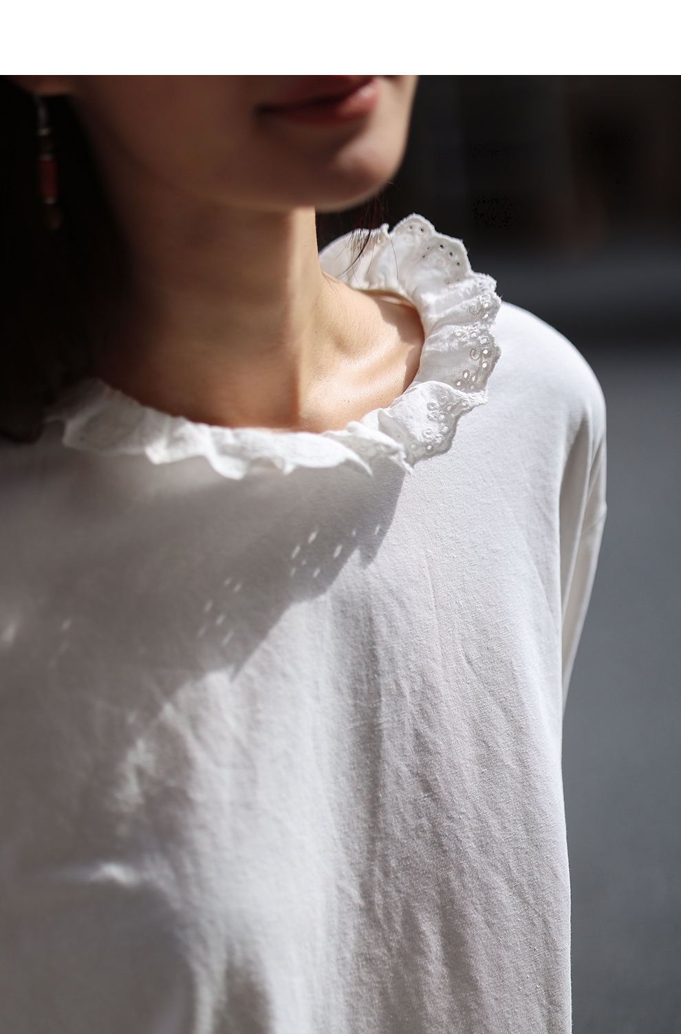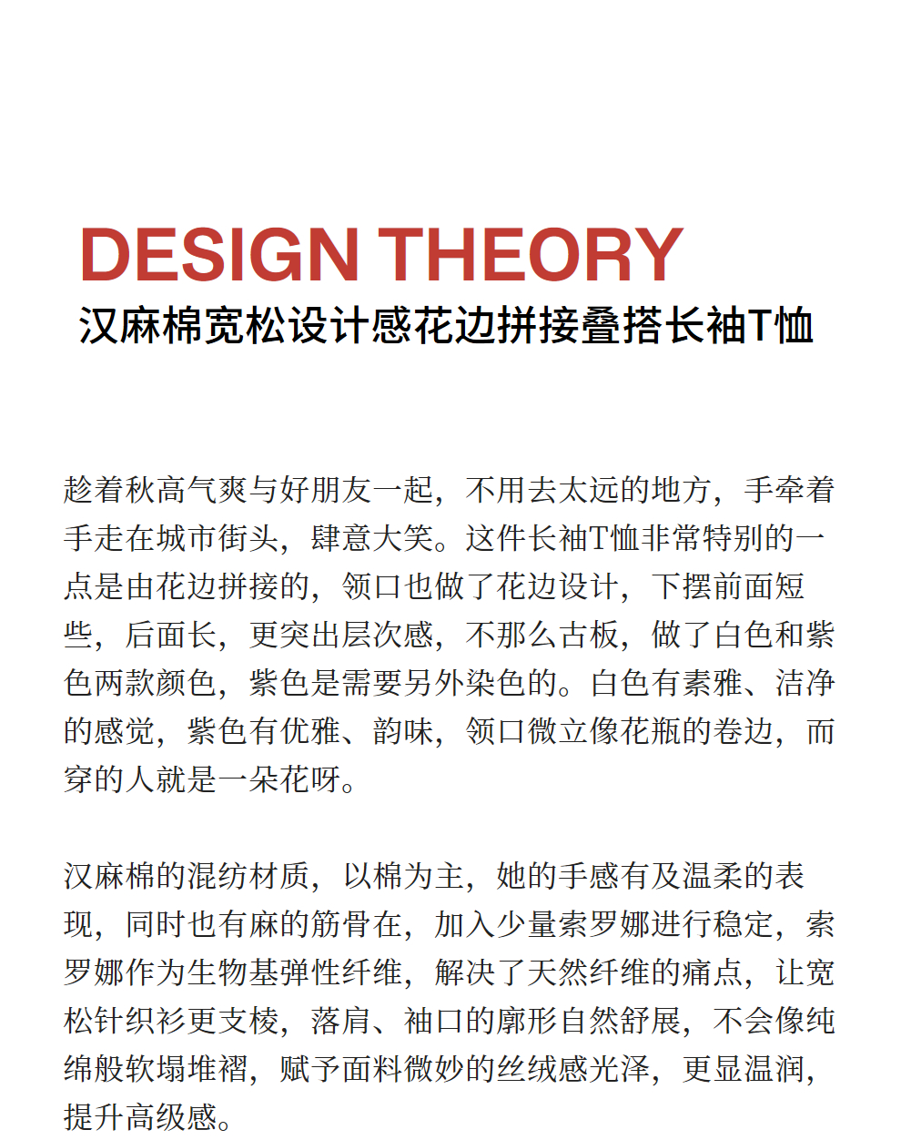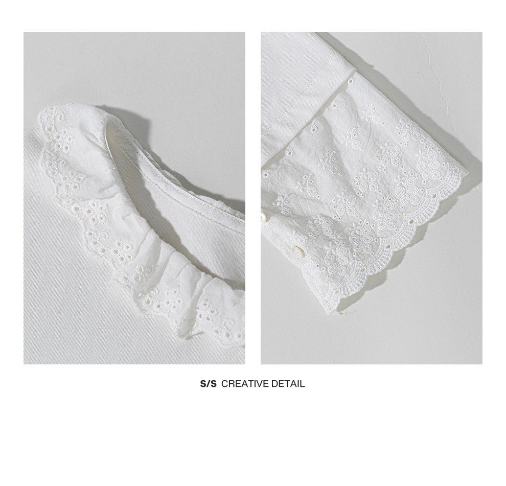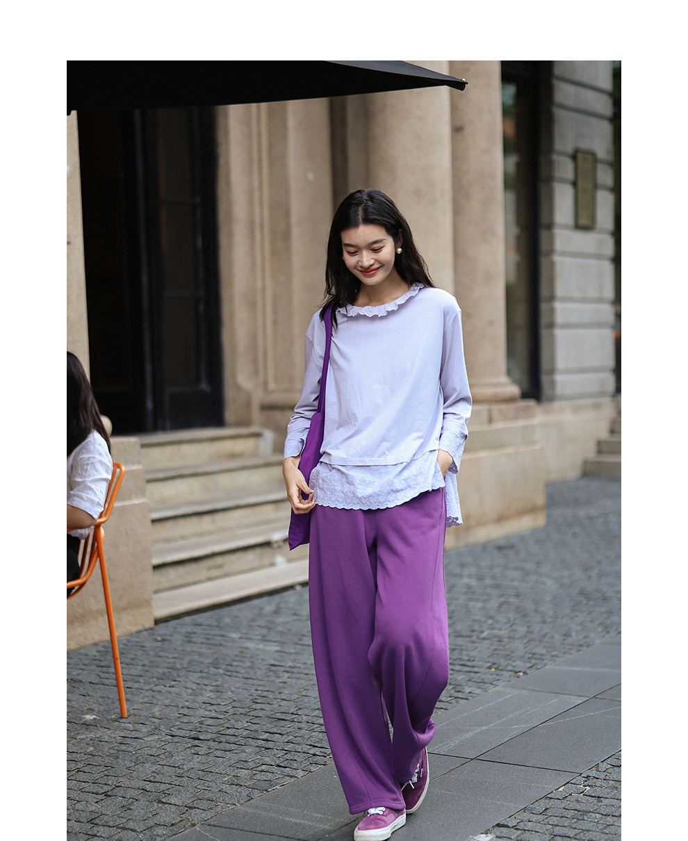 绽放旅行女装471朵/汉麻棉宽松设计感花边拼接叠搭长袖T恤女上衣