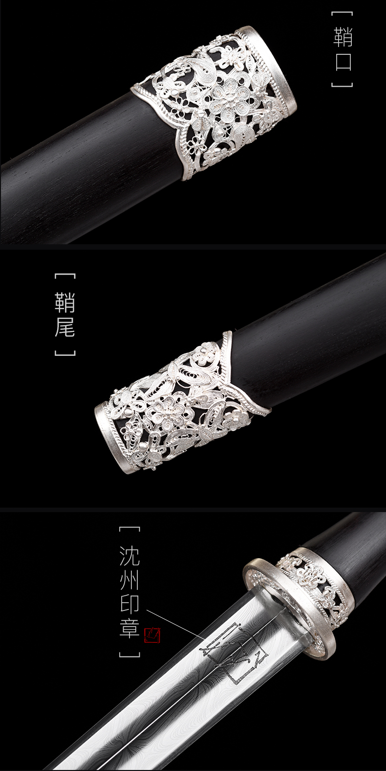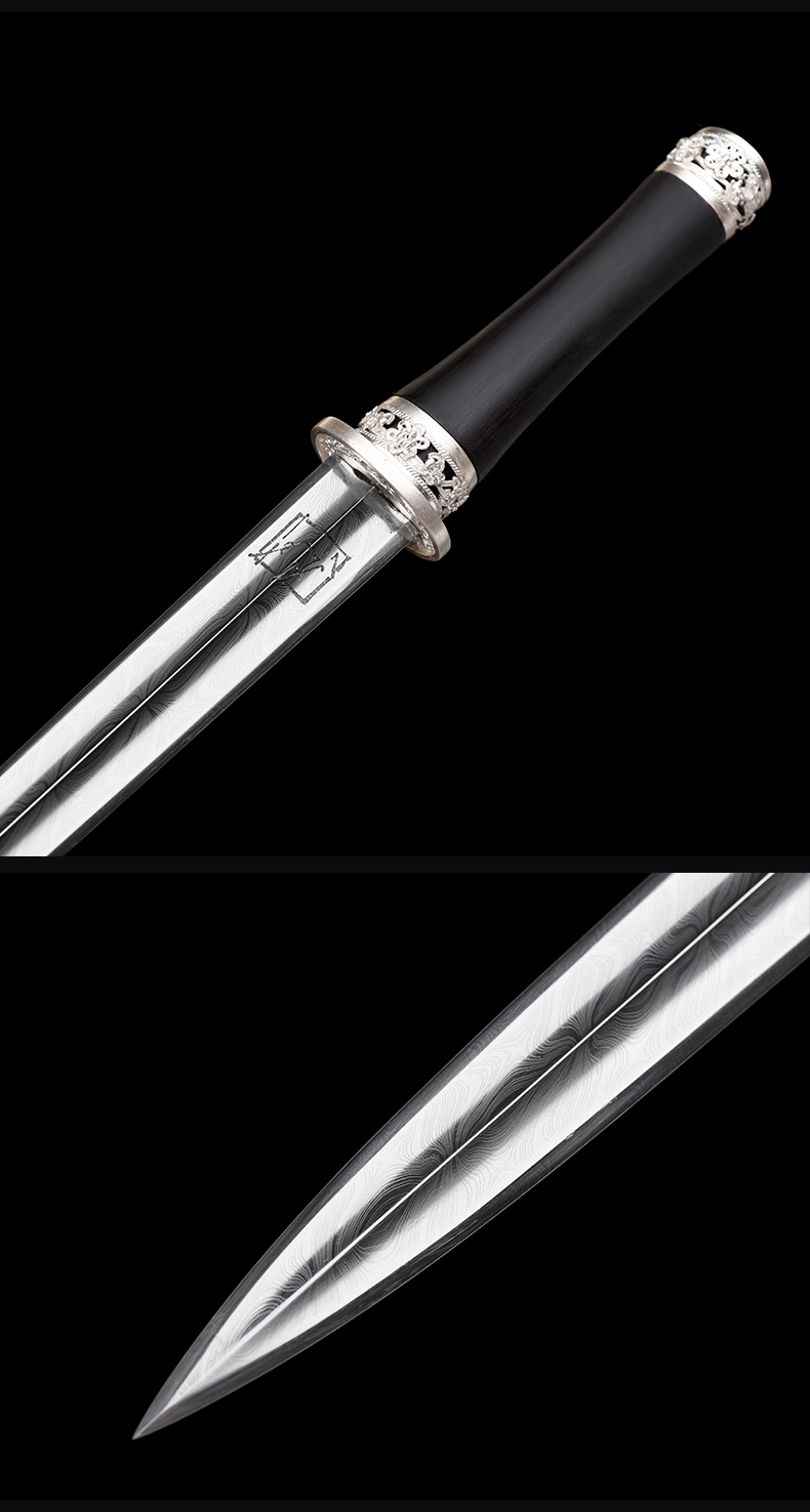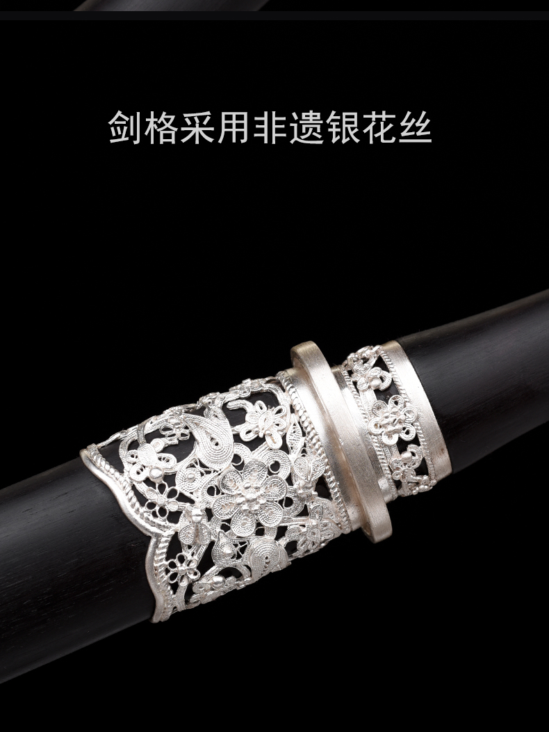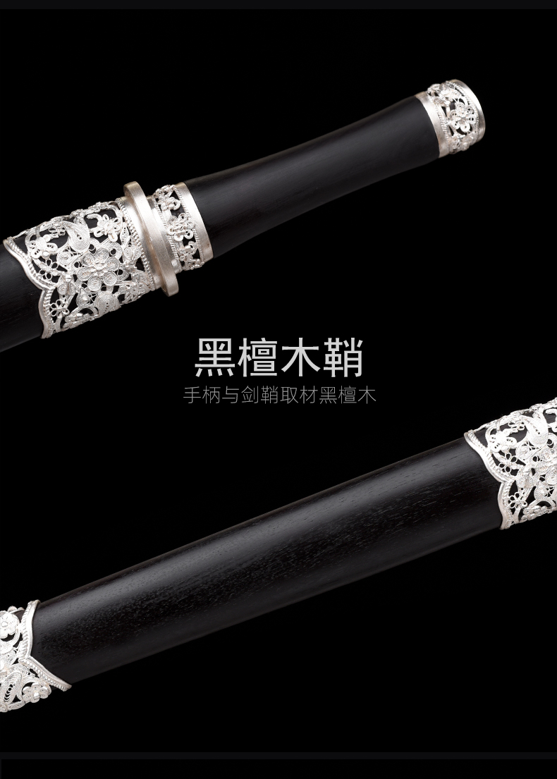 迷你小龙泉 黑檀银花丝 沈州作品 短剑 小短剑 龙泉沈广隆手工传统收藏宝剑 未开刃