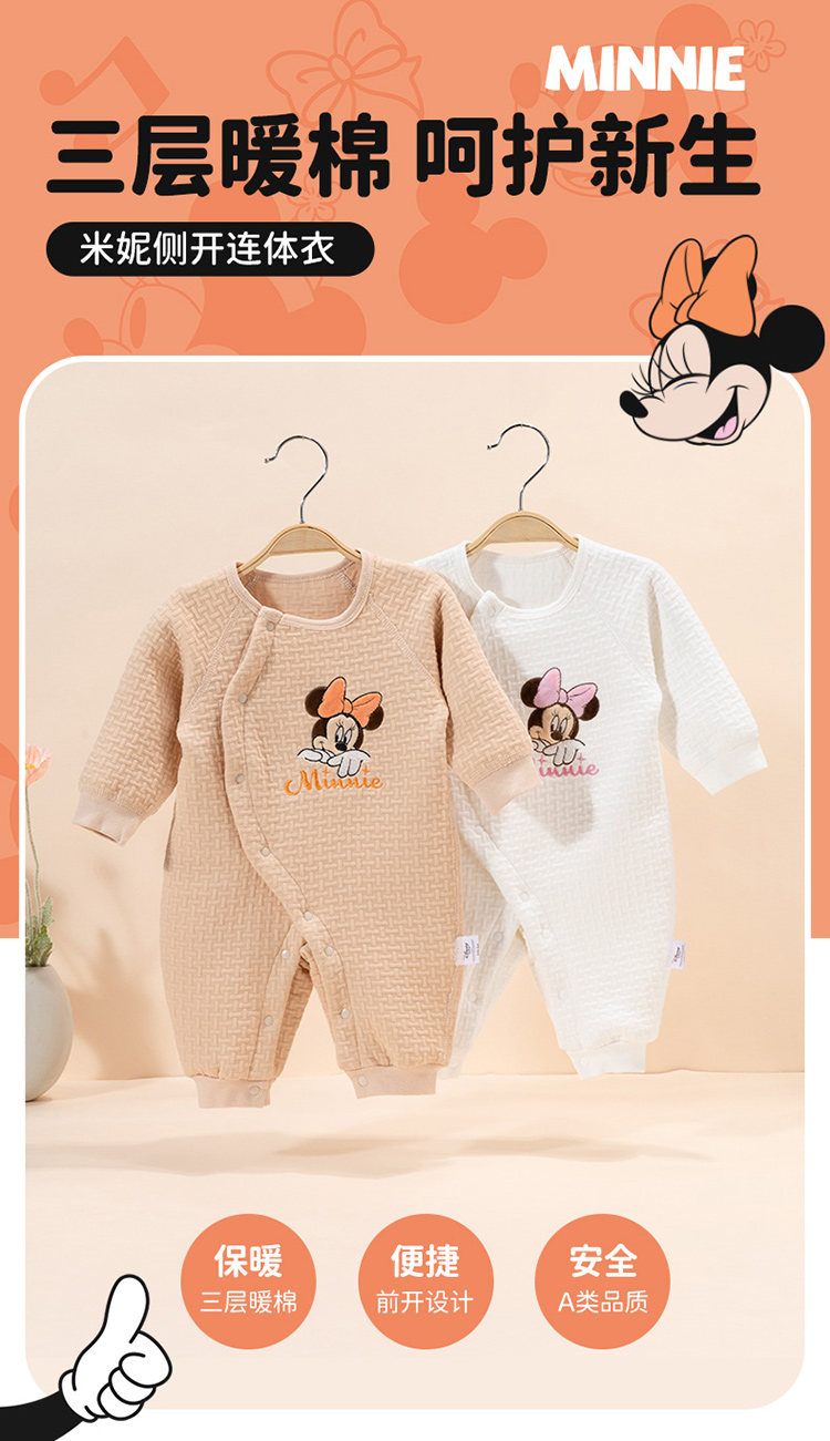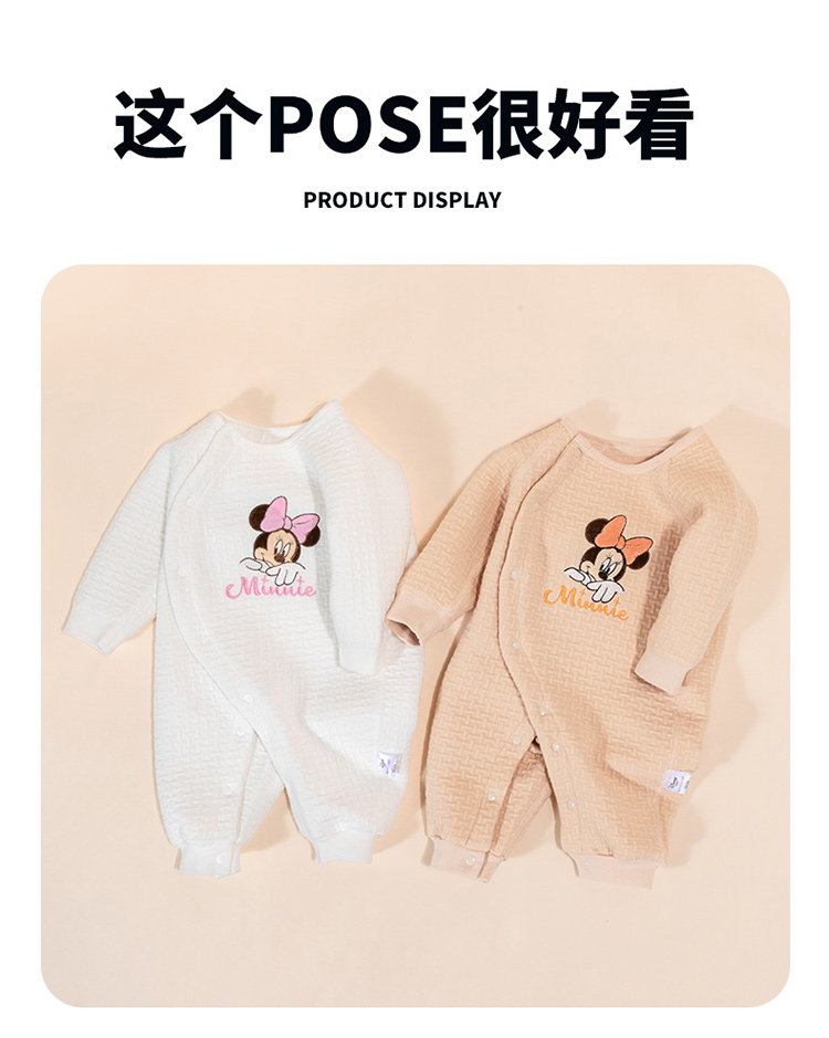 迪士尼童装女童侧开连体衣可爱米妮侧开三层暖棉连体衣ZD4DL001