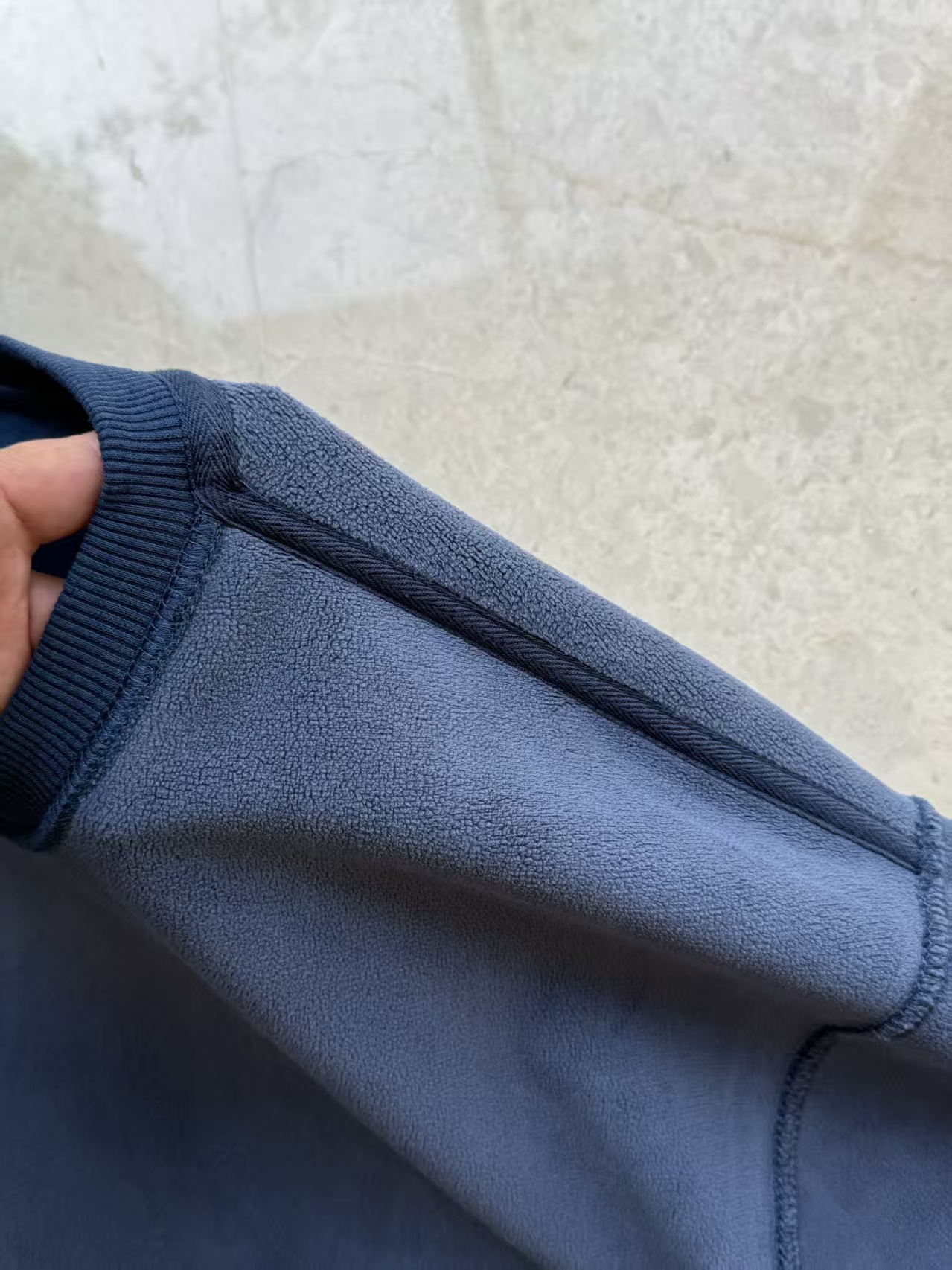 双针压胶走线 领口/袖口采用防变形螺纹。