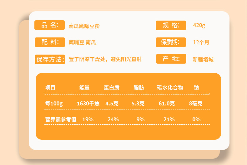 天山小哥鹰嘴豆南瓜粉420g (精装:含独立包装)
