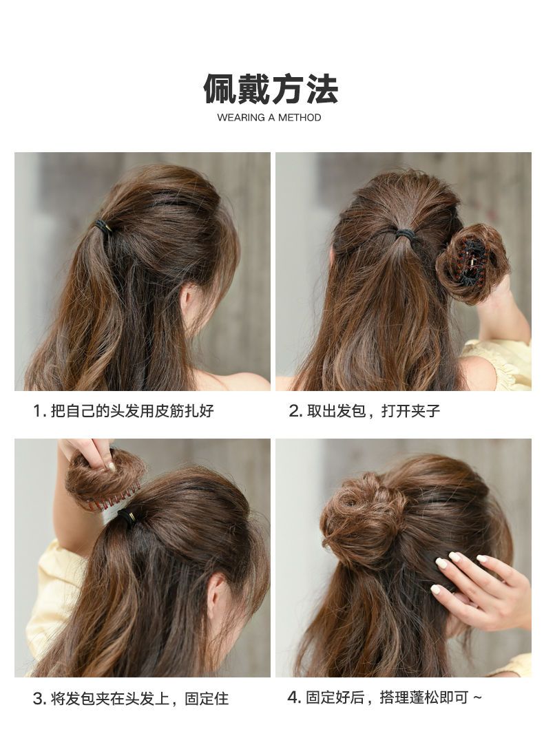 丸子头假发女抓夹发圈花苞头仿真发丝增发量蓬松盘发器懒人假发包