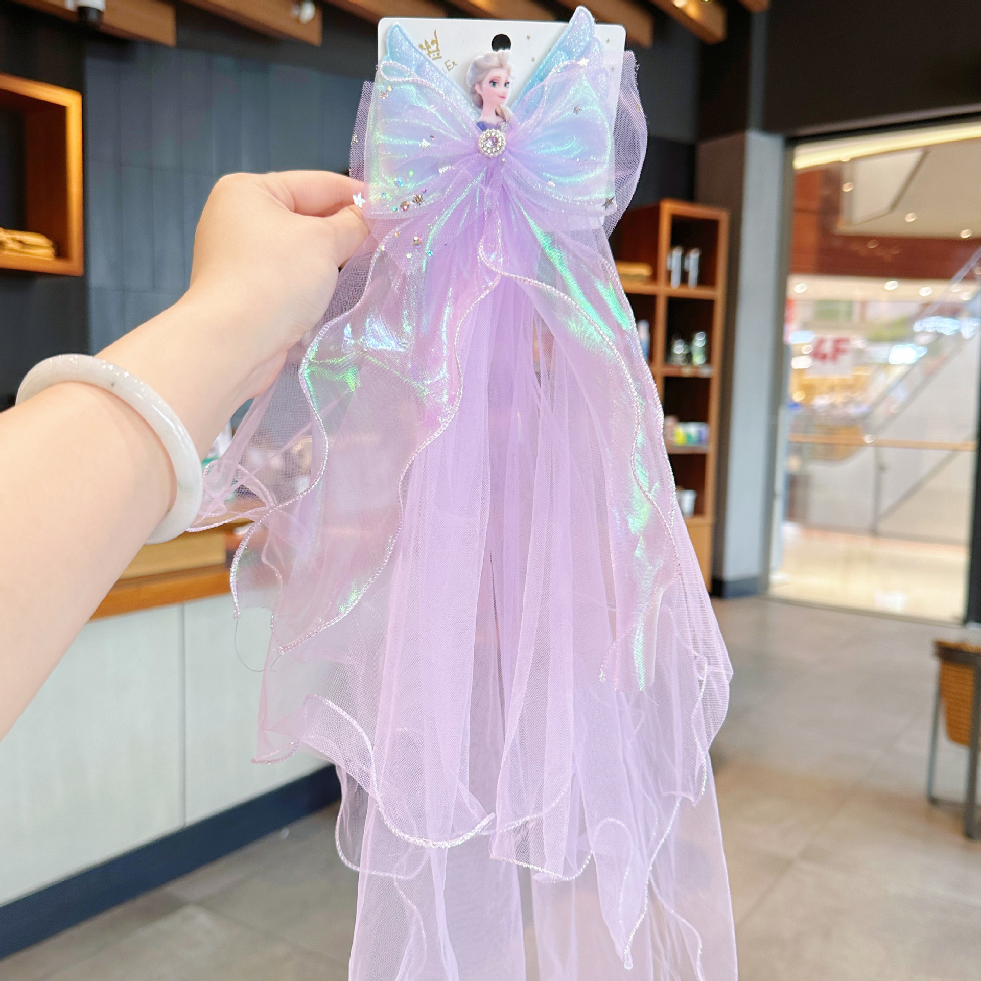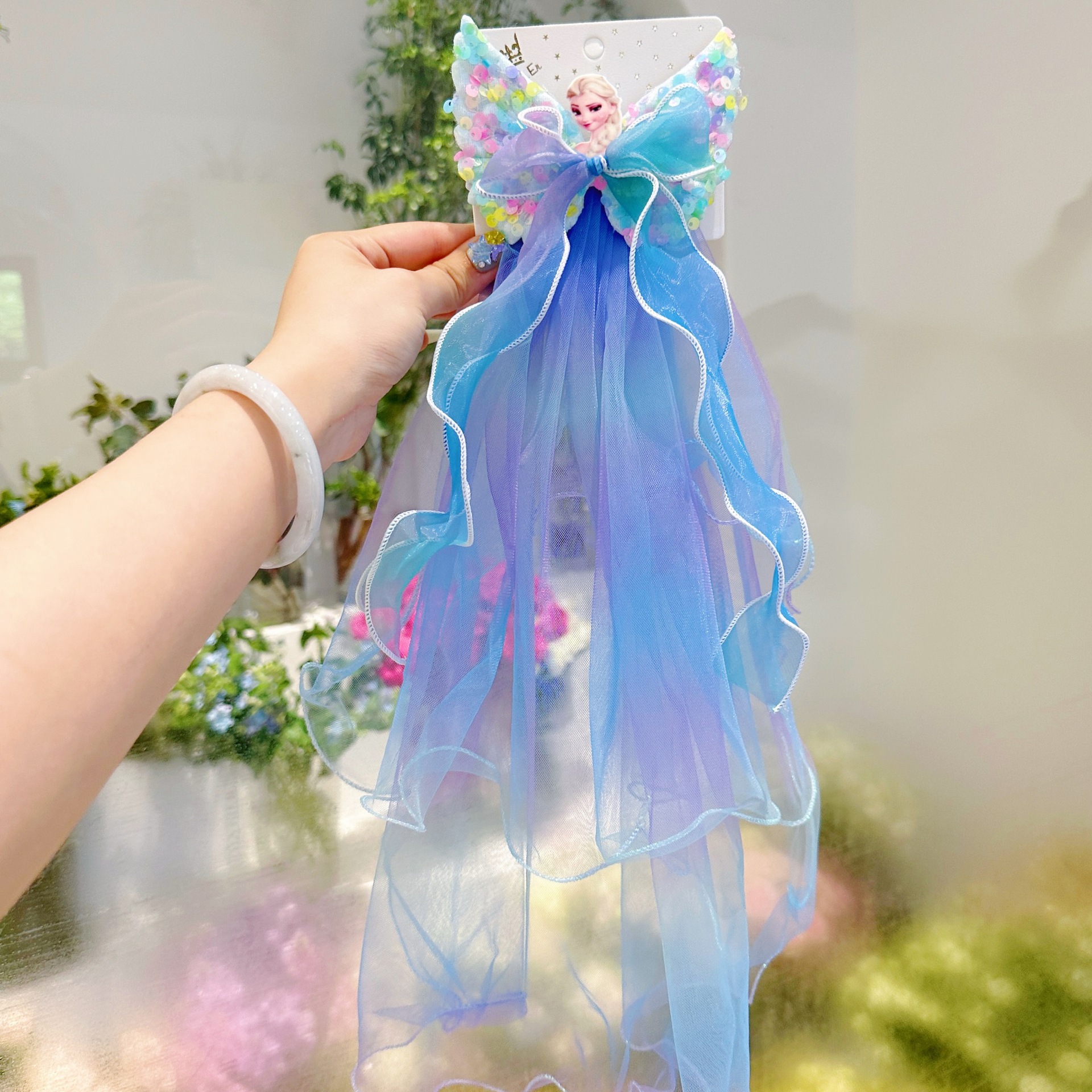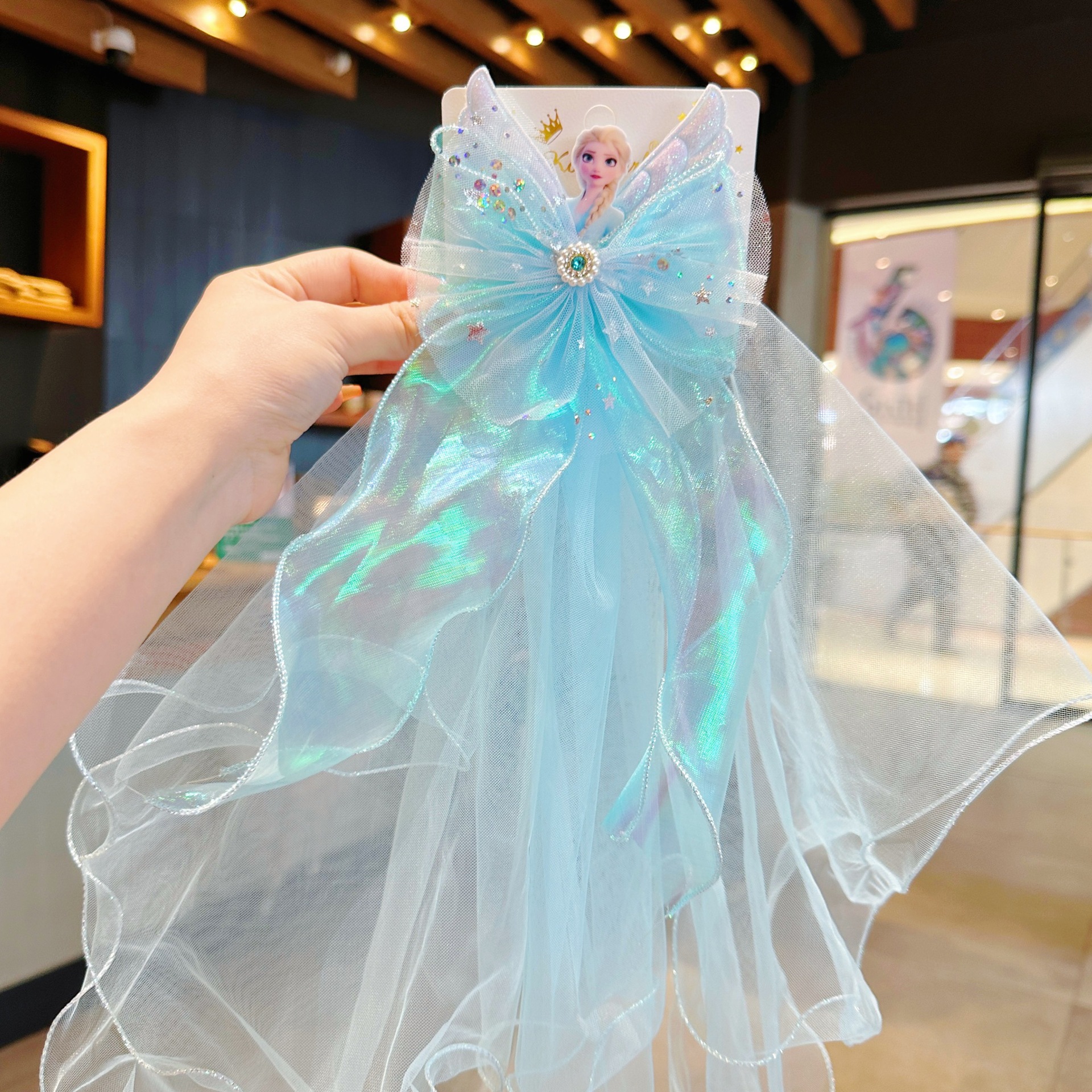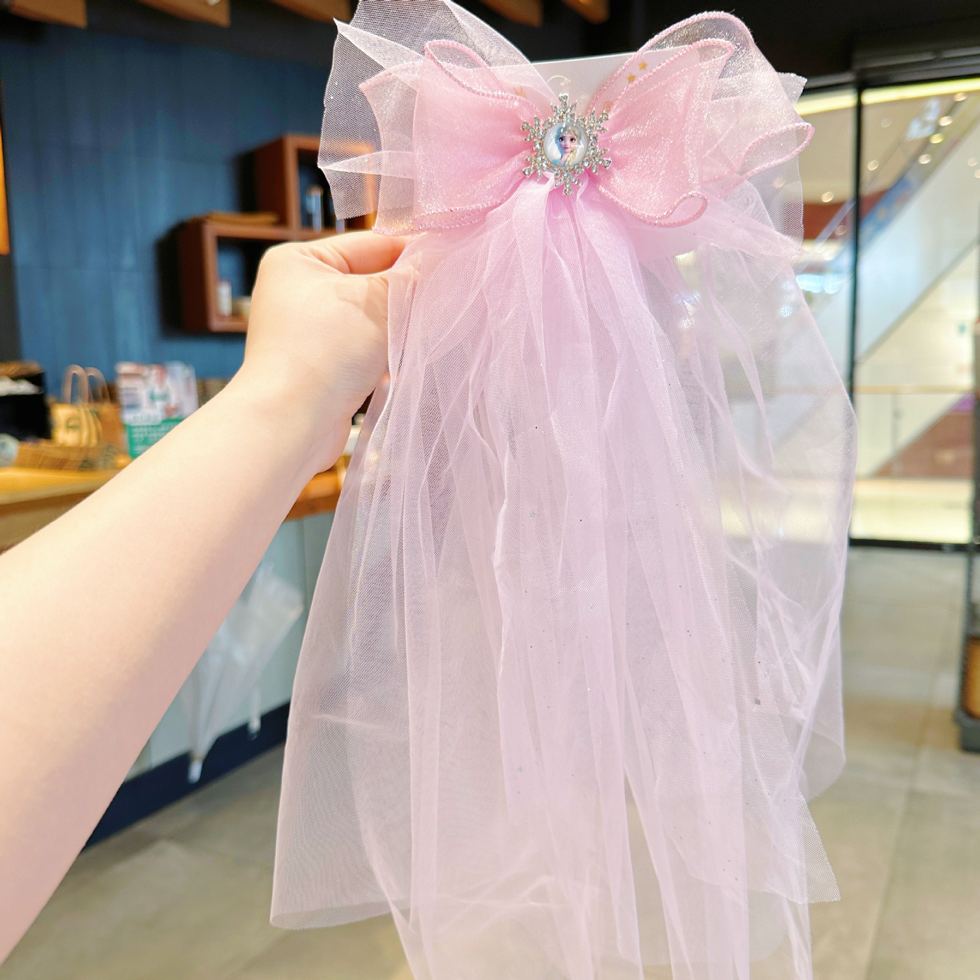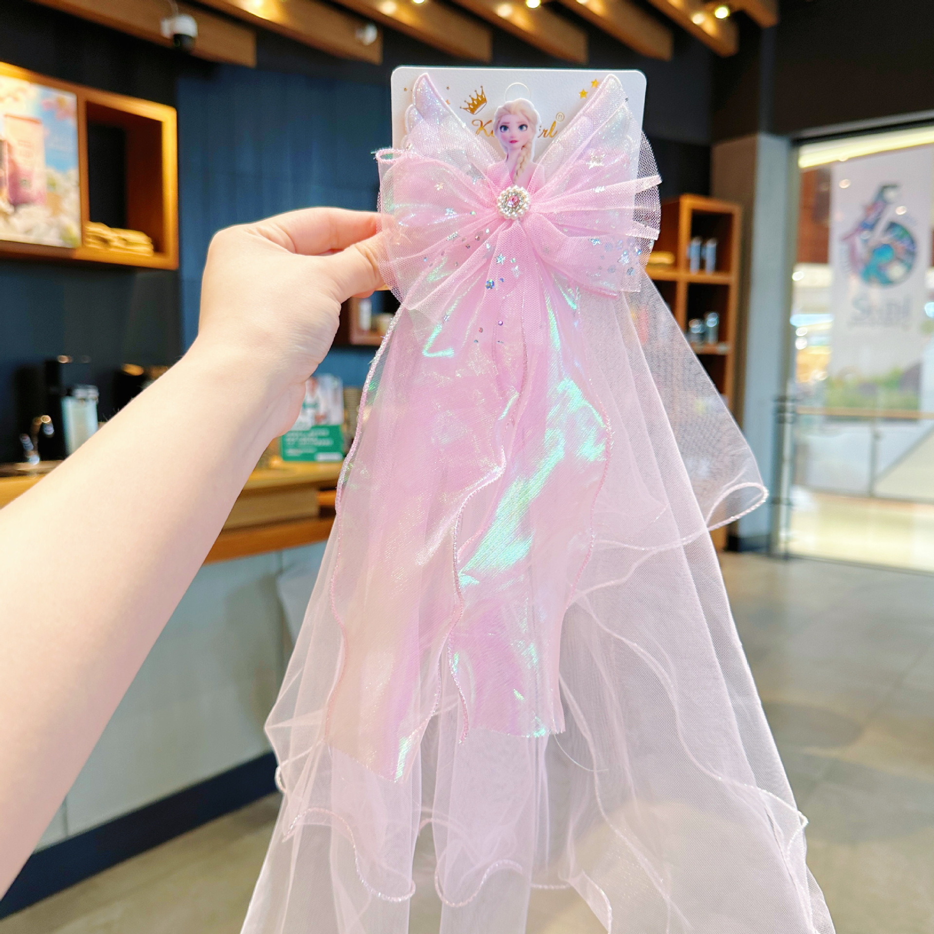 冰雪奇缘艾莎公主蝴蝶结超仙头纱儿童发夹精致可爱手工女儿童发饰