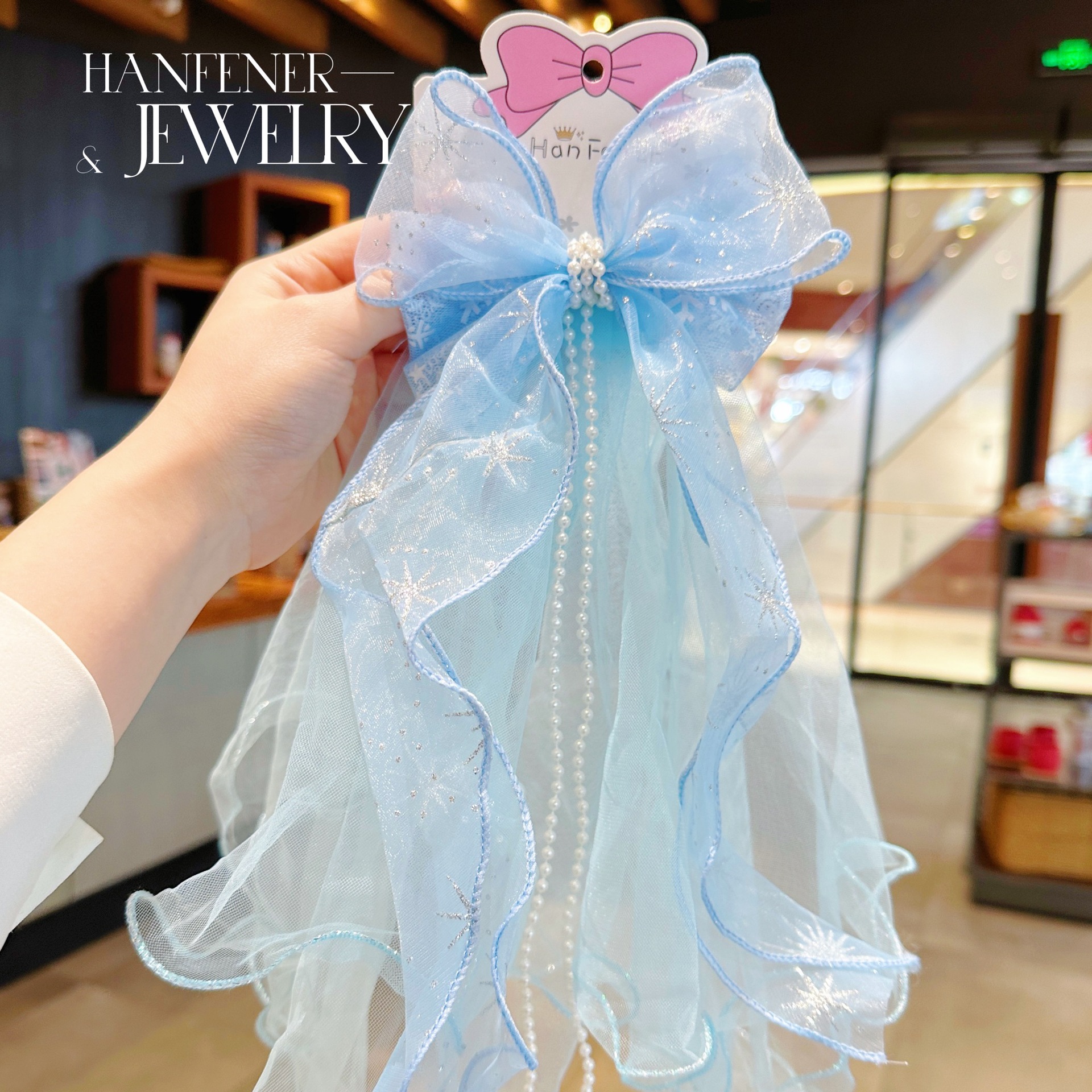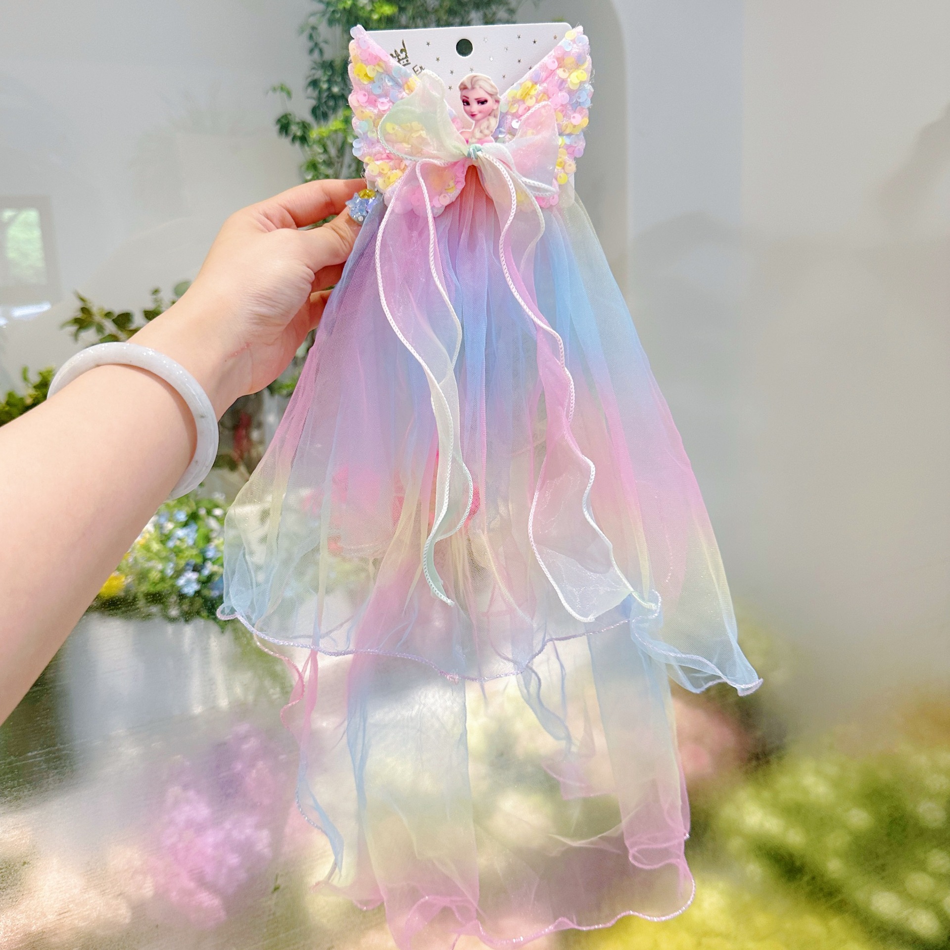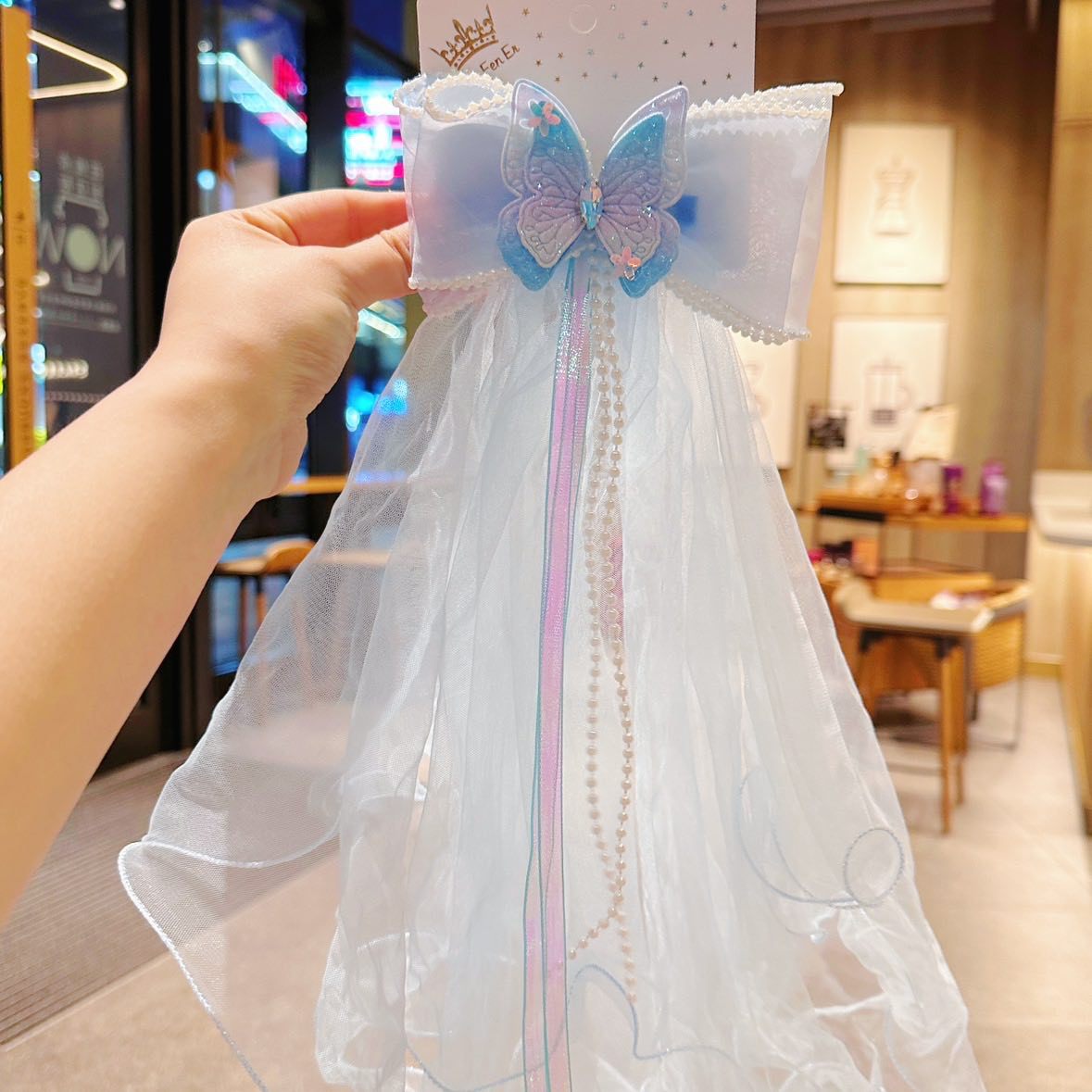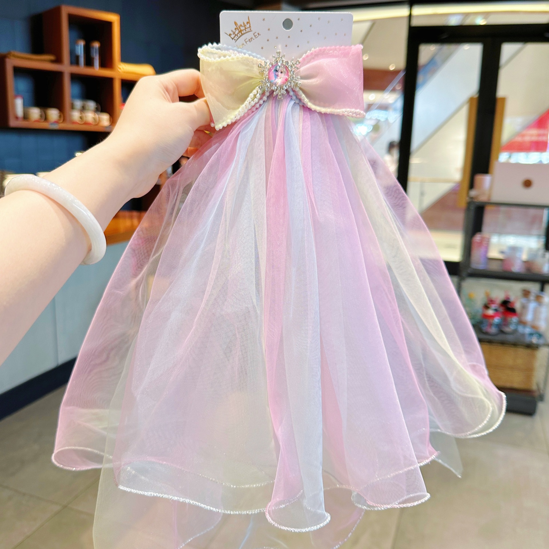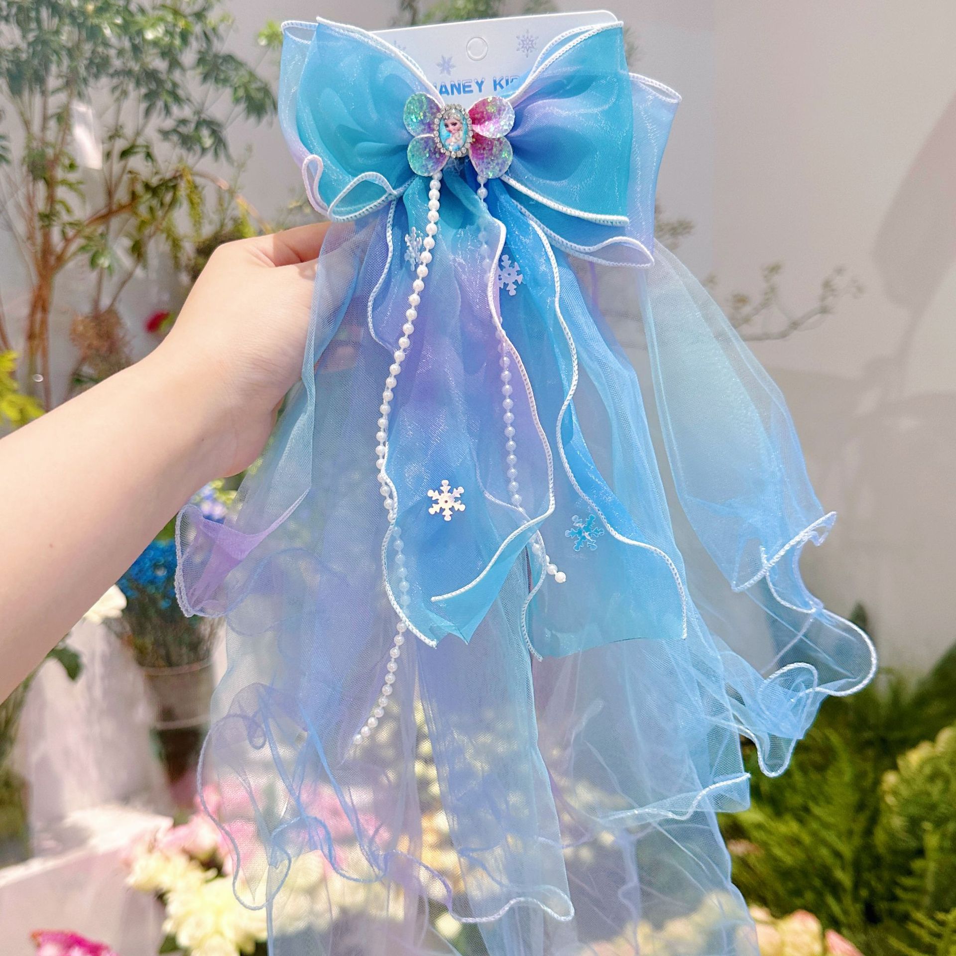 冰雪奇缘艾莎公主蝴蝶结超仙头纱儿童发夹精致可爱手工女儿童发饰