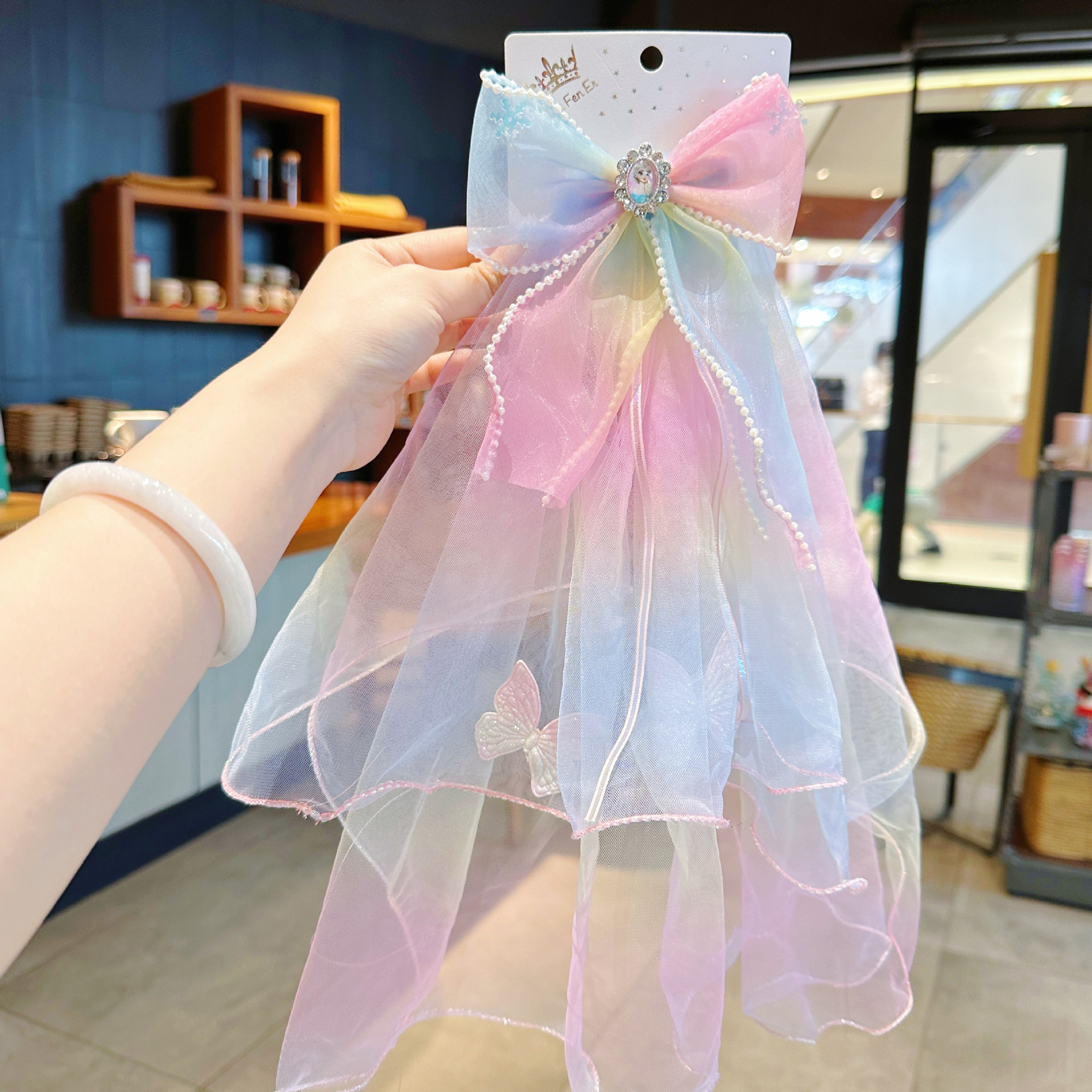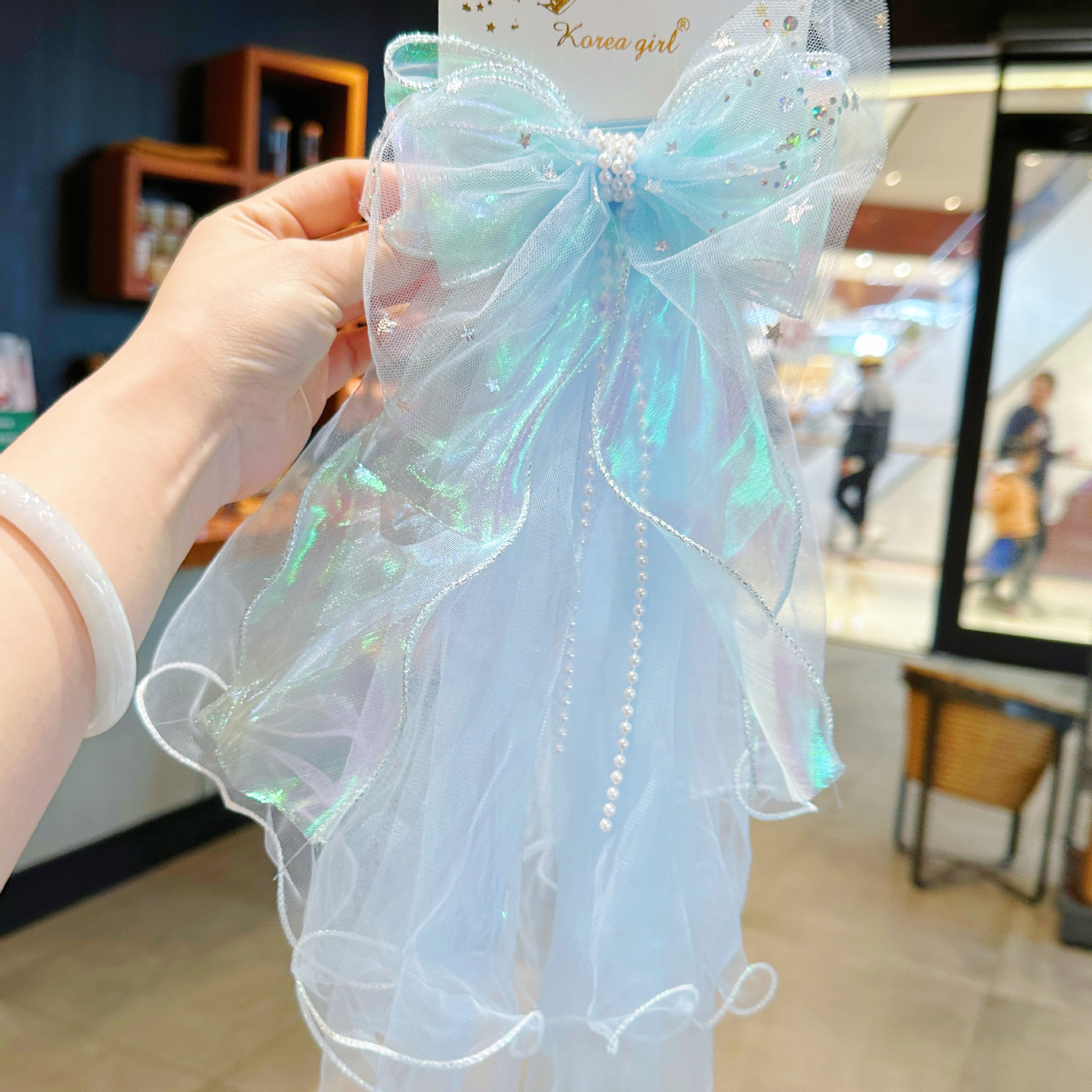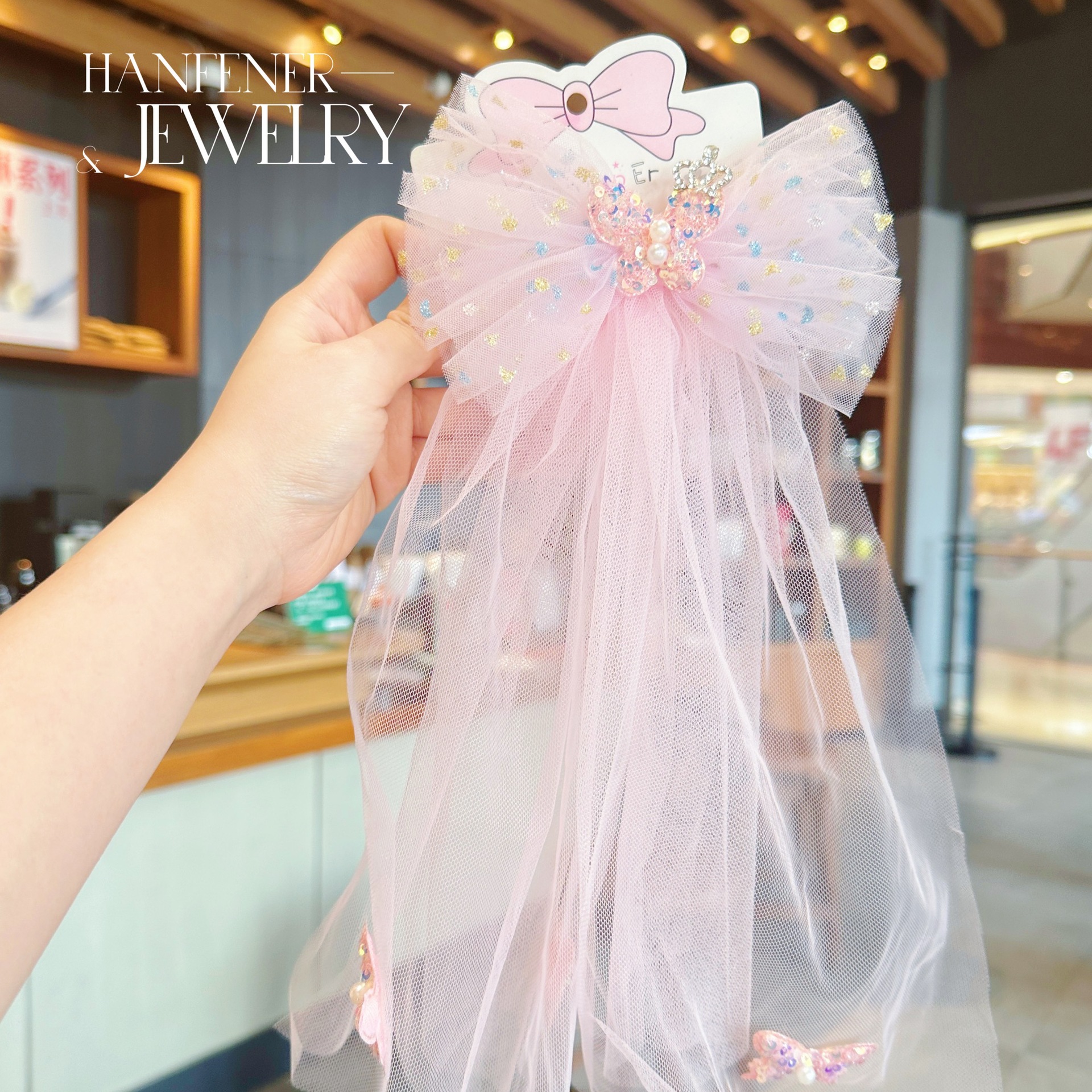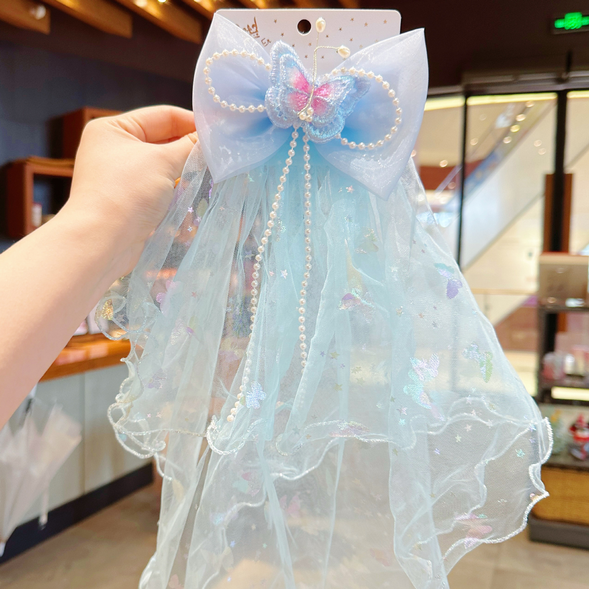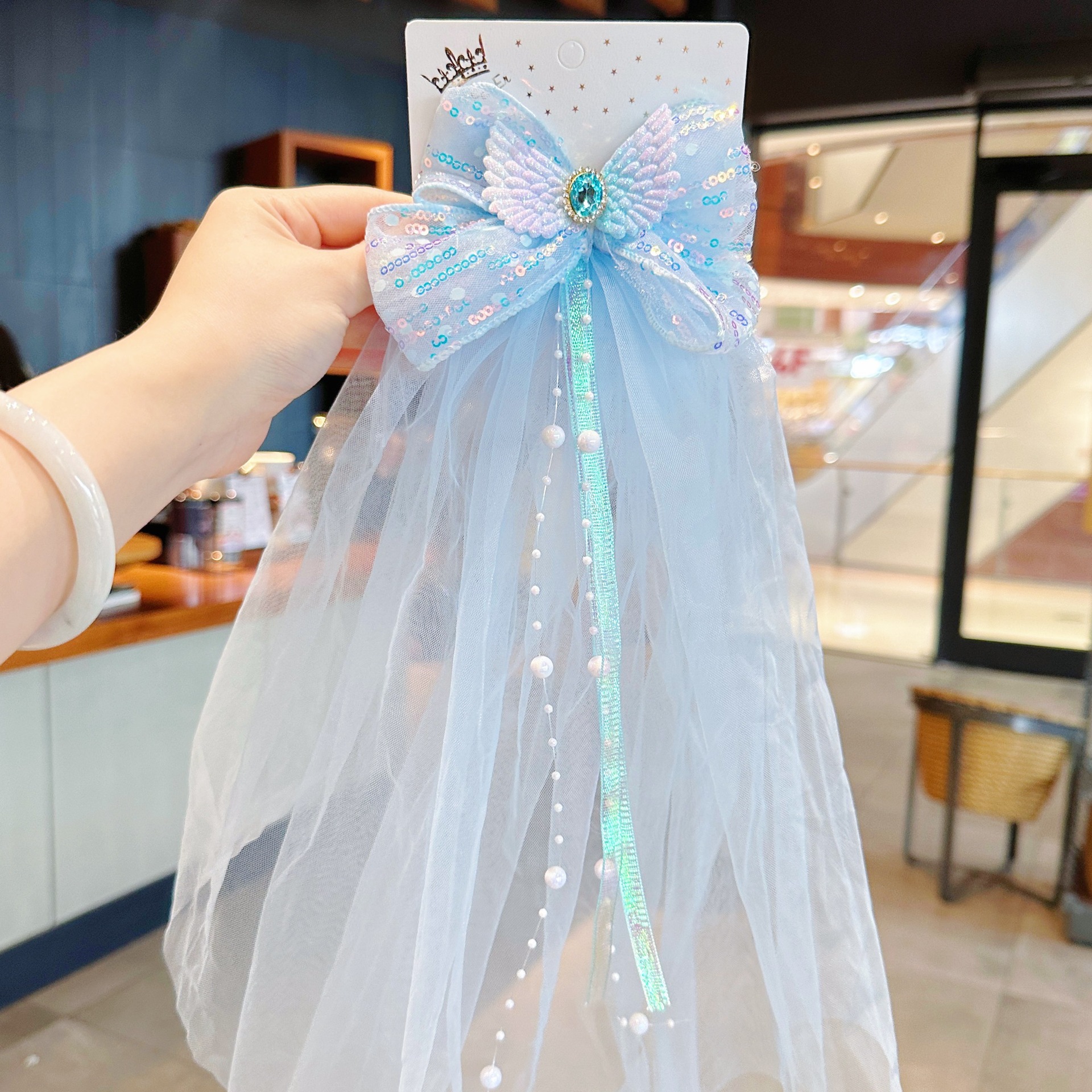 冰雪奇缘艾莎公主蝴蝶结超仙头纱儿童发夹精致可爱手工女儿童发饰