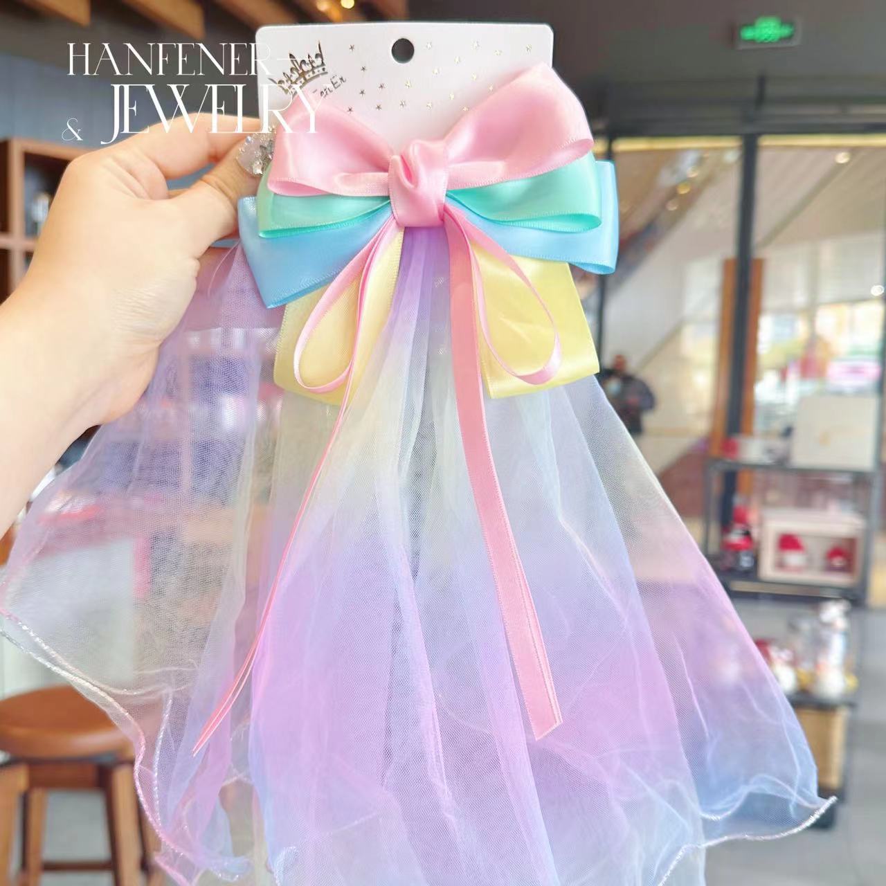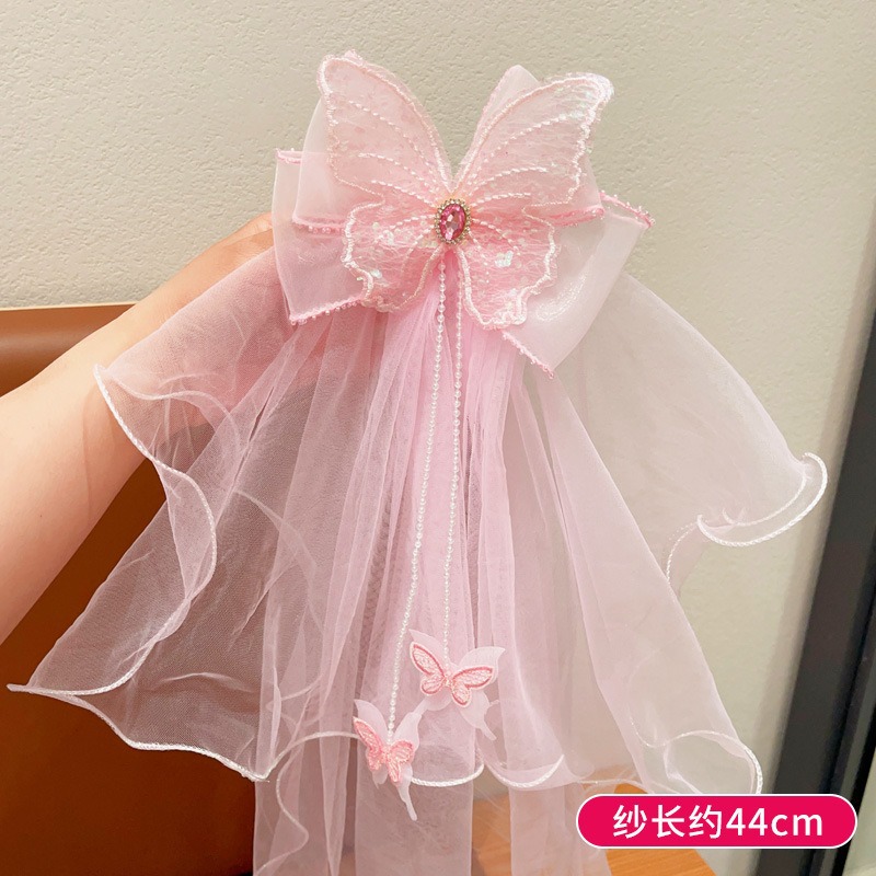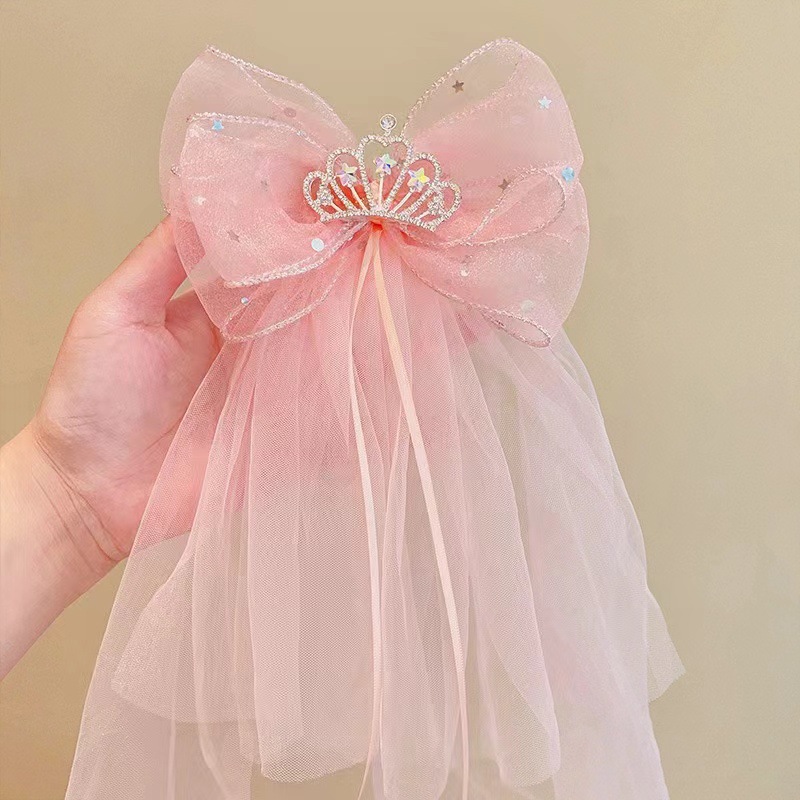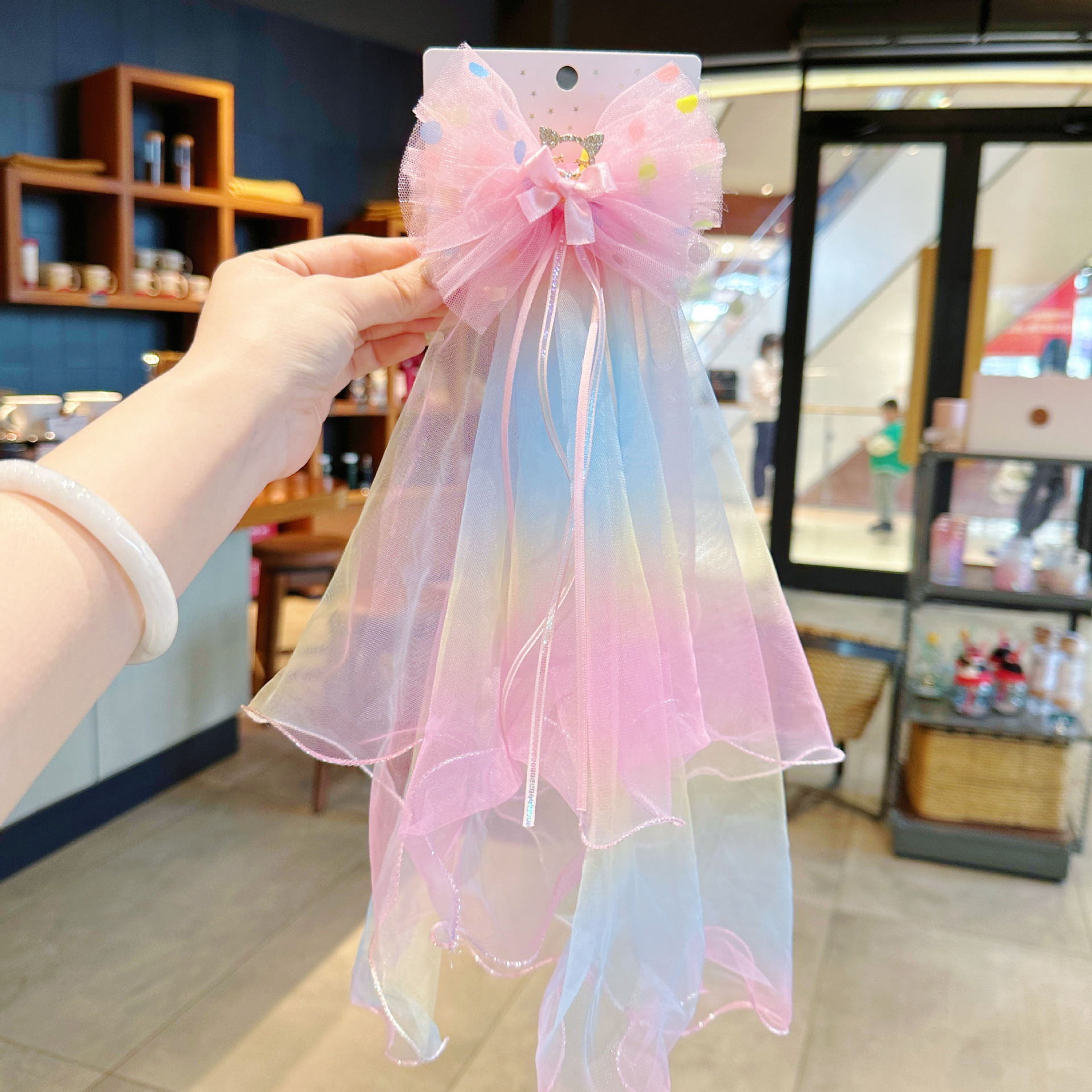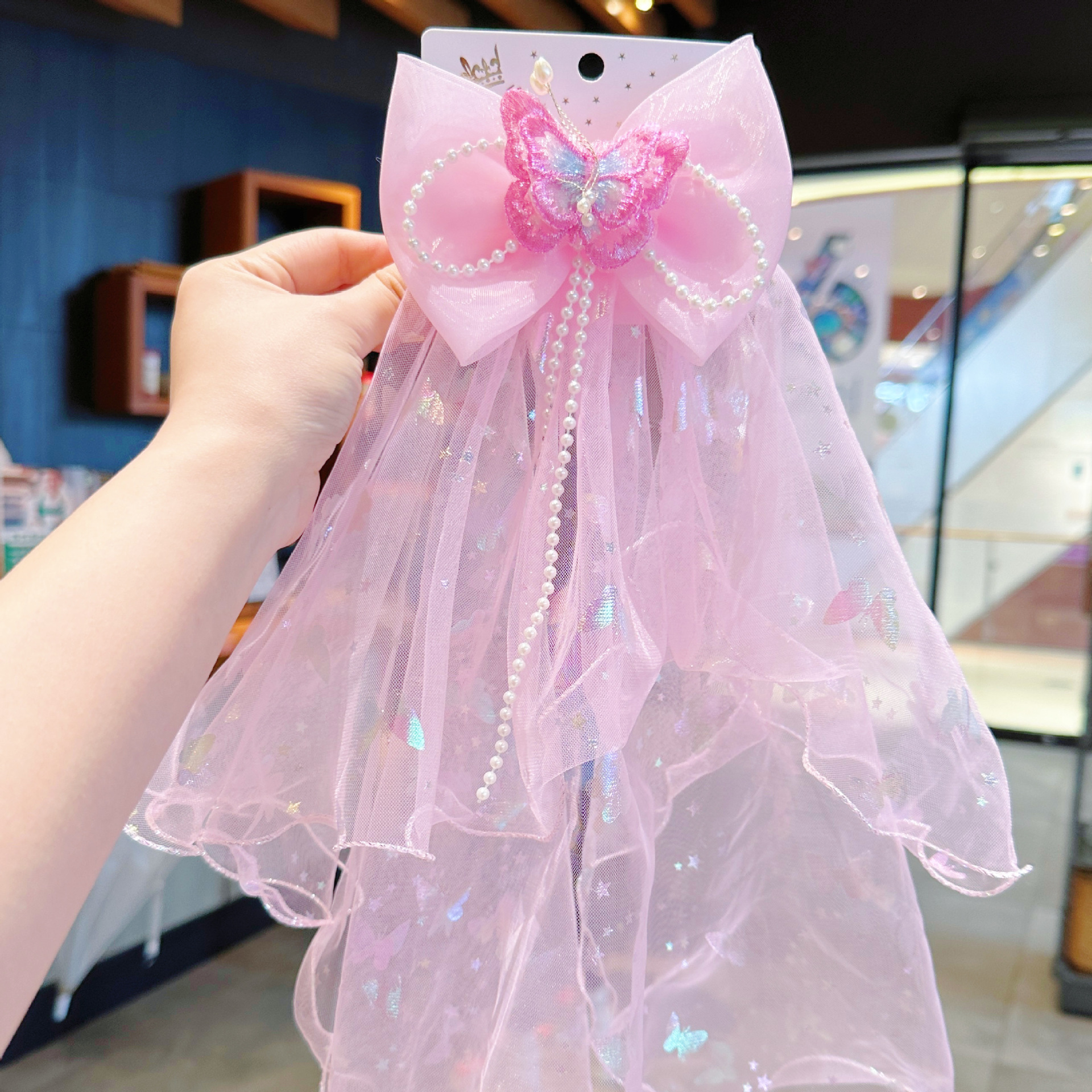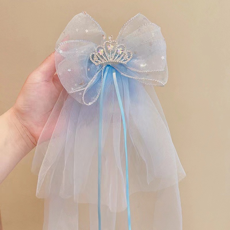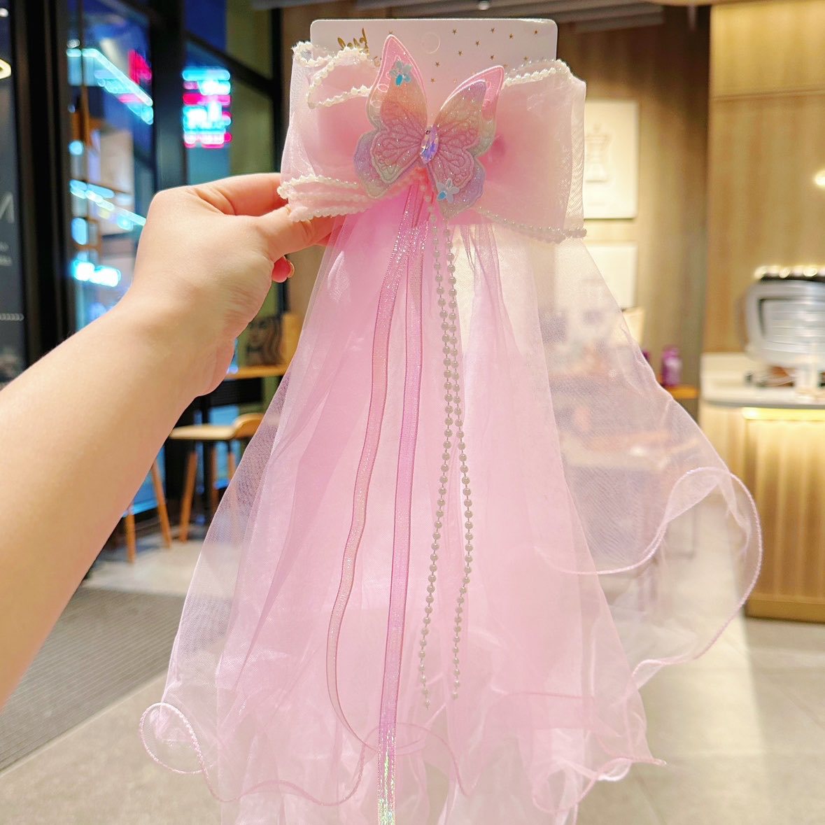 冰雪奇缘艾莎公主蝴蝶结超仙头纱儿童发夹精致可爱手工女儿童发饰