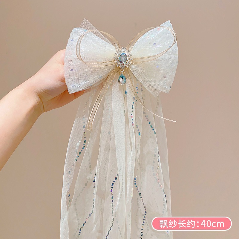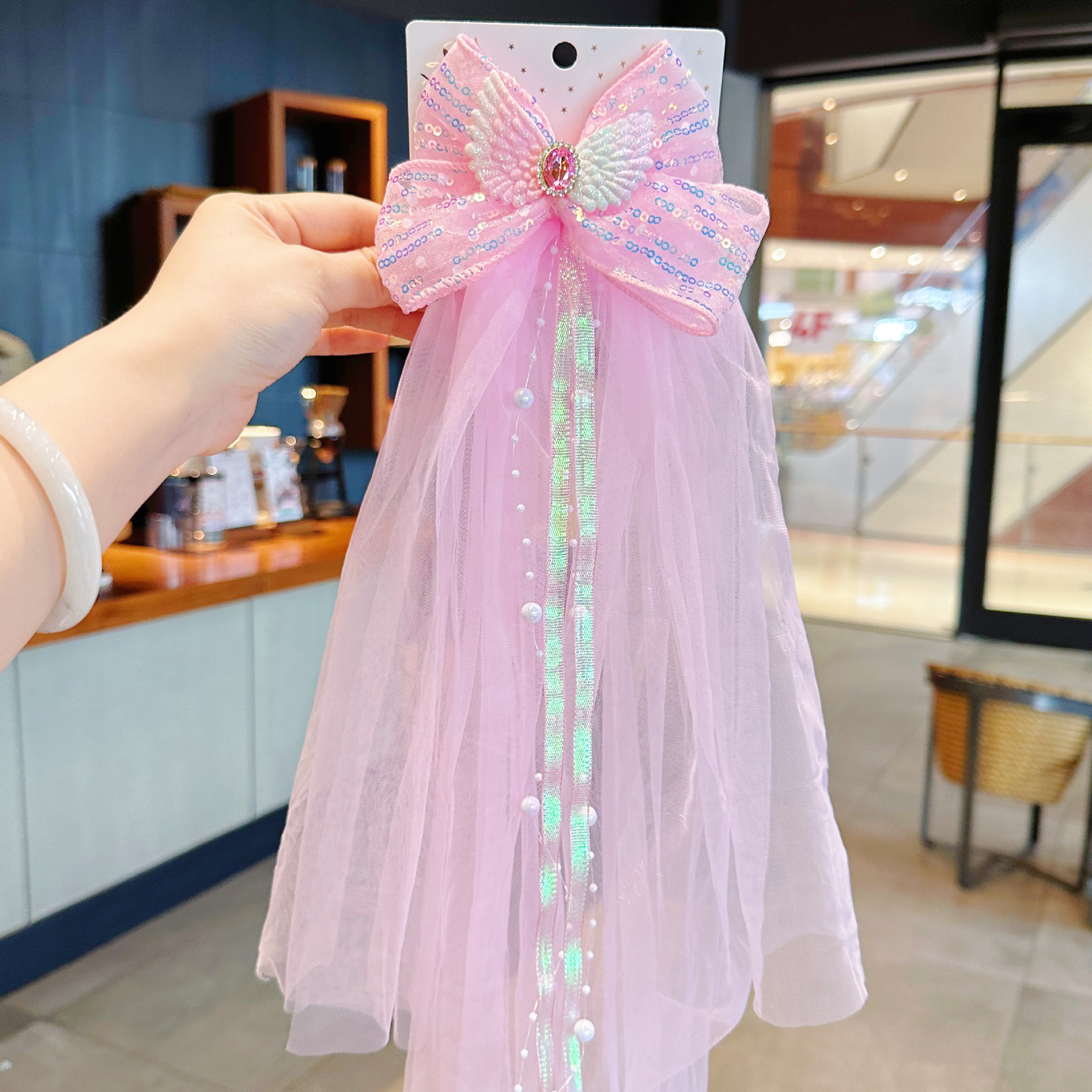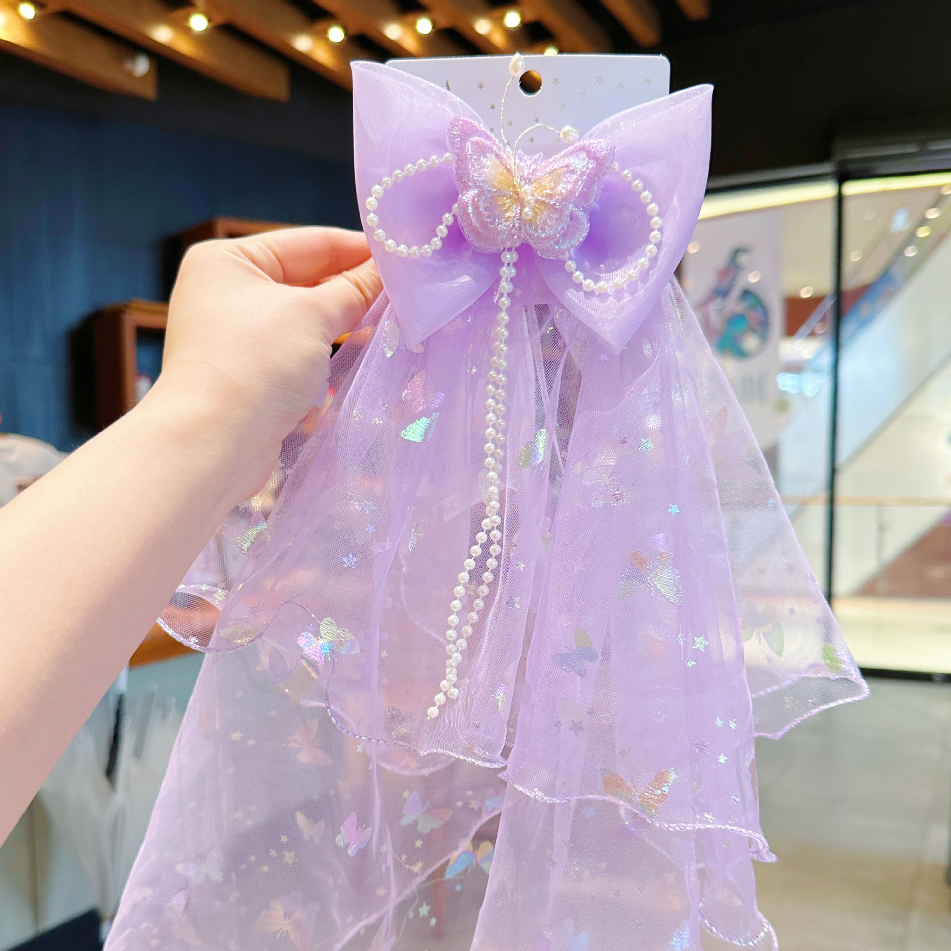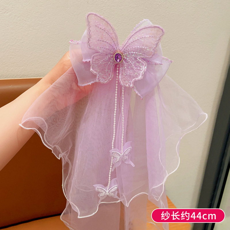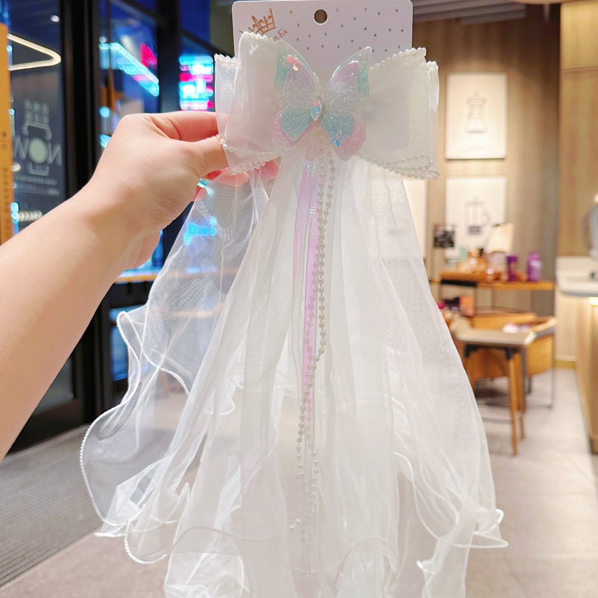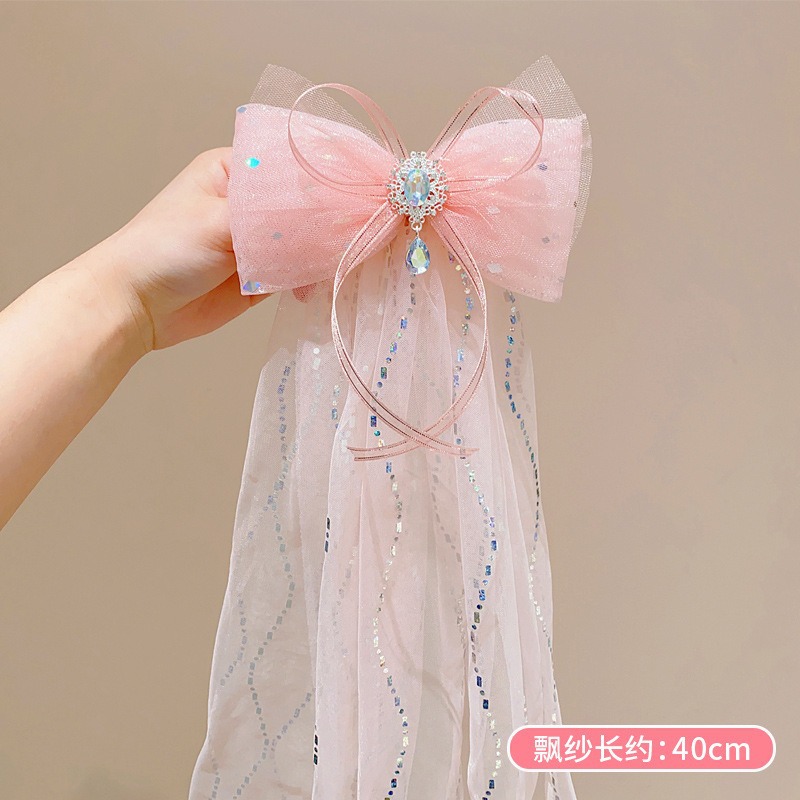 冰雪奇缘艾莎公主蝴蝶结超仙头纱儿童发夹精致可爱手工女儿童发饰