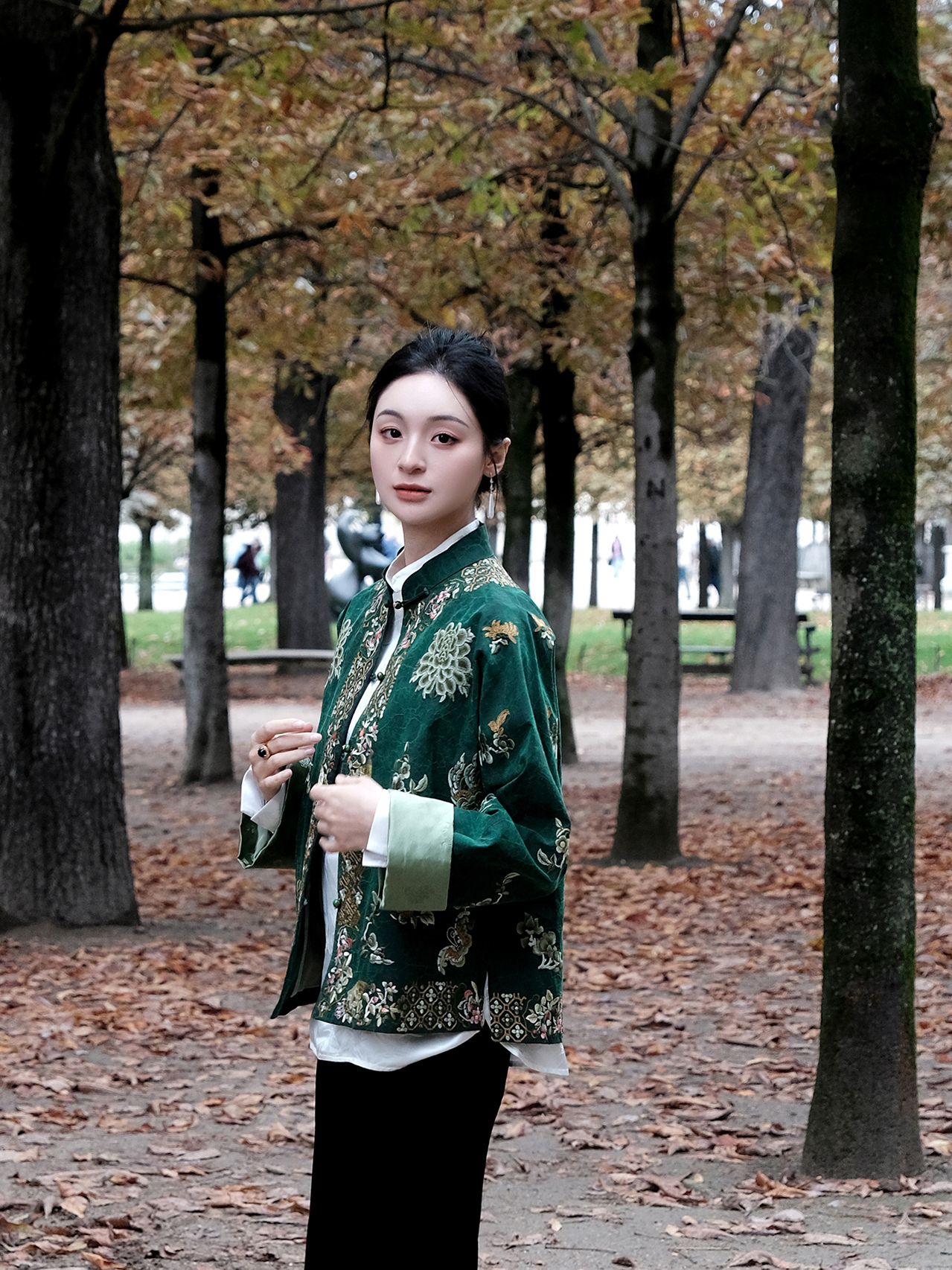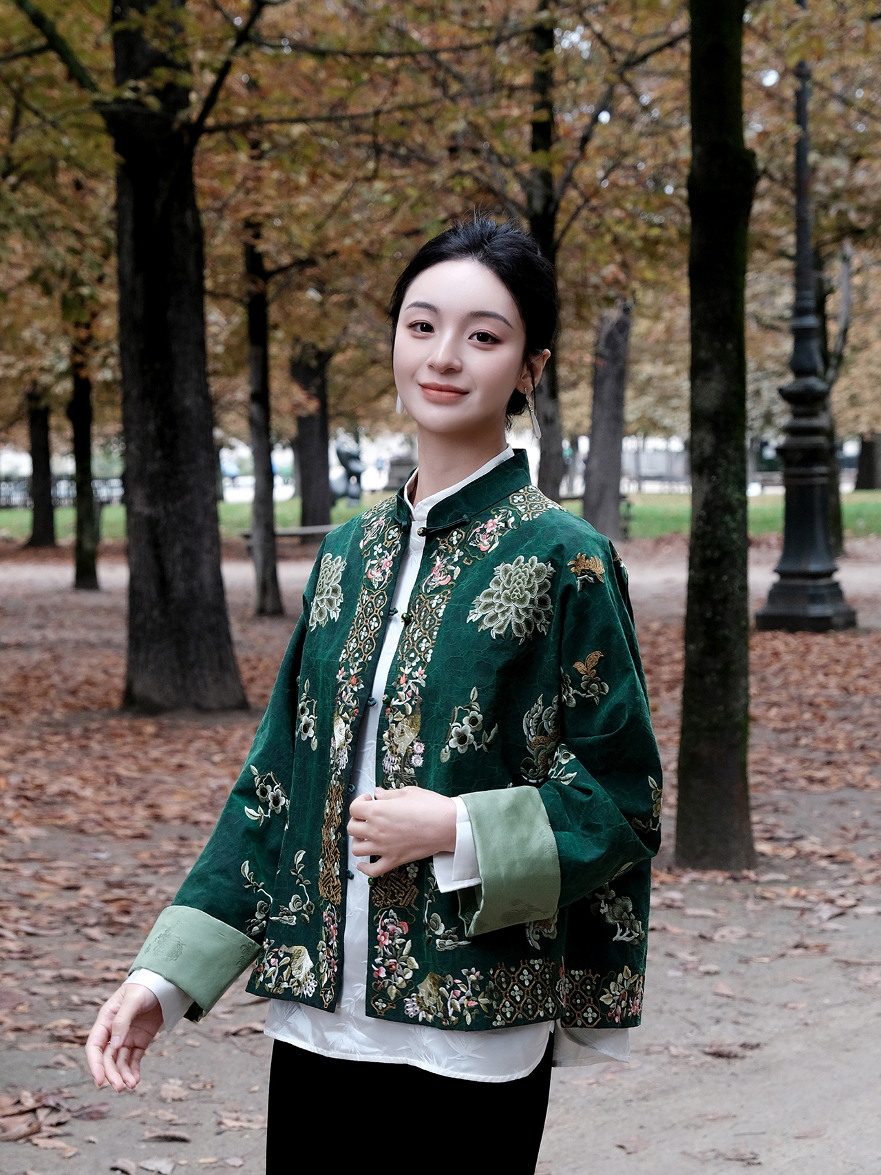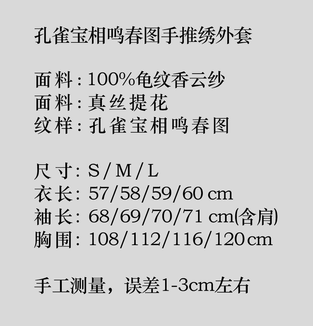 盛唐牡丹| 孔雀宝相鸣春图手推绣外套(限量款-售完不补)