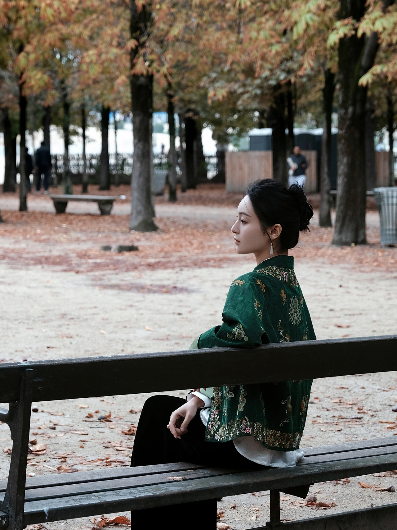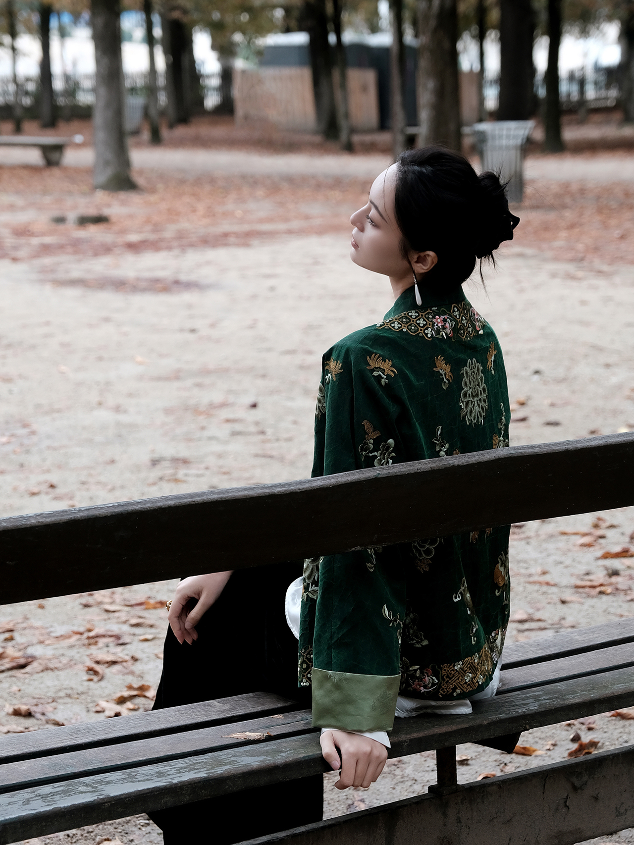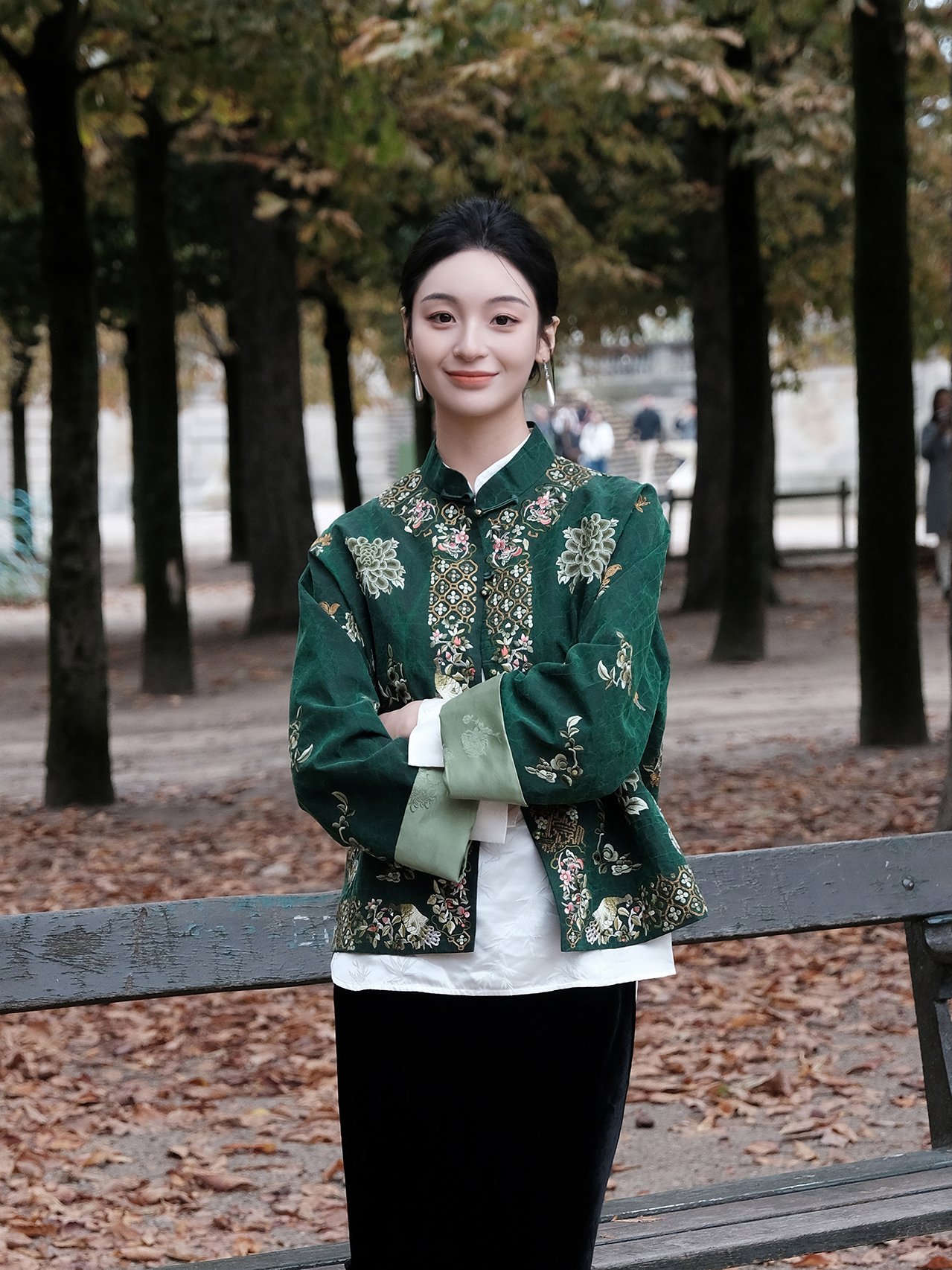 盛唐牡丹| 孔雀宝相鸣春图手推绣外套(限量款-售完不补)