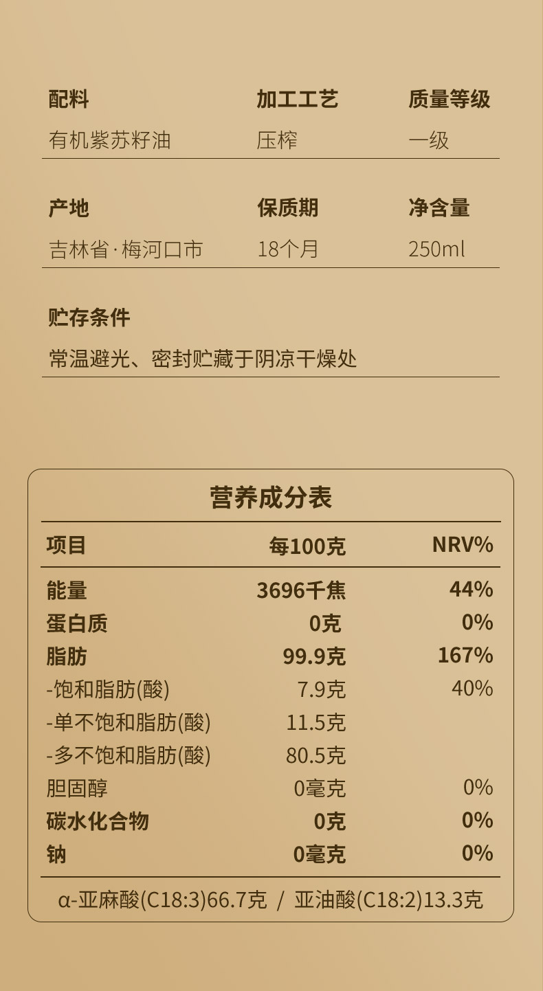 妆食记 有机紫苏籽油250mL