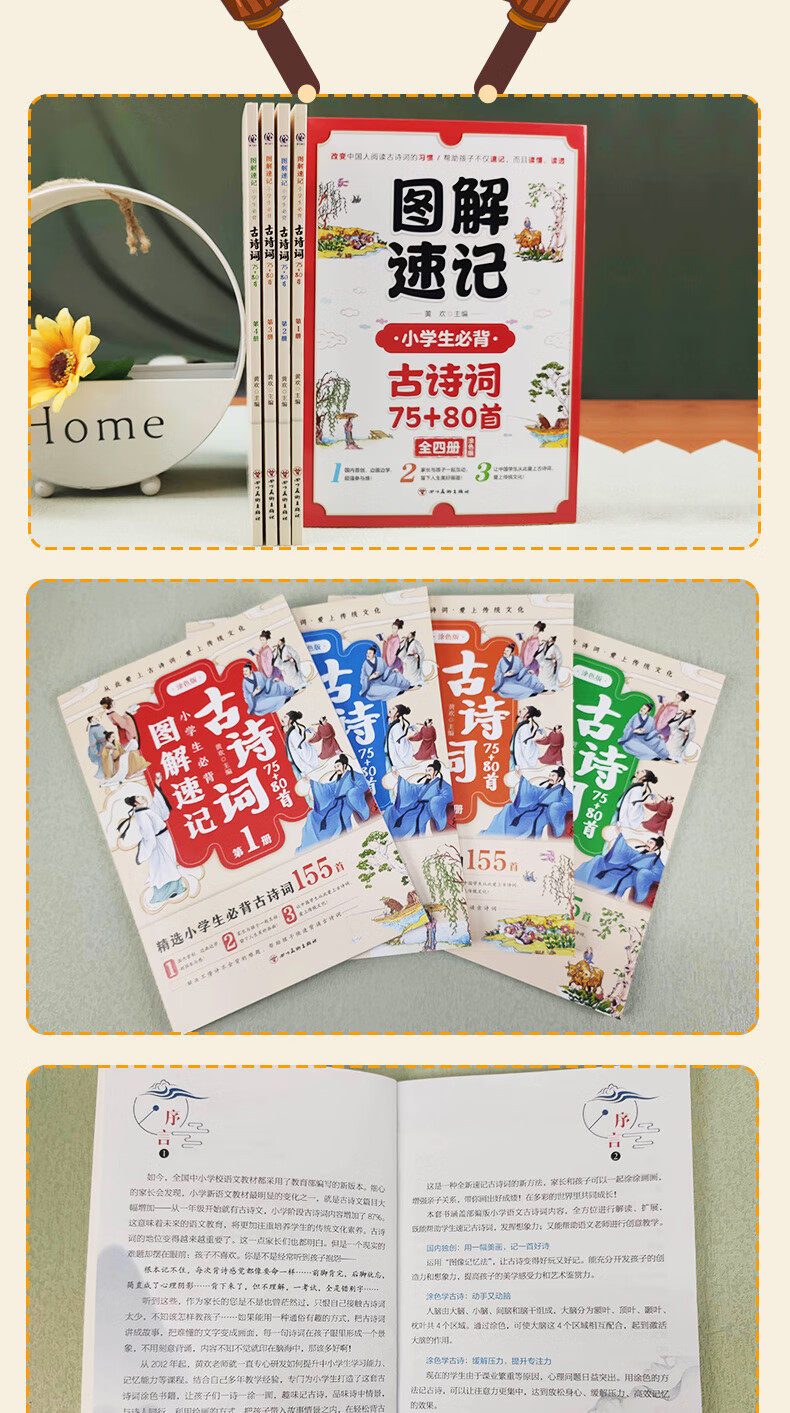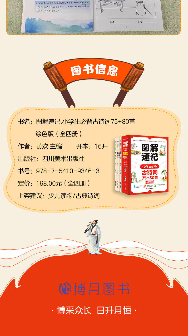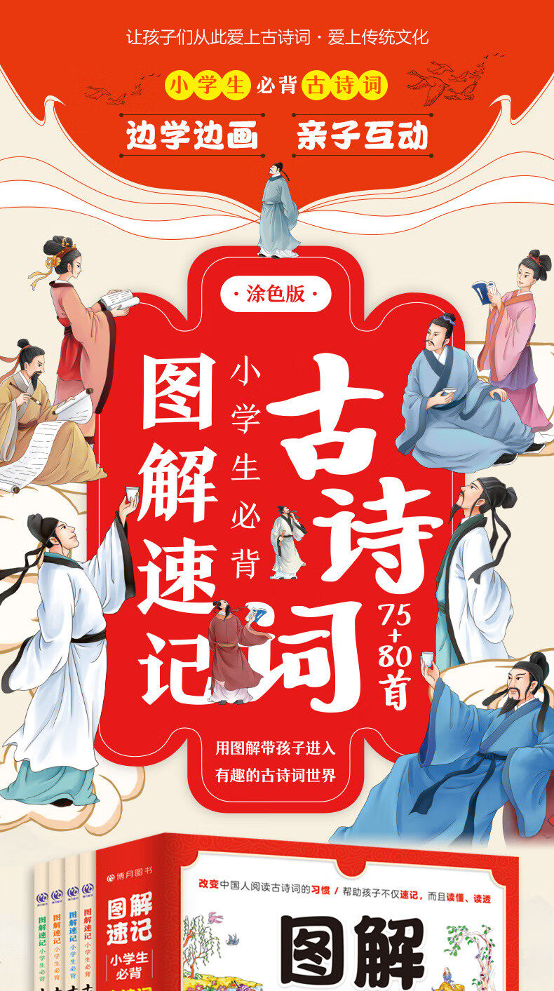 图解速记小学生必背古诗词75首十80首1-6年级通用版 古诗词小学生必背75首加80首人教版129首169首漫画版小学必背古诗词注音版