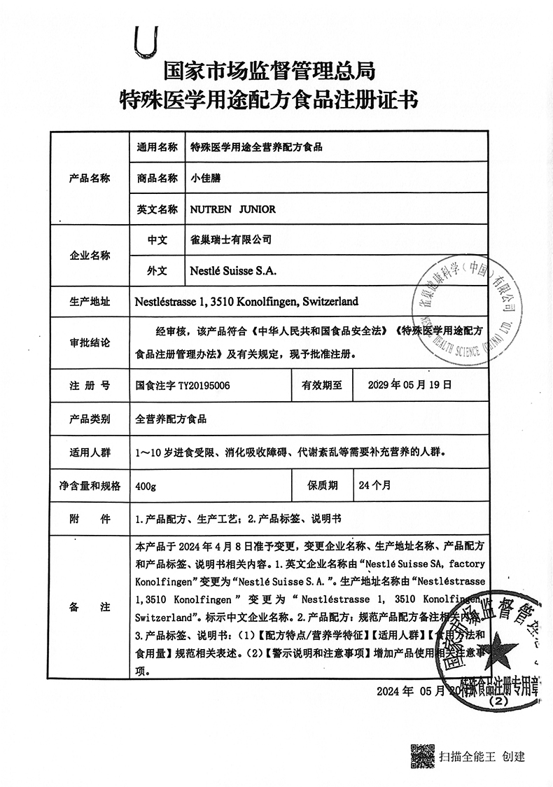 雀巢小佳膳特殊医学用途全营养配方粉400g(1-10岁)