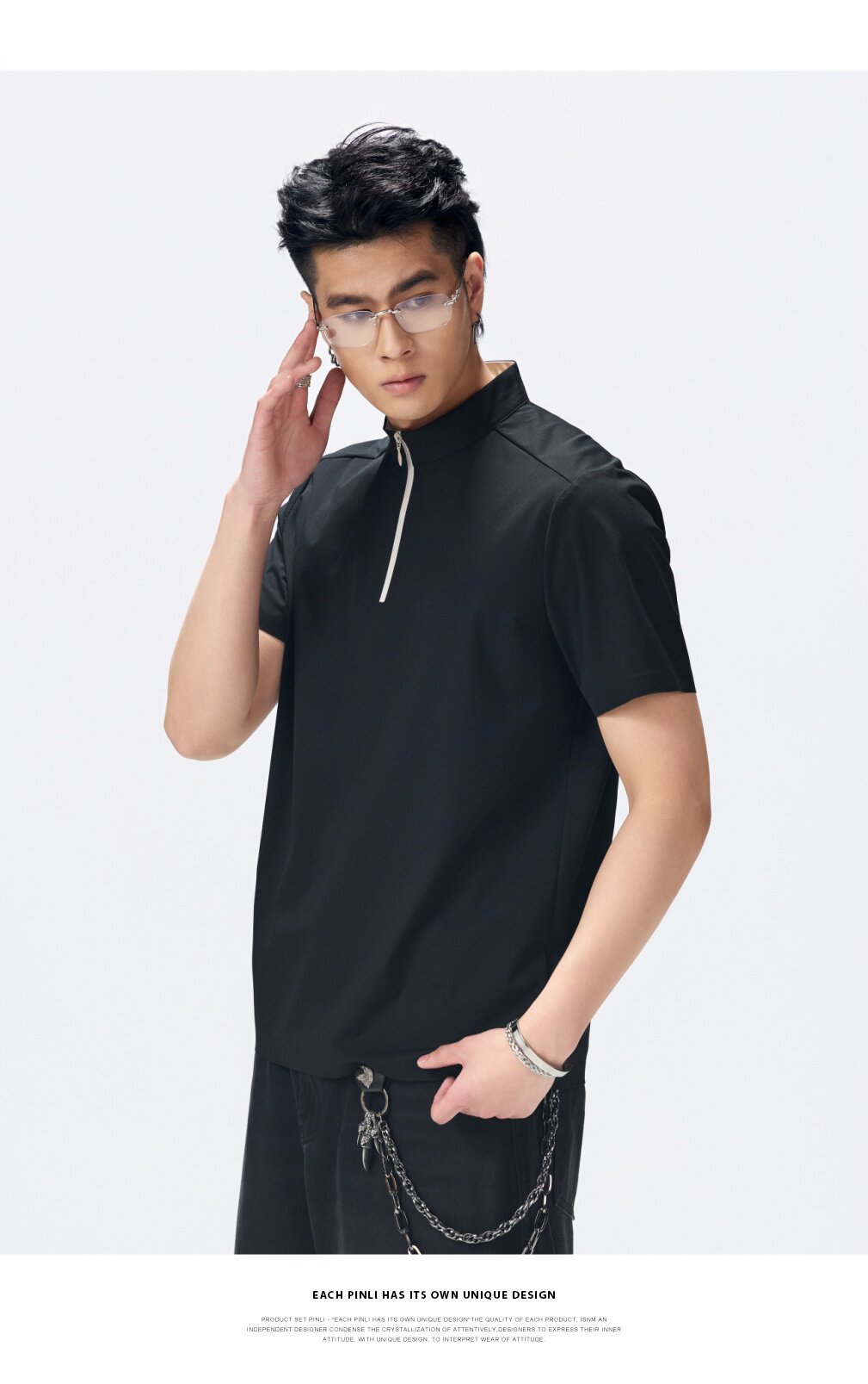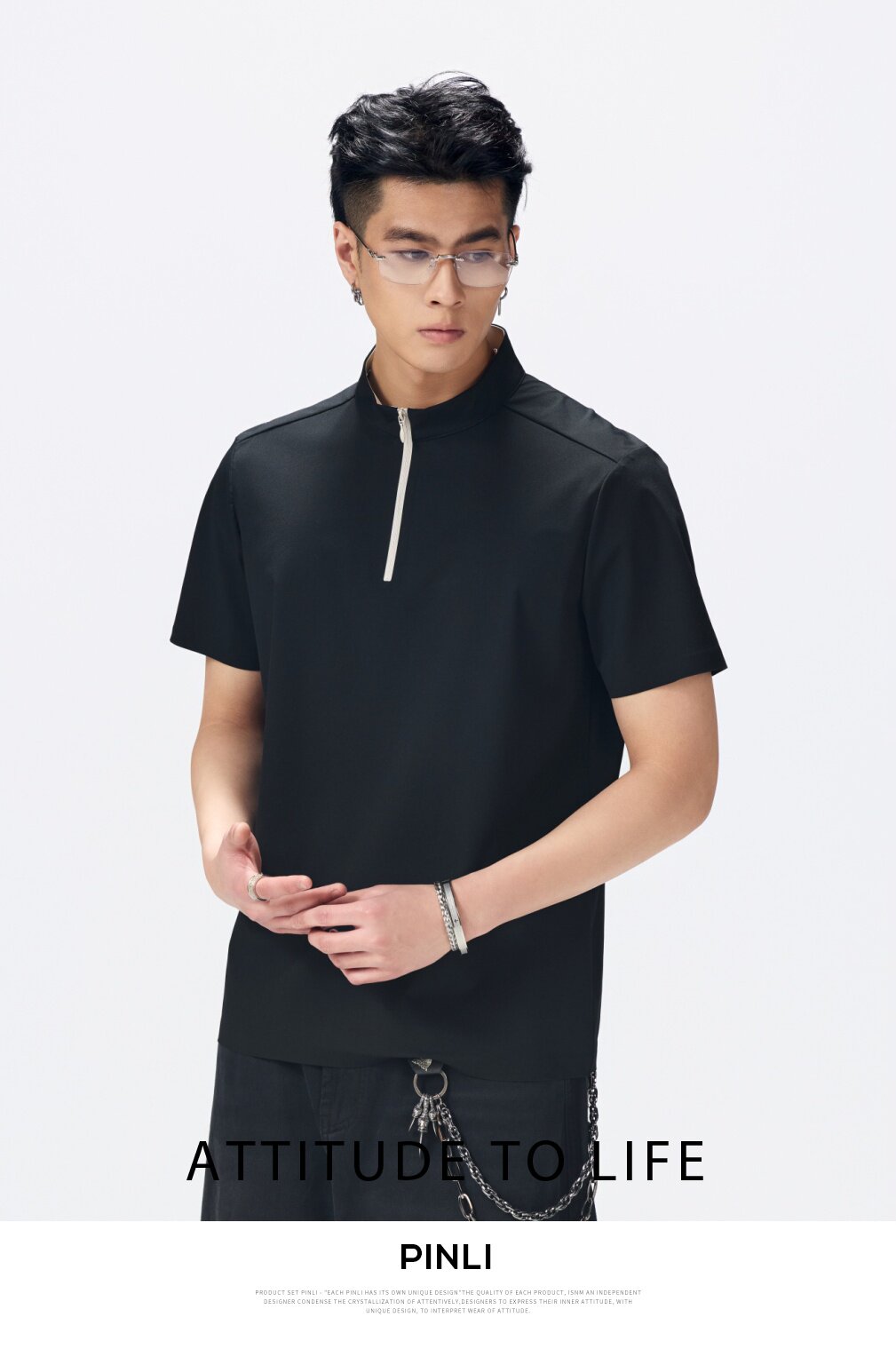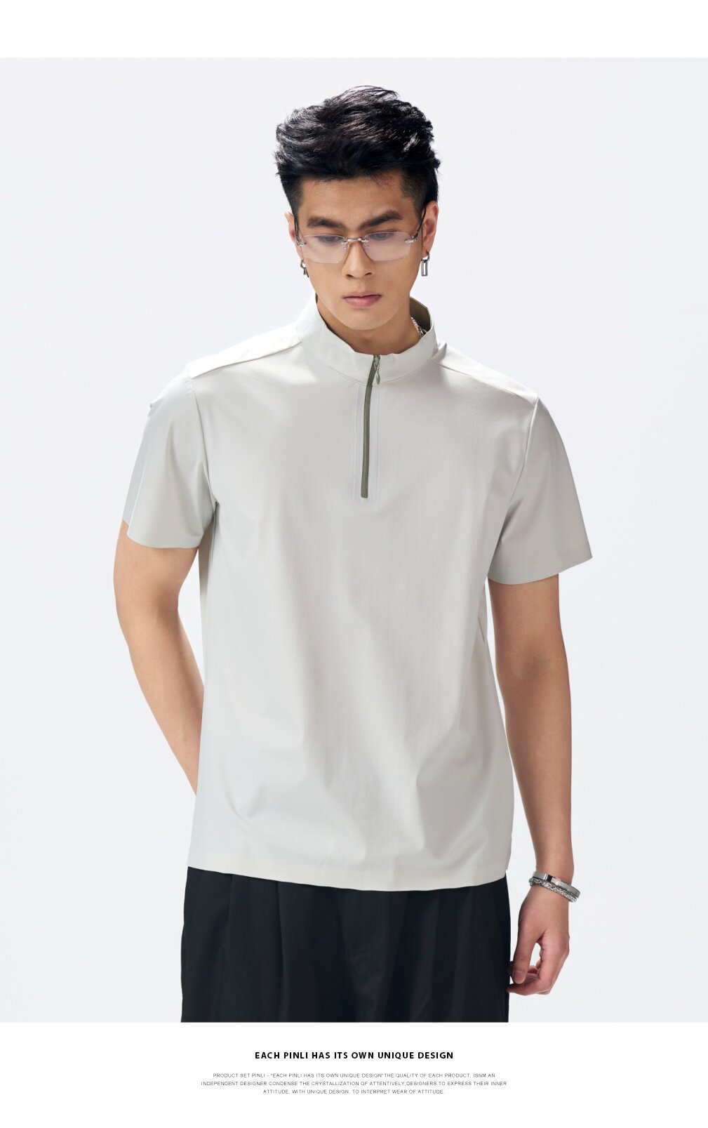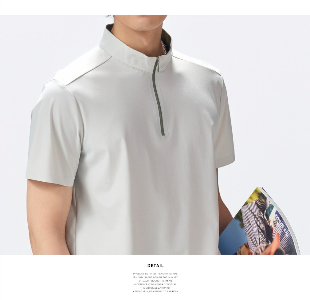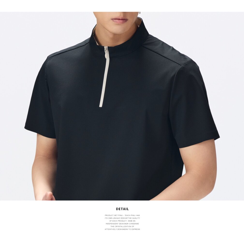 PINLI品立2026夏季新款男士拉链立领纯色短袖POLO衫上衣体恤潮牌GD262112052