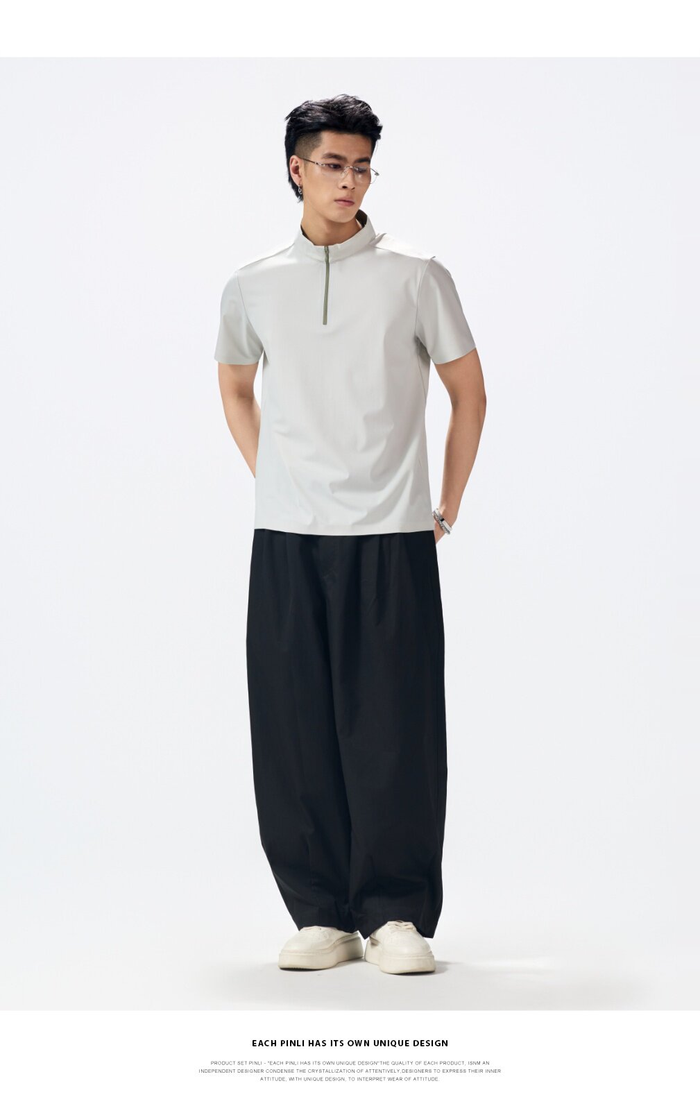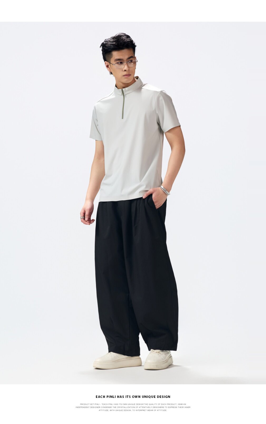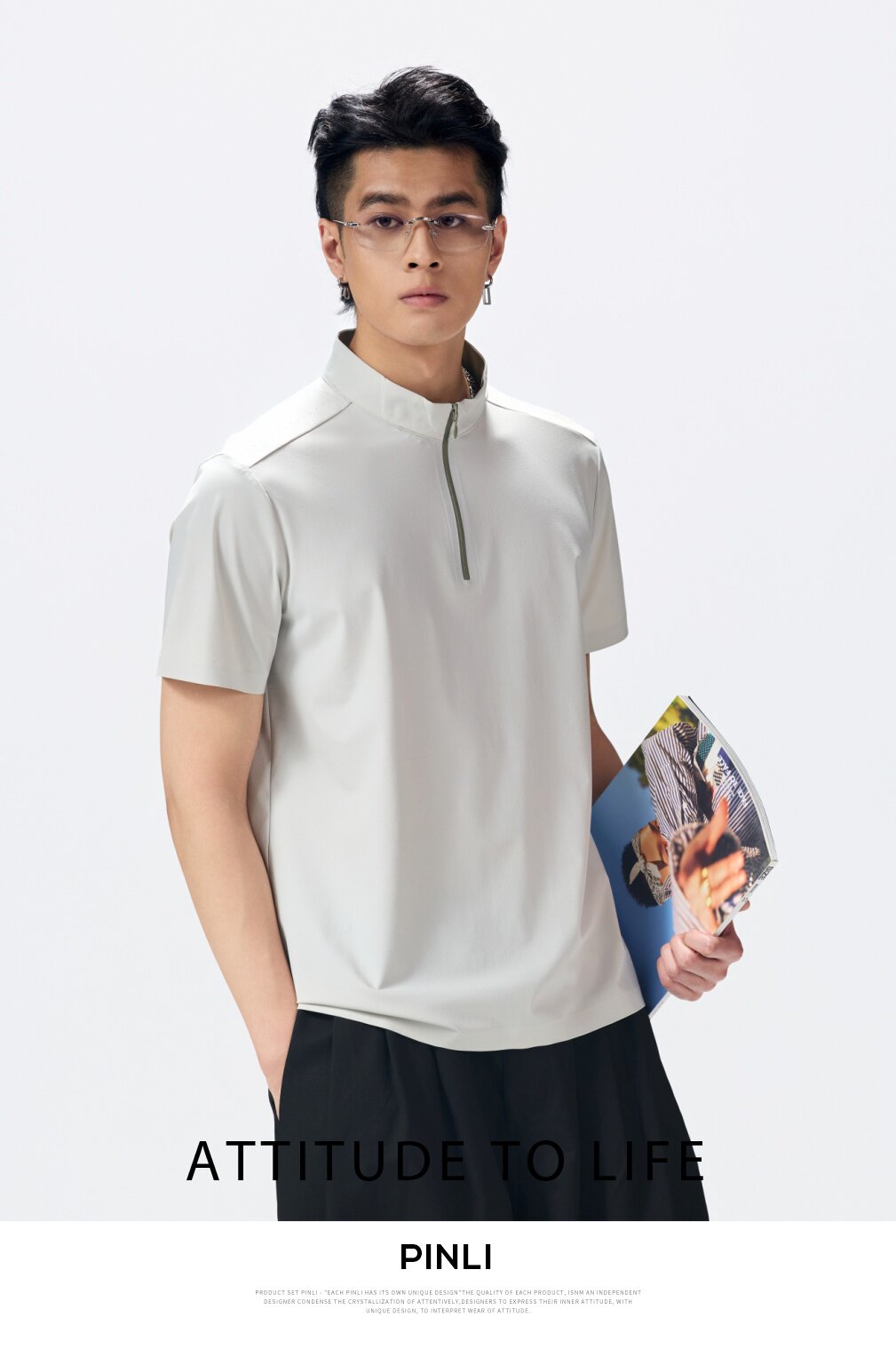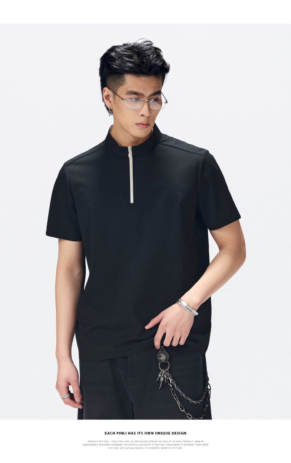 PINLI品立2026夏季新款男士拉链立领纯色短袖POLO衫上衣体恤潮牌GD262112052