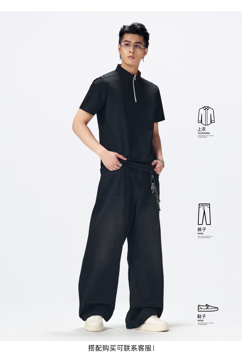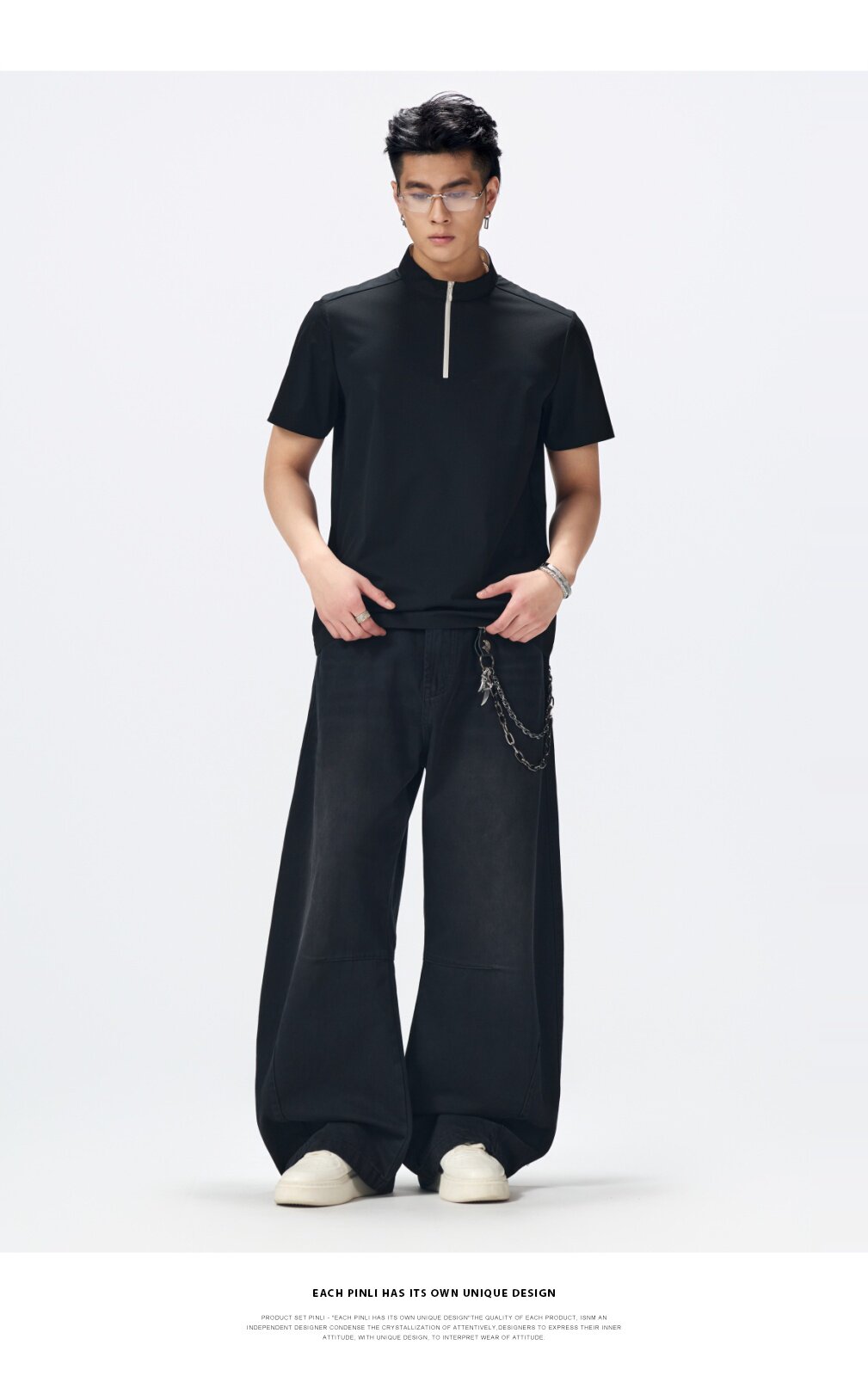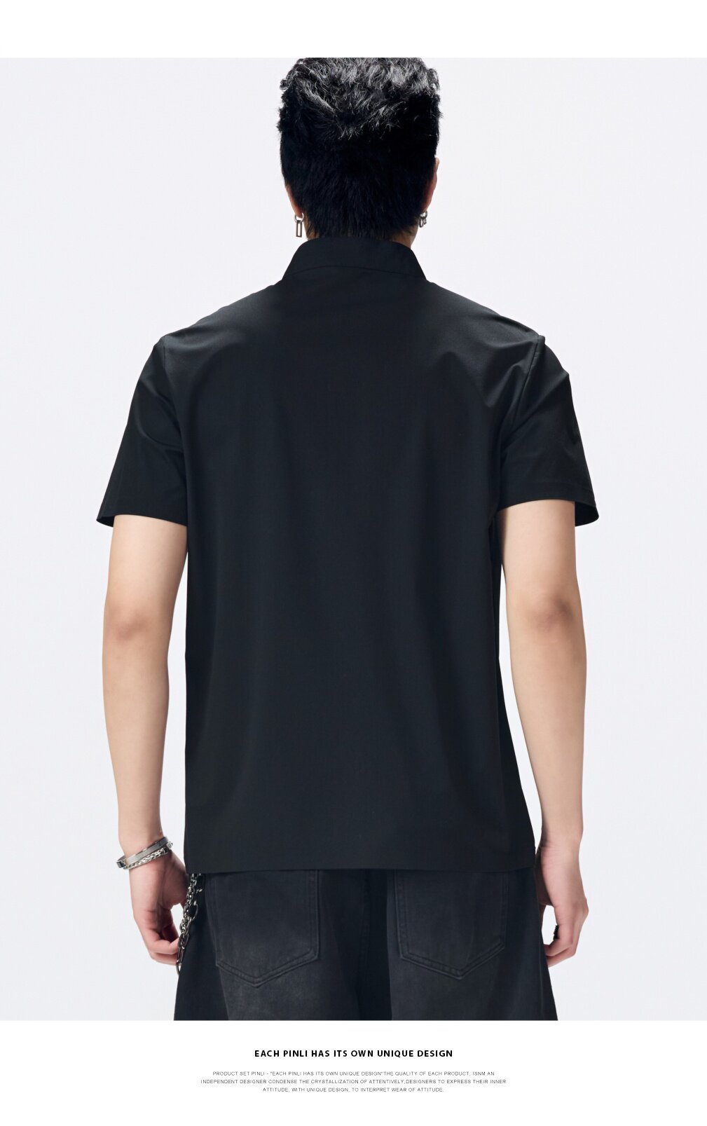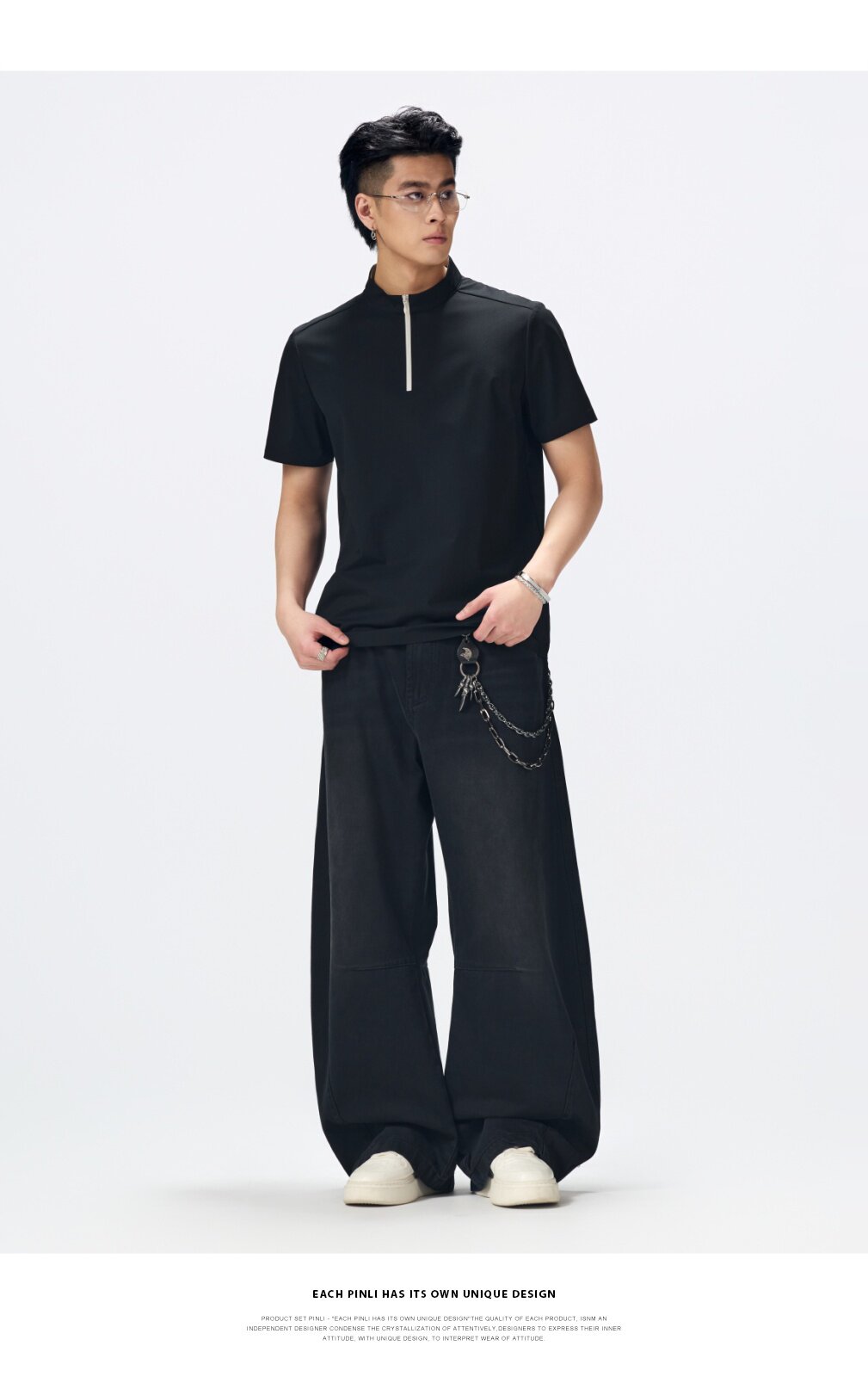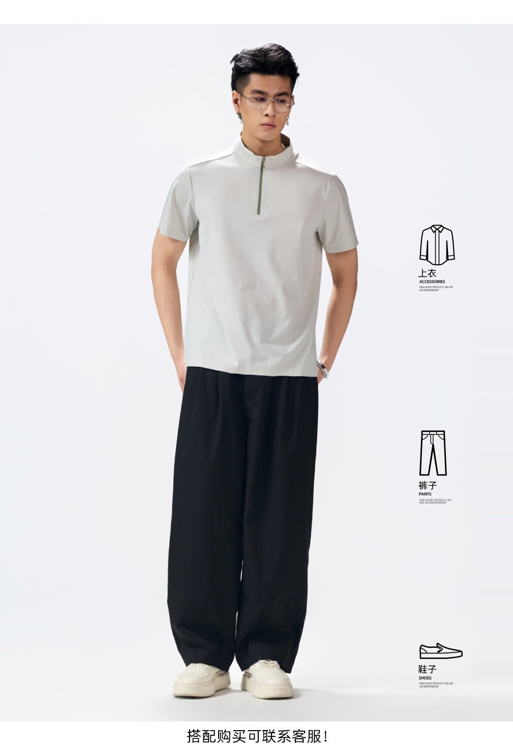 PINLI品立2026夏季新款男士拉链立领纯色短袖POLO衫上衣体恤潮牌GD262112052