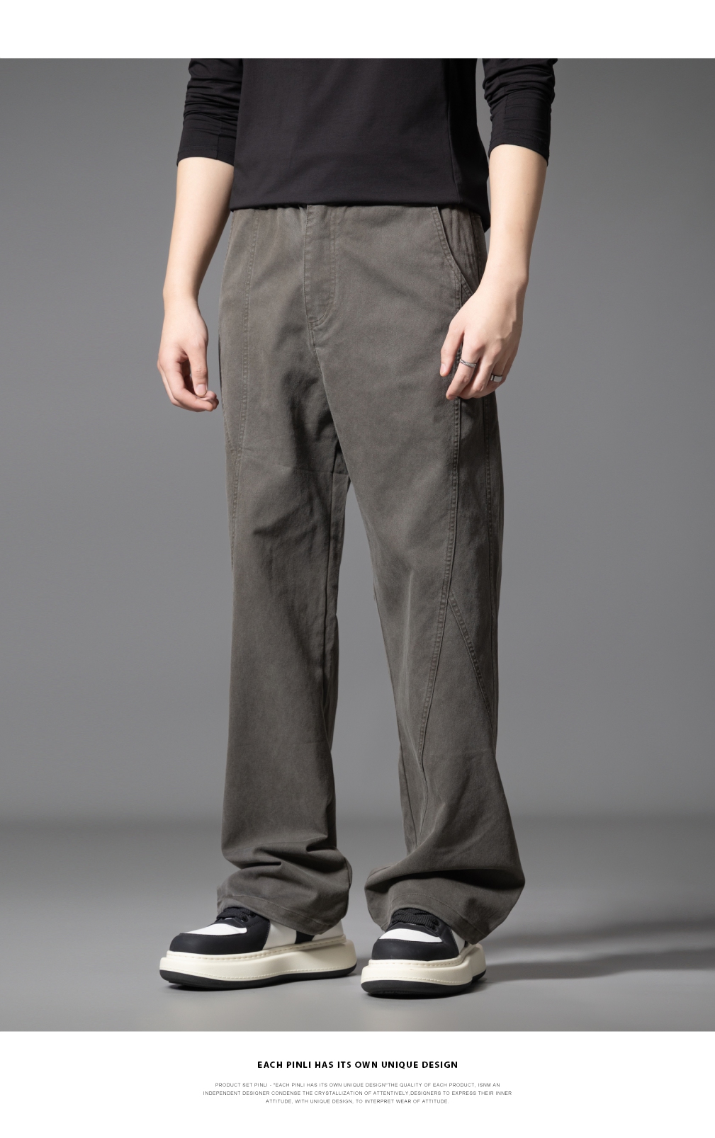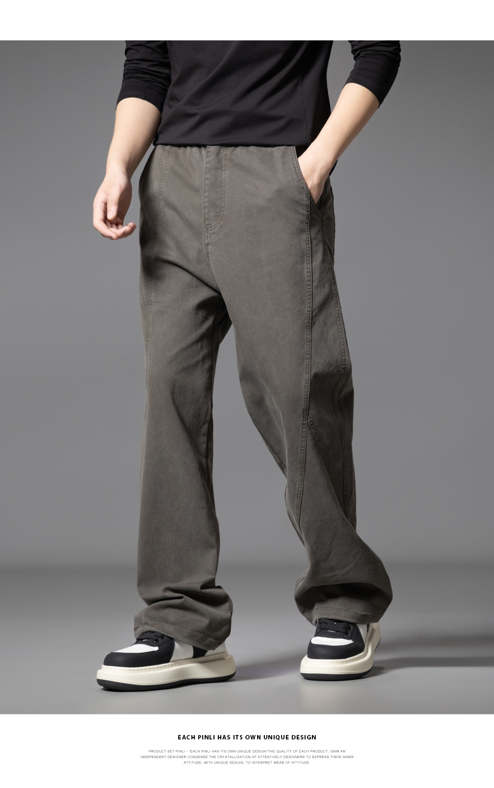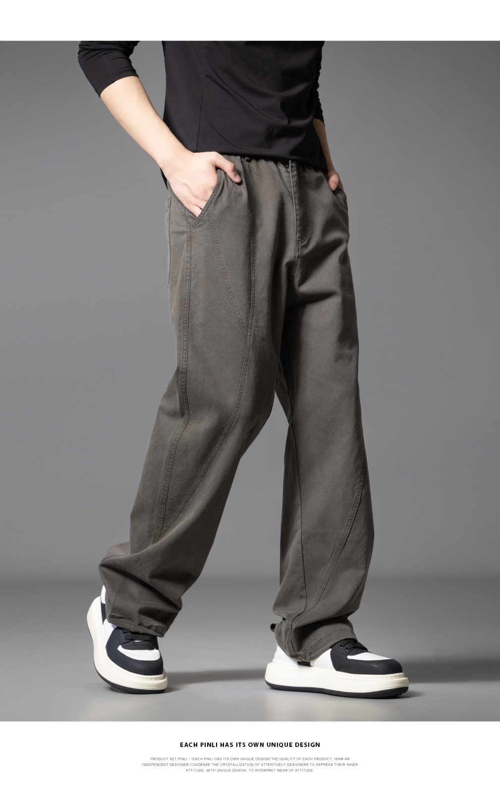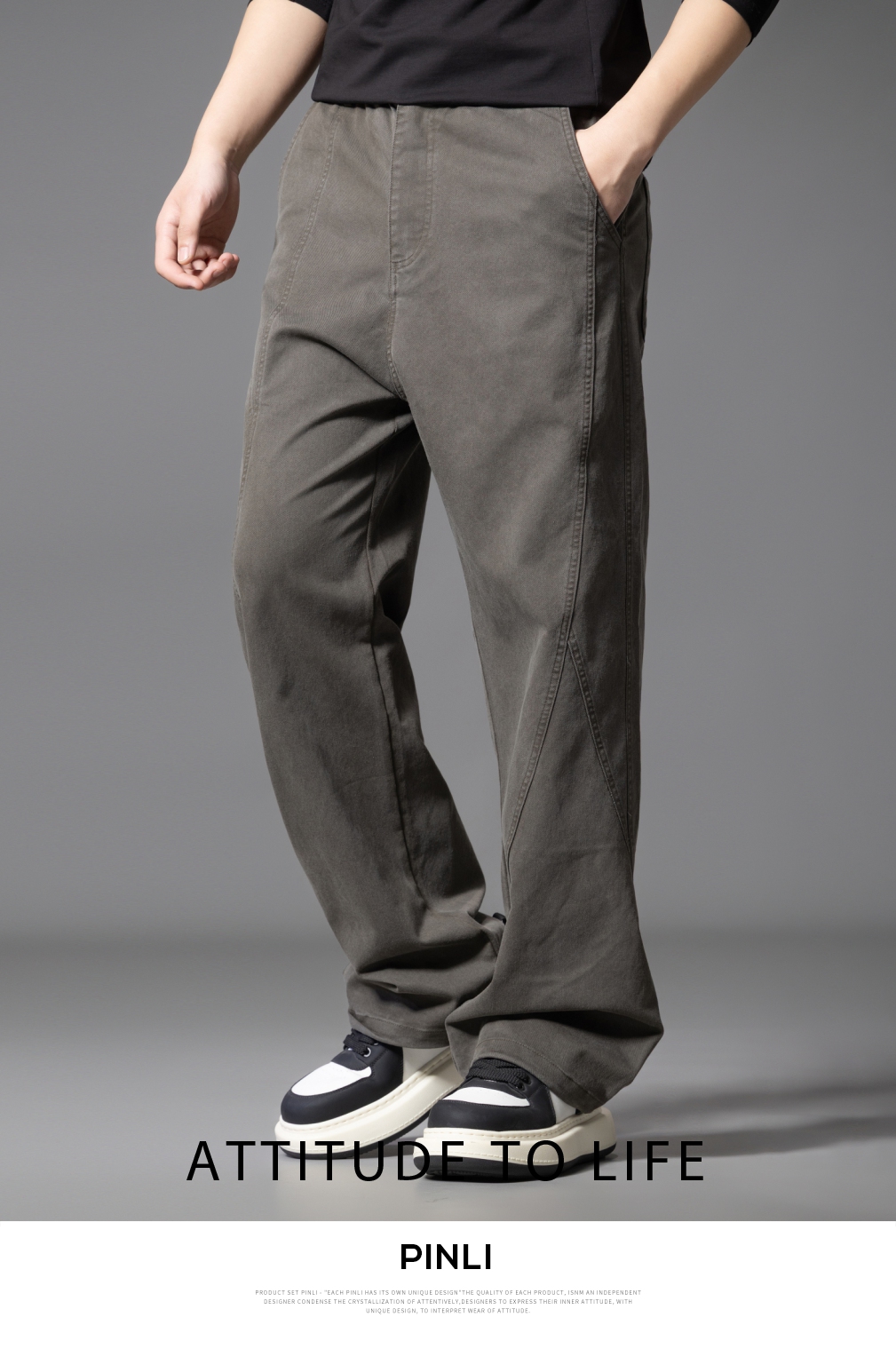 PINLI品立2025秋季新款宽松直筒休闲长裤男士纯色百搭潮流弯刀裤GD253117010