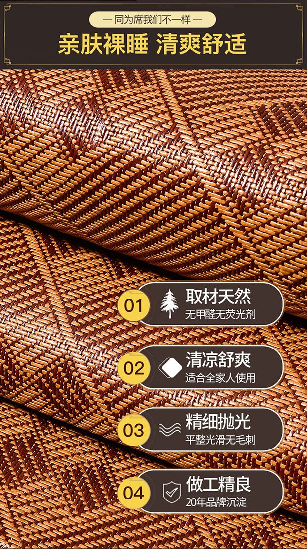 高档加厚藤席1.8米2米床软凉席家用双面冰丝席