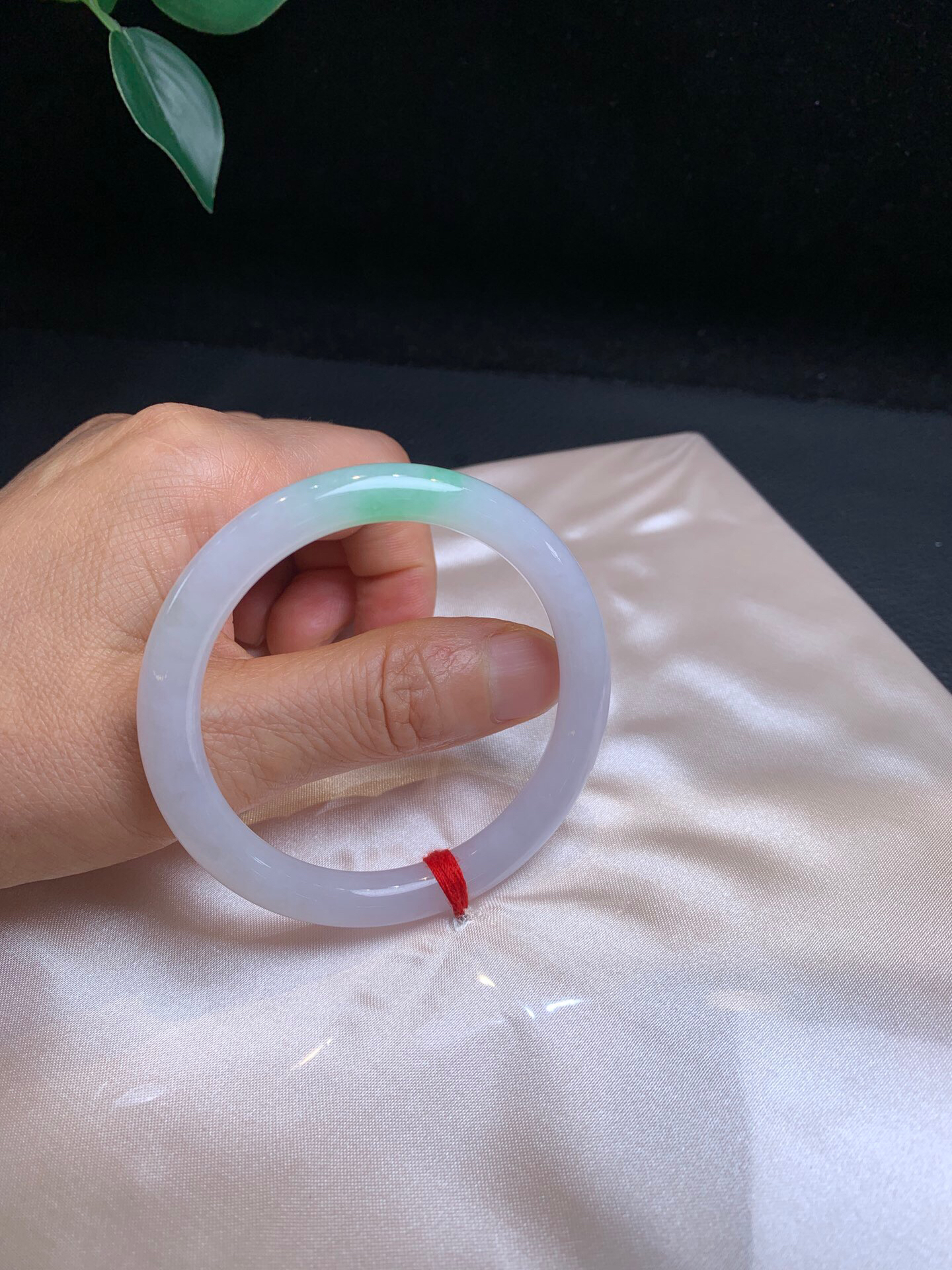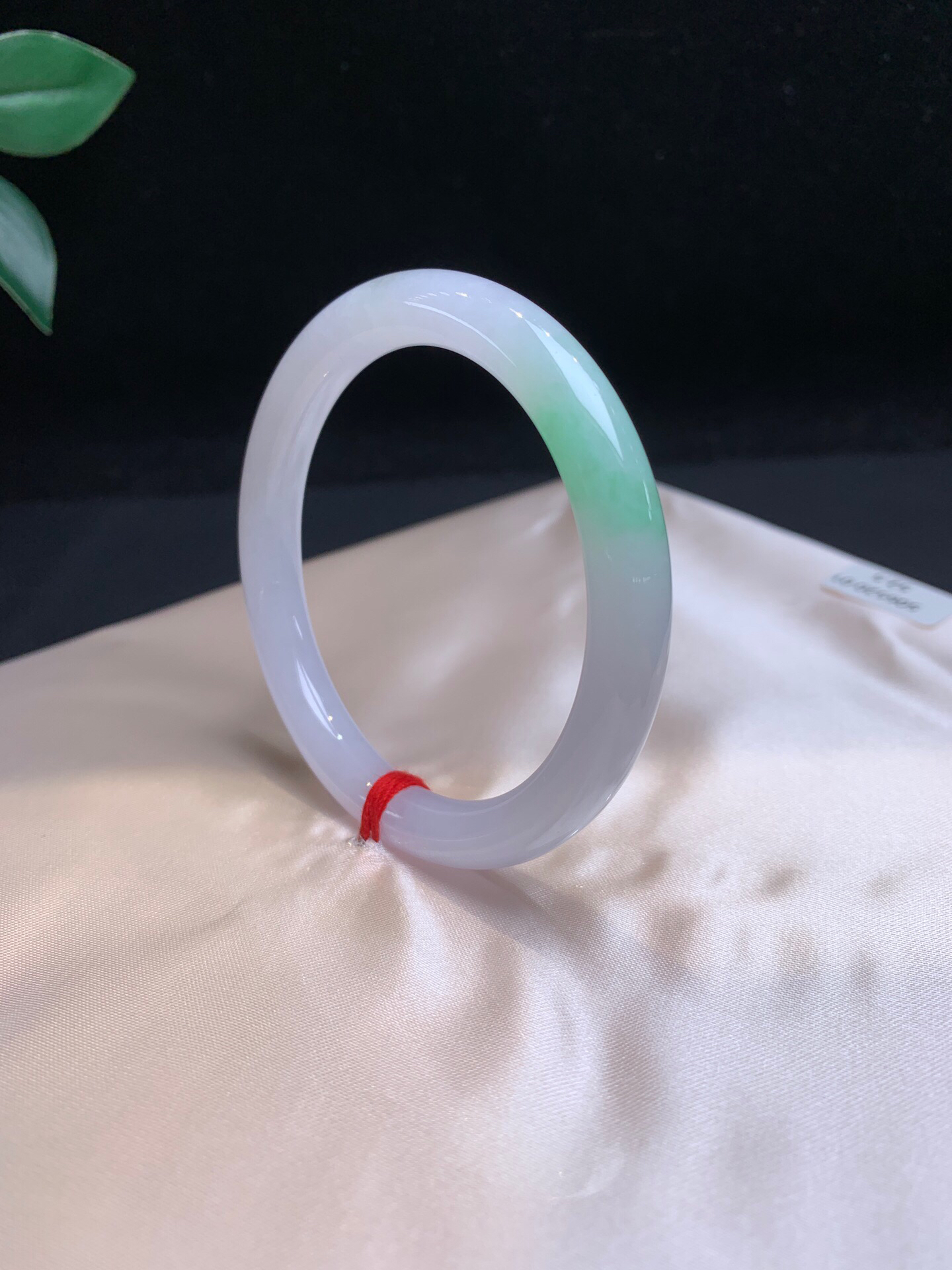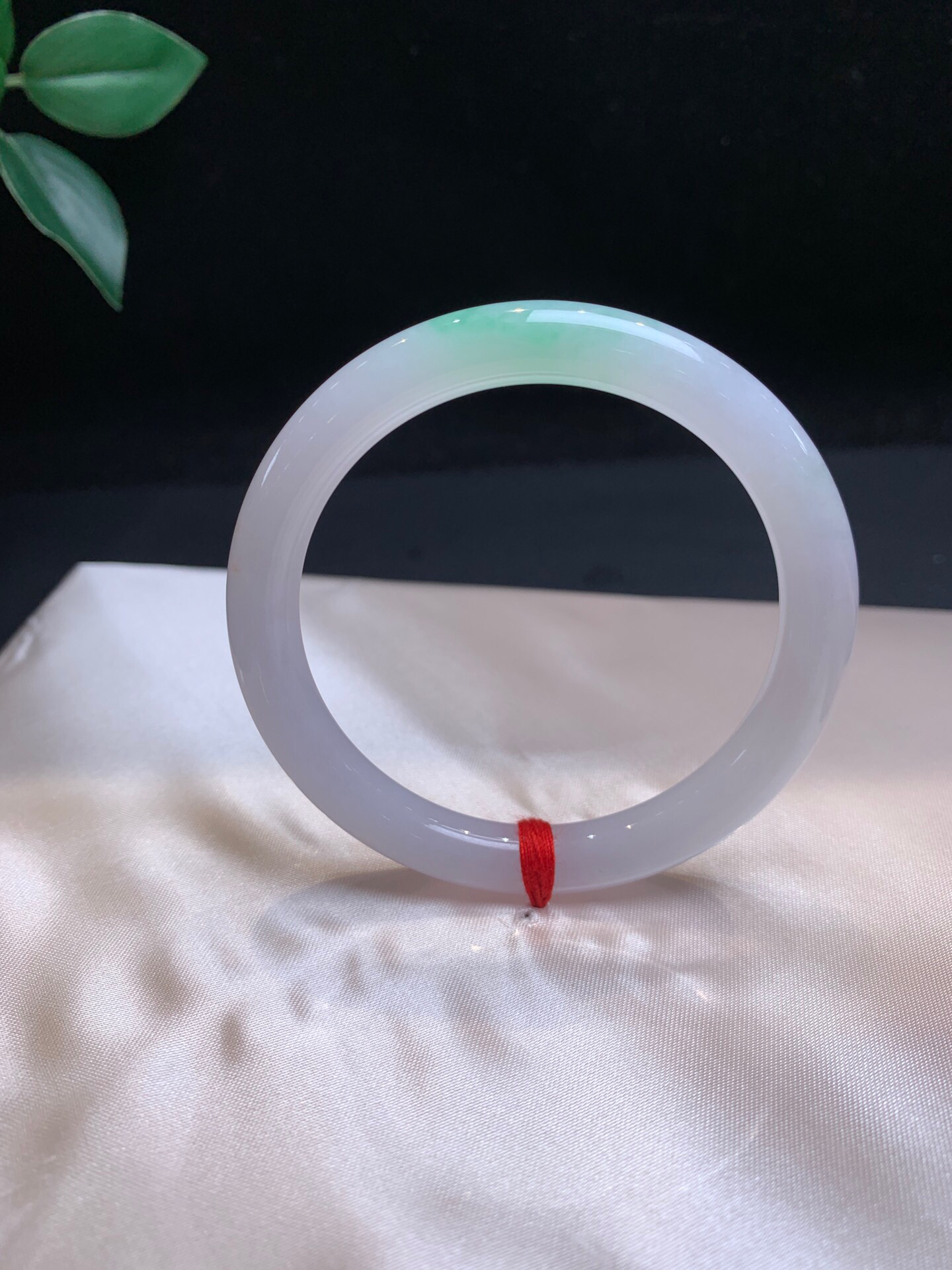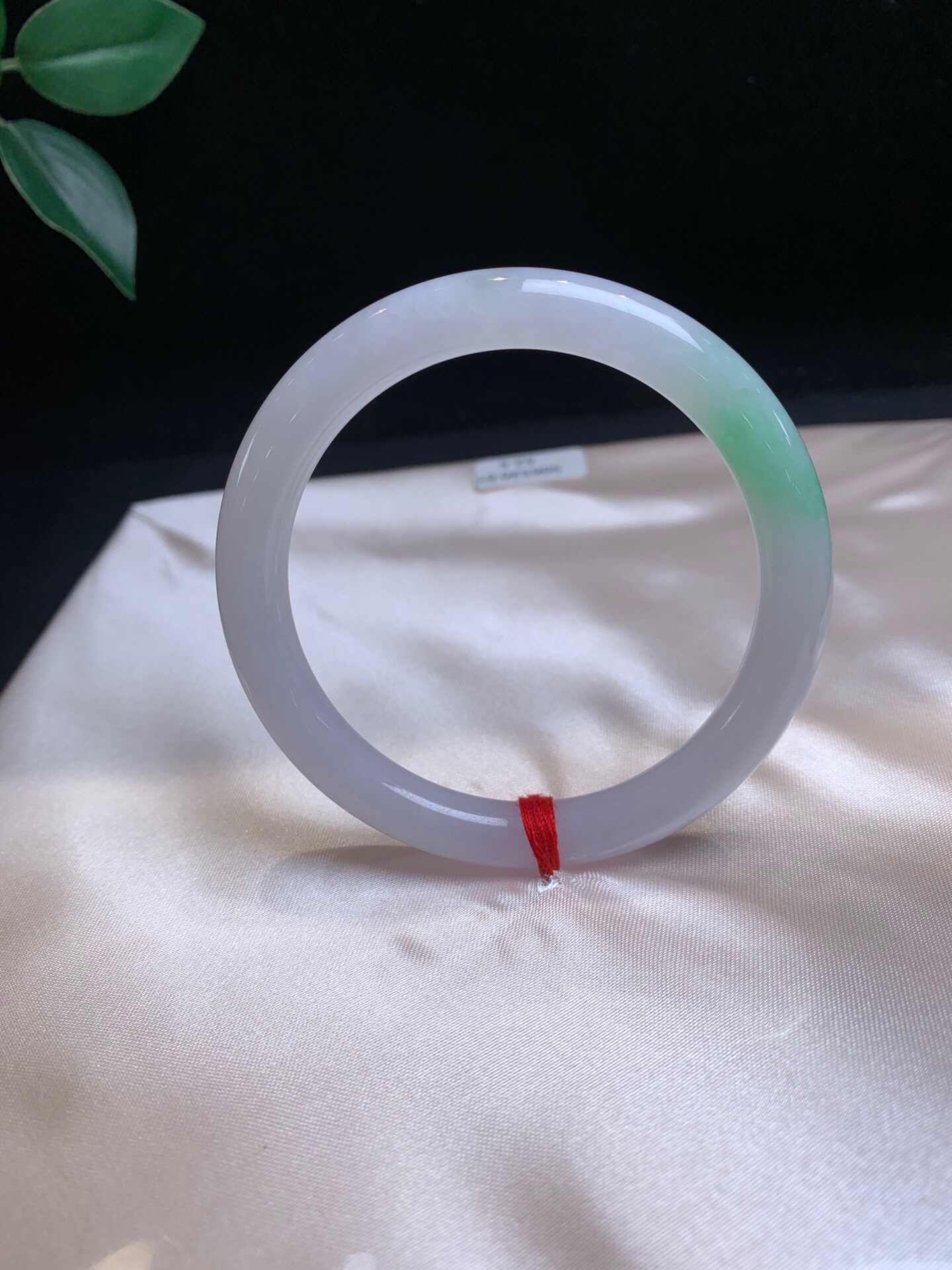 620726,56.3飘绿圆条手镯。12.5mm,条形好,整条带浅绿底,干净清爽,完美的