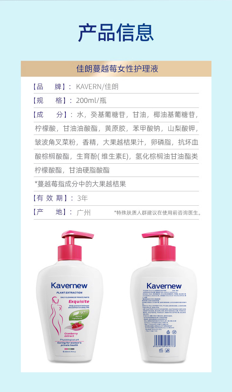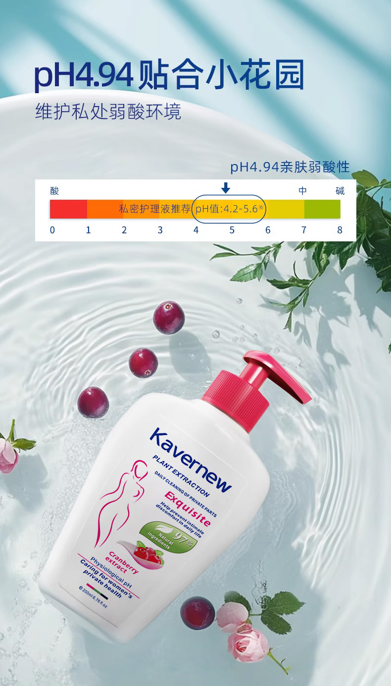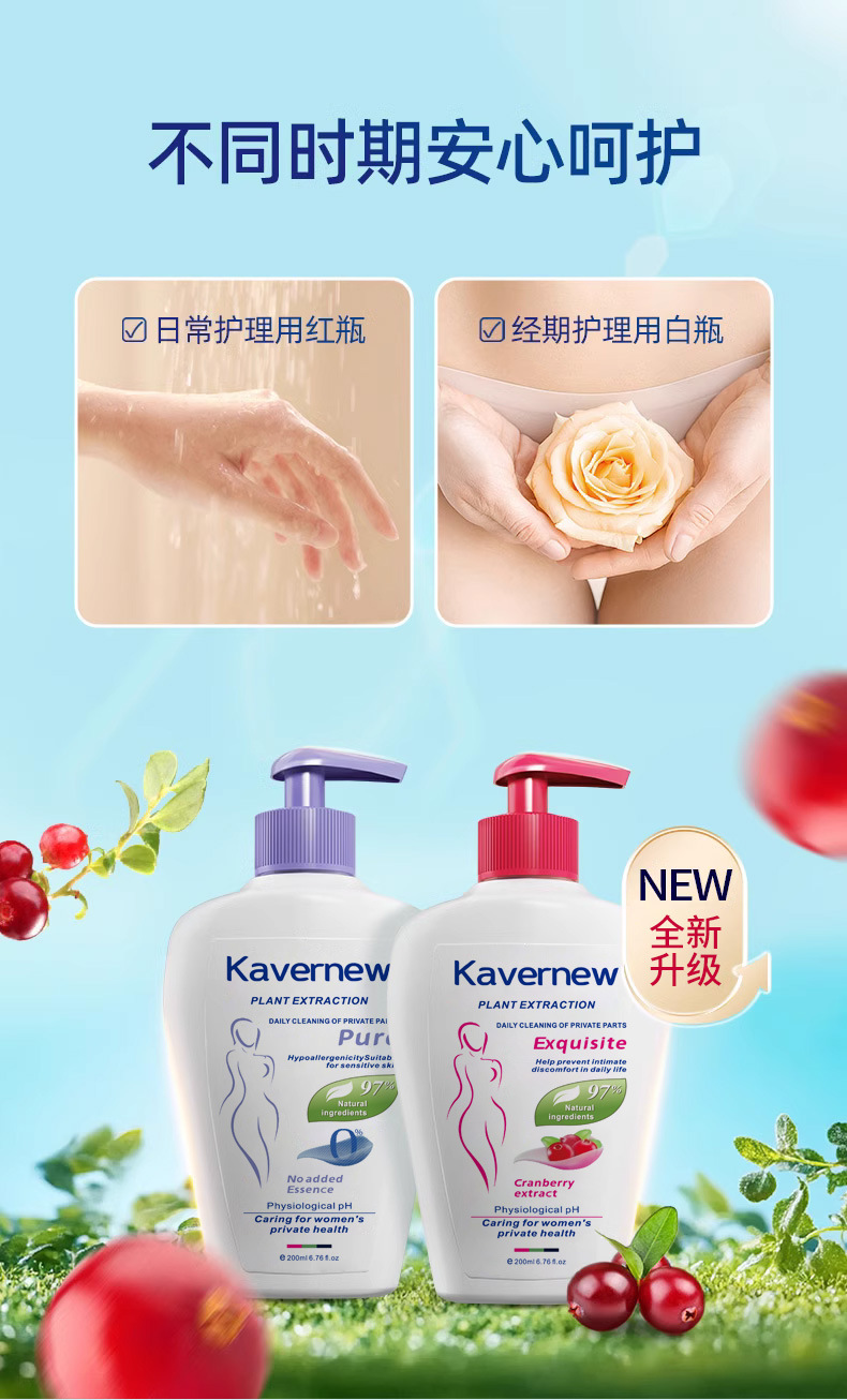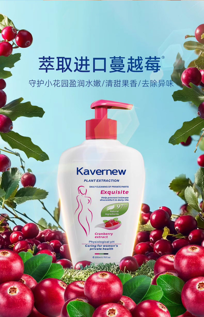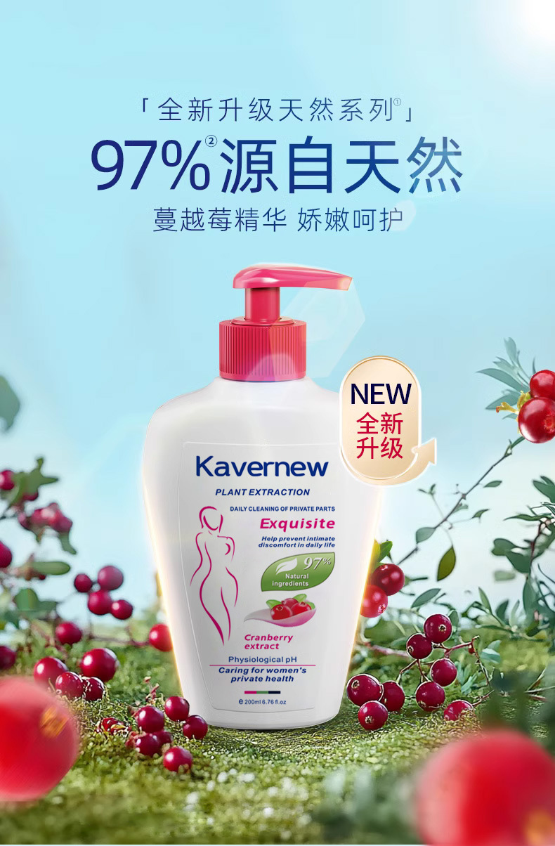 【蔓越莓精华,娇嫩呵护!】中国 Kavernew女士私处洗护液 清洁去味抑菌 蔓越莓香