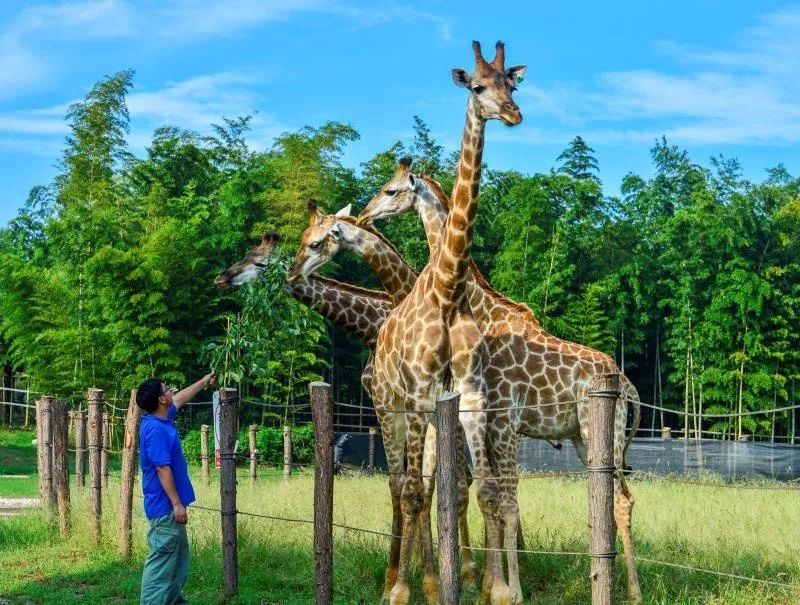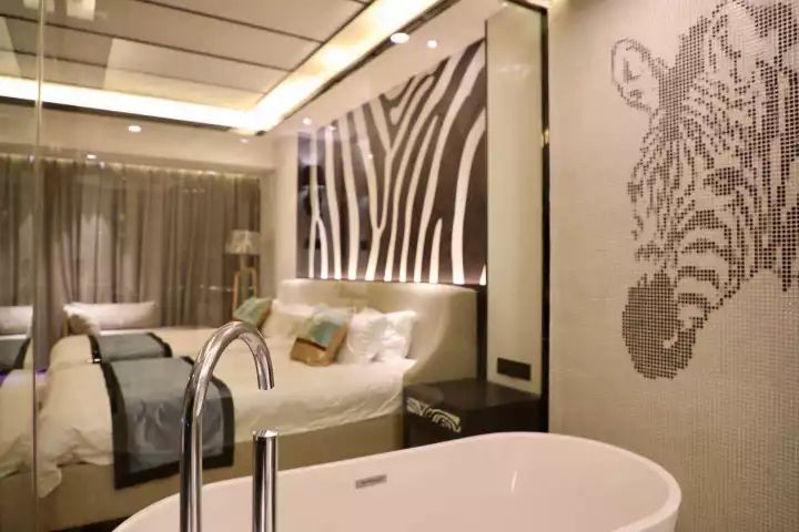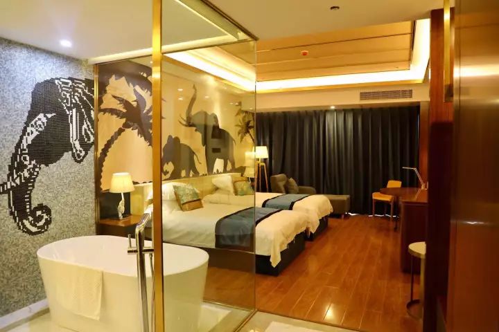 酒店客房也是非常有趣哦,各种不同的动物元素融入其中,展现了如长颈鹿、斑马、大象等各种主题内容,我们透过落地窗向外望,能看到野生动物们在园区内闲庭信步,更能远眺碧波荡漾的太湖。
