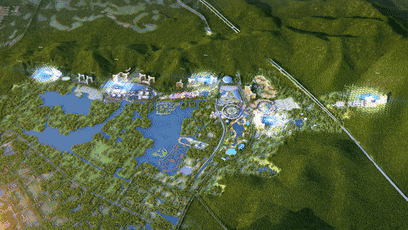 三面环山,腹拥湿地,面朝太湖,乐园建立在一片废弃矿坑山洼地上,晴天的日子,矿坑的水被太阳光映照得碧蓝沉静,山地高低起伏,树木参差错落,绿水青山造就金山银山,颜值这块,未来可期!