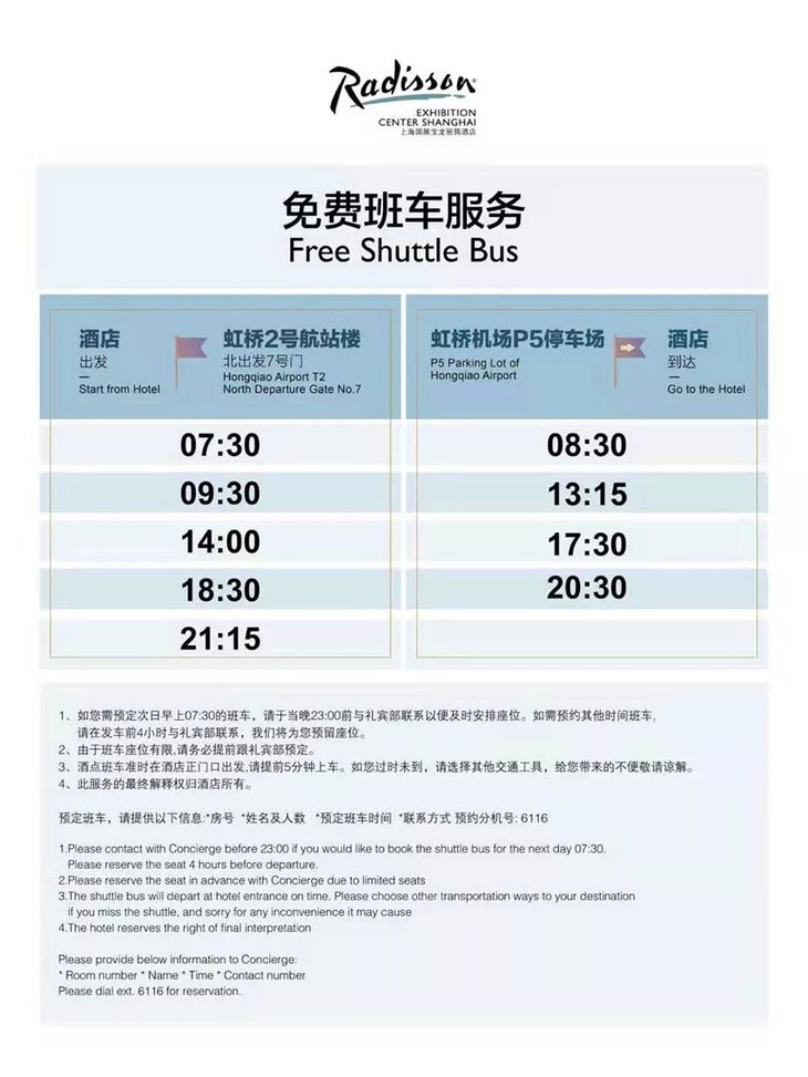 注:班车服务时刻表仅供参考,具体以酒店实际情况为准