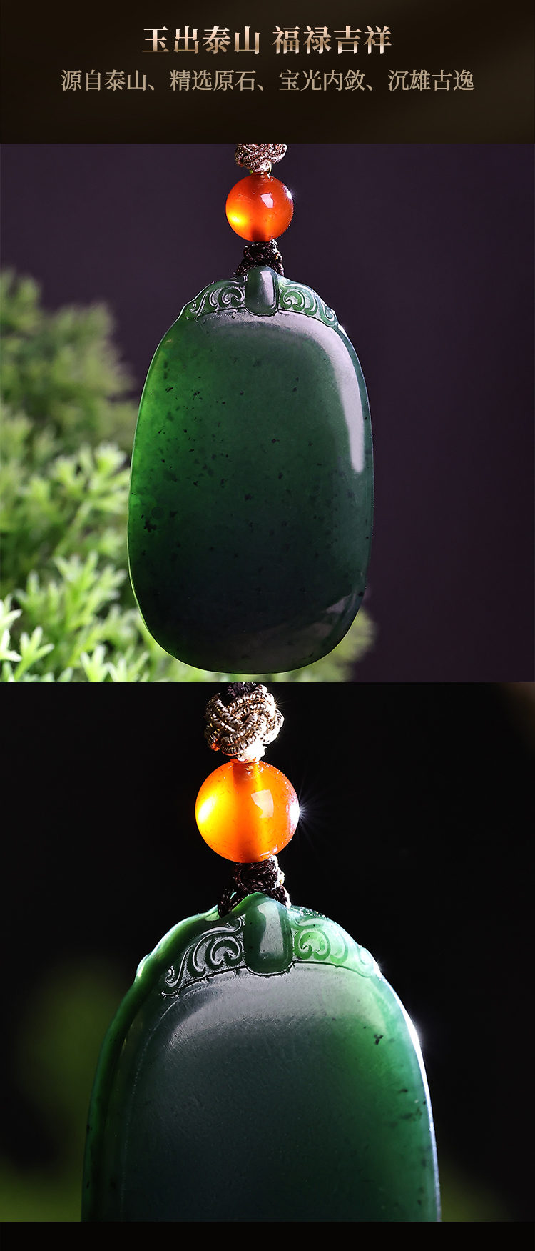 遇石记泰山玉【平安无事牌】藻纹牌头款泰山碧玉吊坠挂件